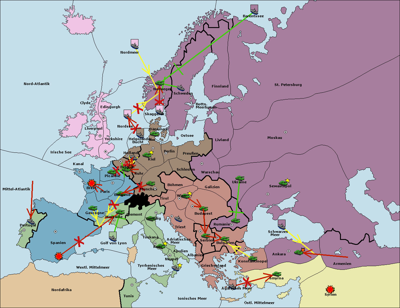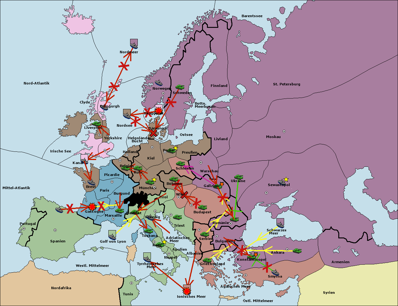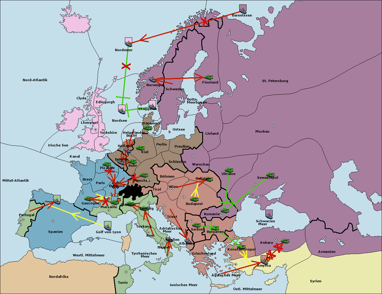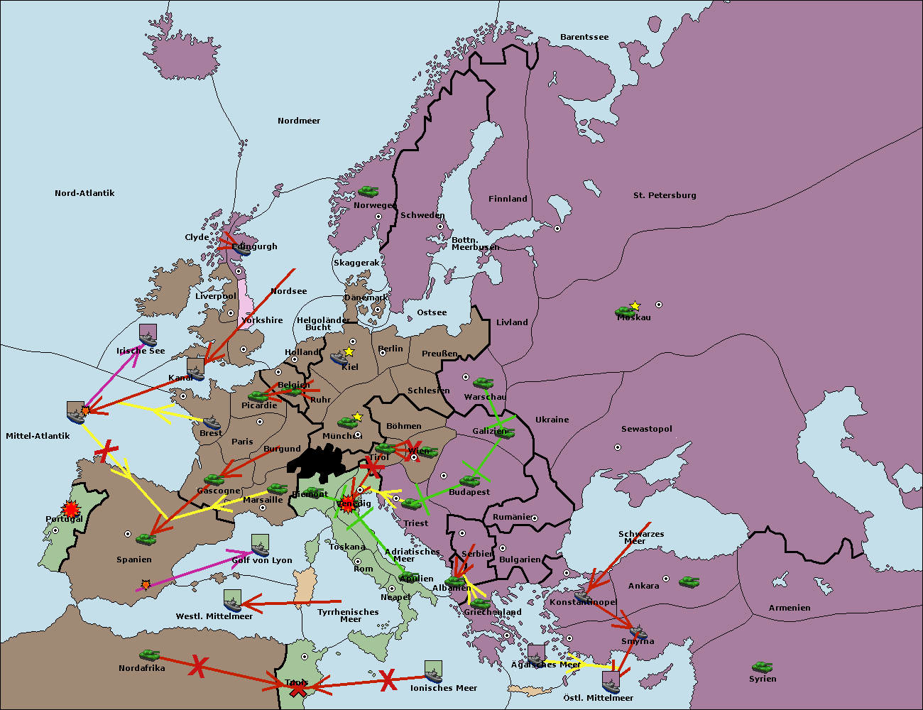 • Die Armee in Sewastopol move nach Bulgarien via Concoy. (gescheitert)