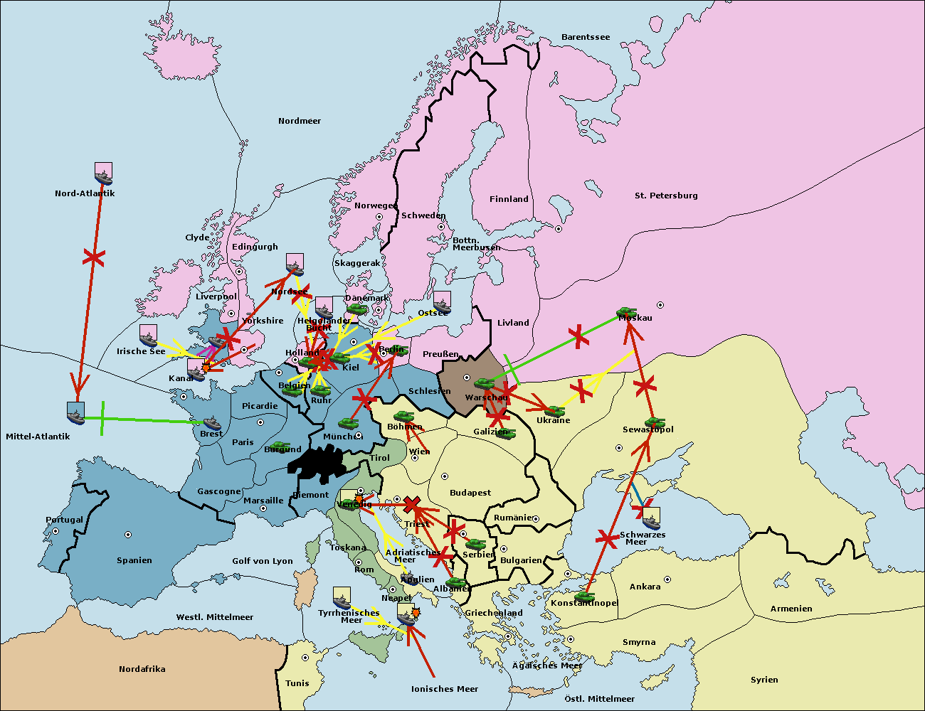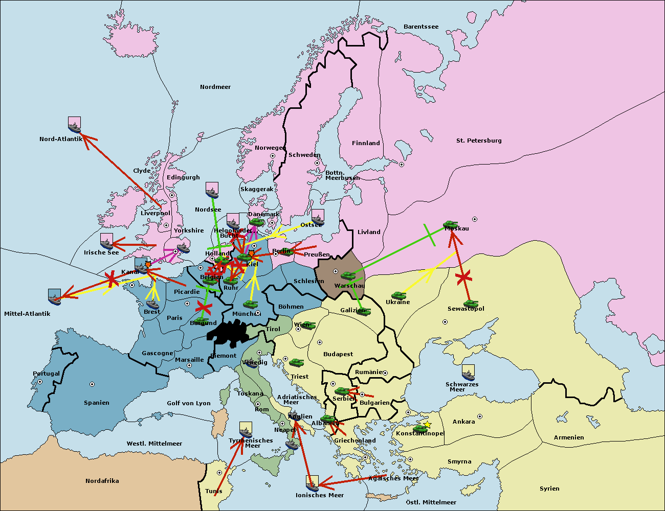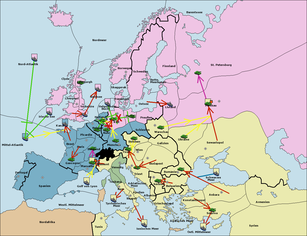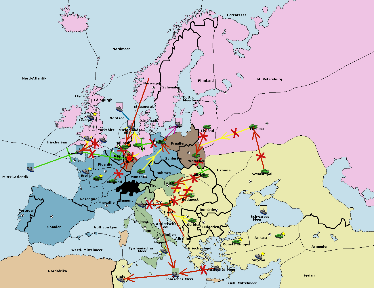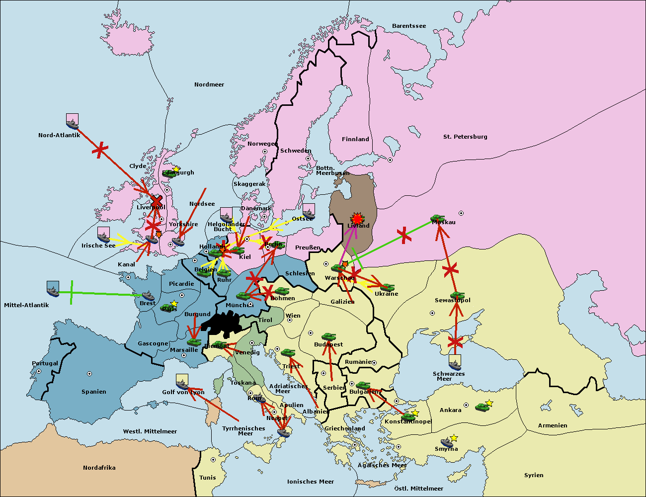 • Die Armee in Warschau support move nach Moskau von Sewastopol.