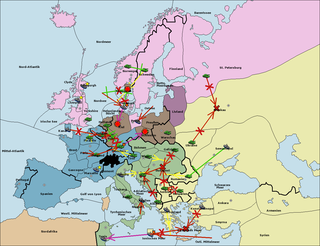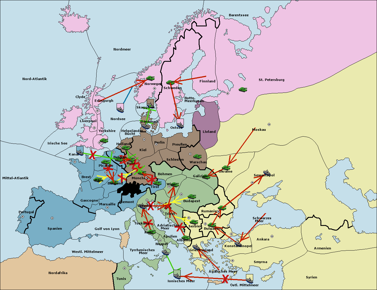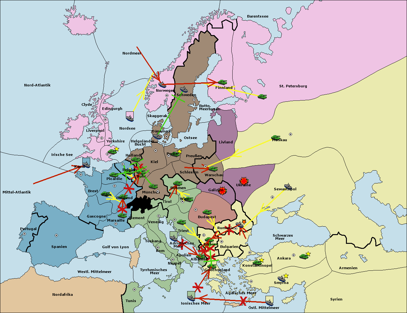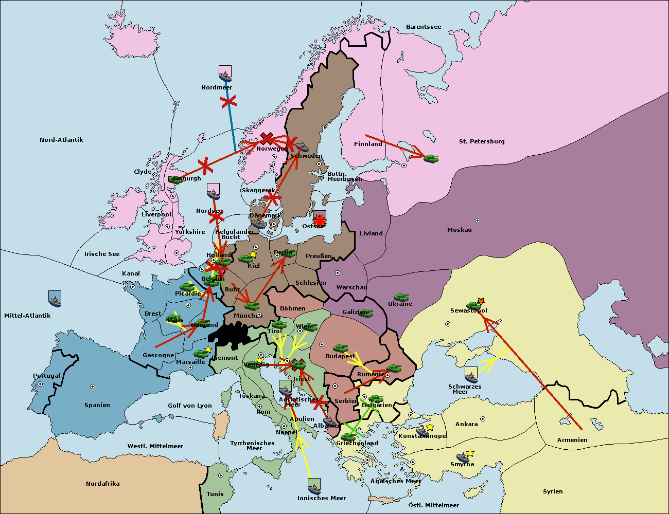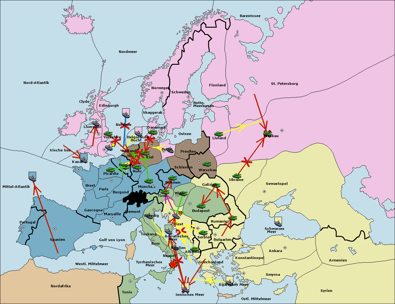 • Die Armee in Warschau support move nach Moskau von Sewastopol.