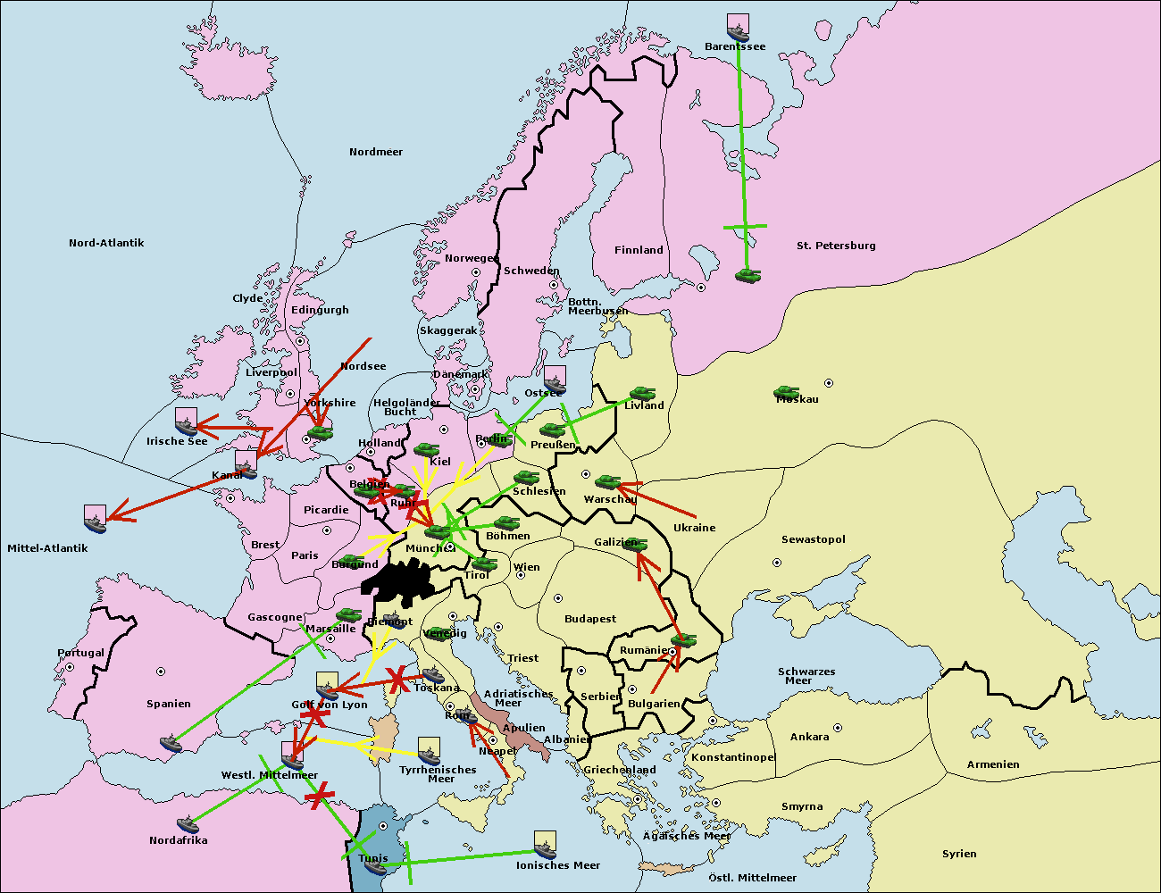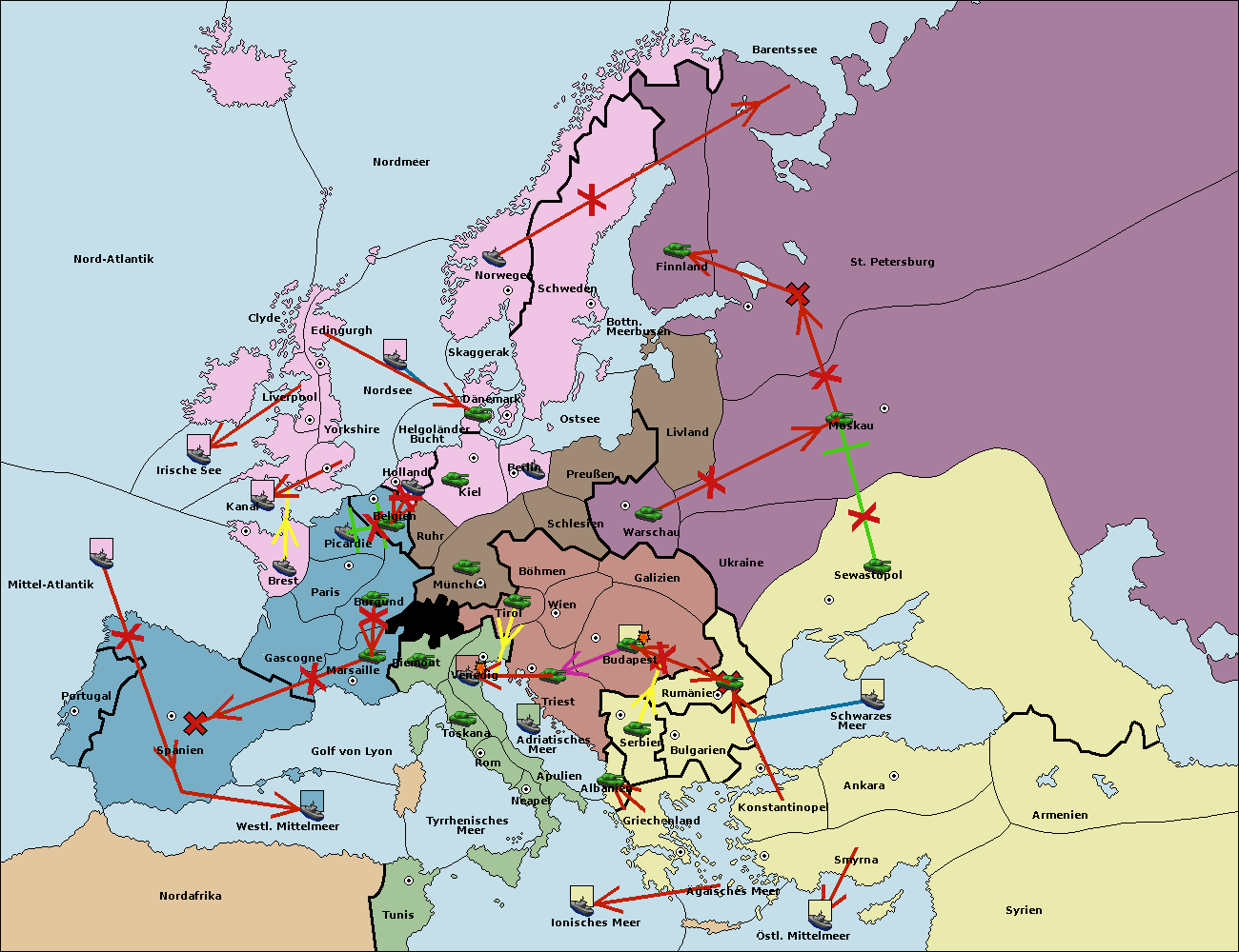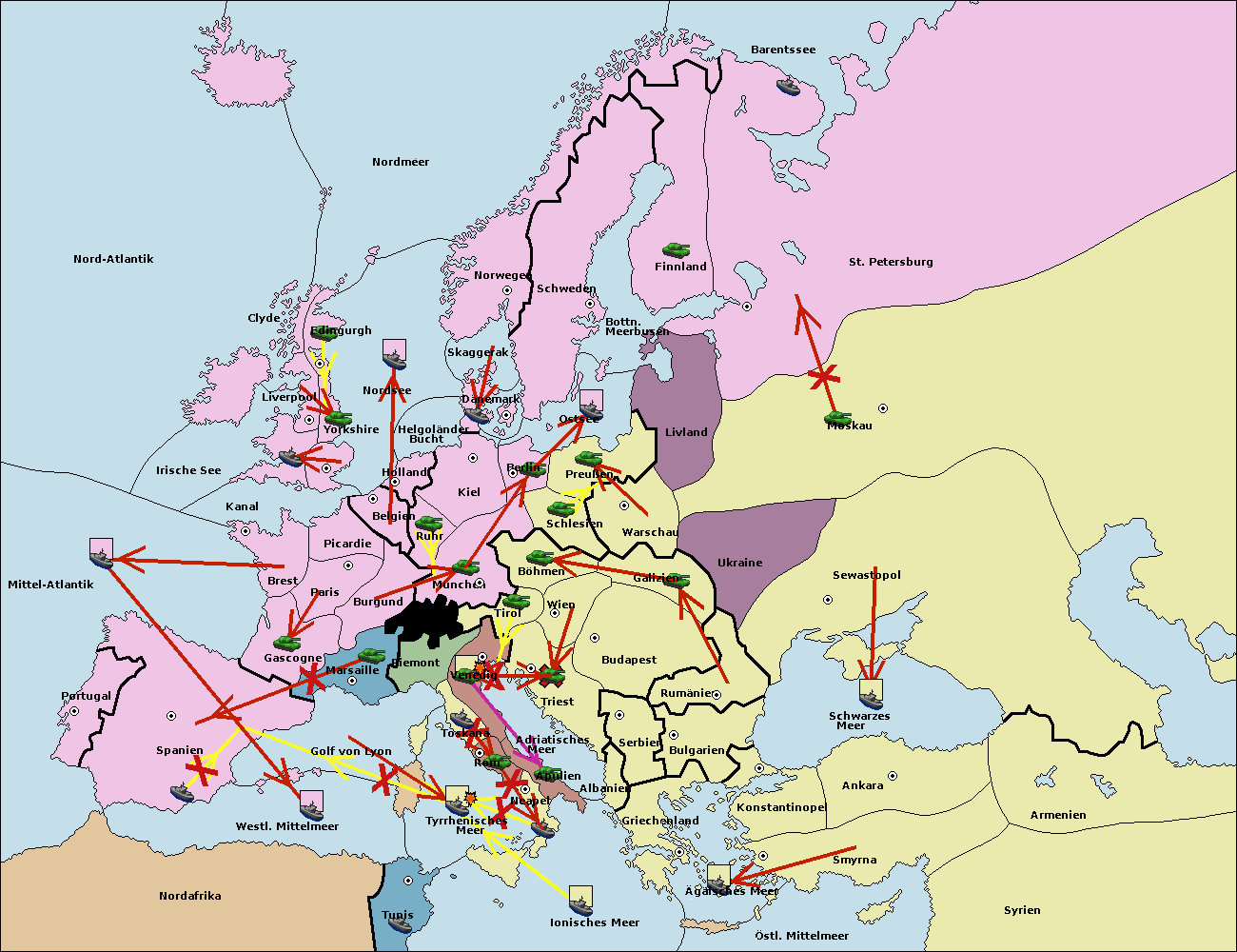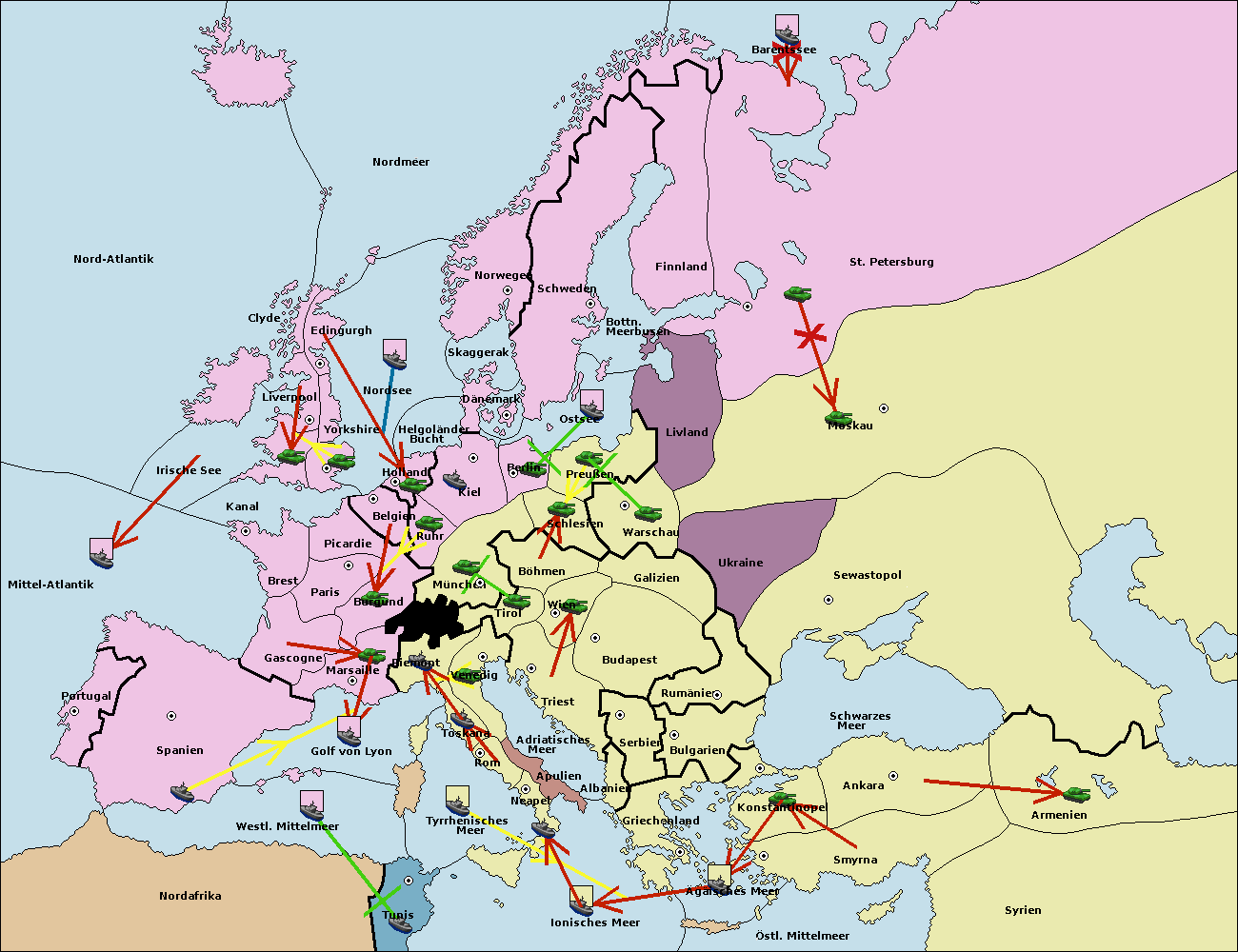 • Die Flotte in Nord Afrika support move nach Tunis von westl. Mittelmeer.