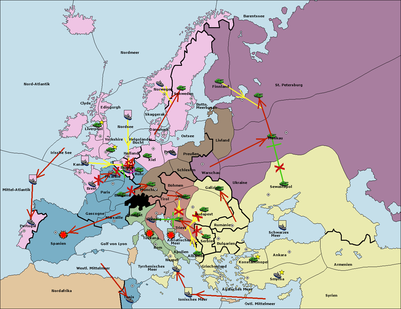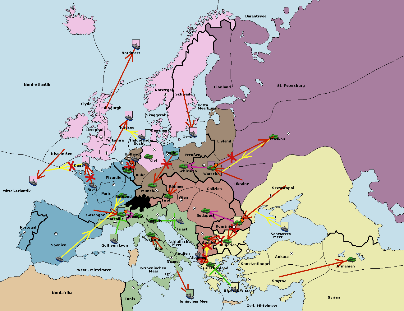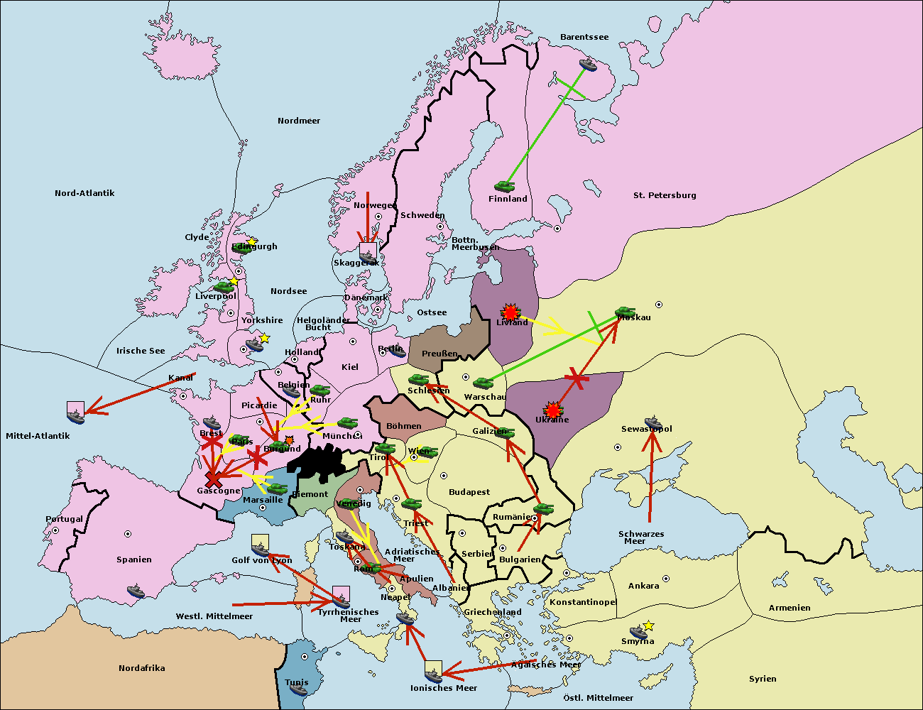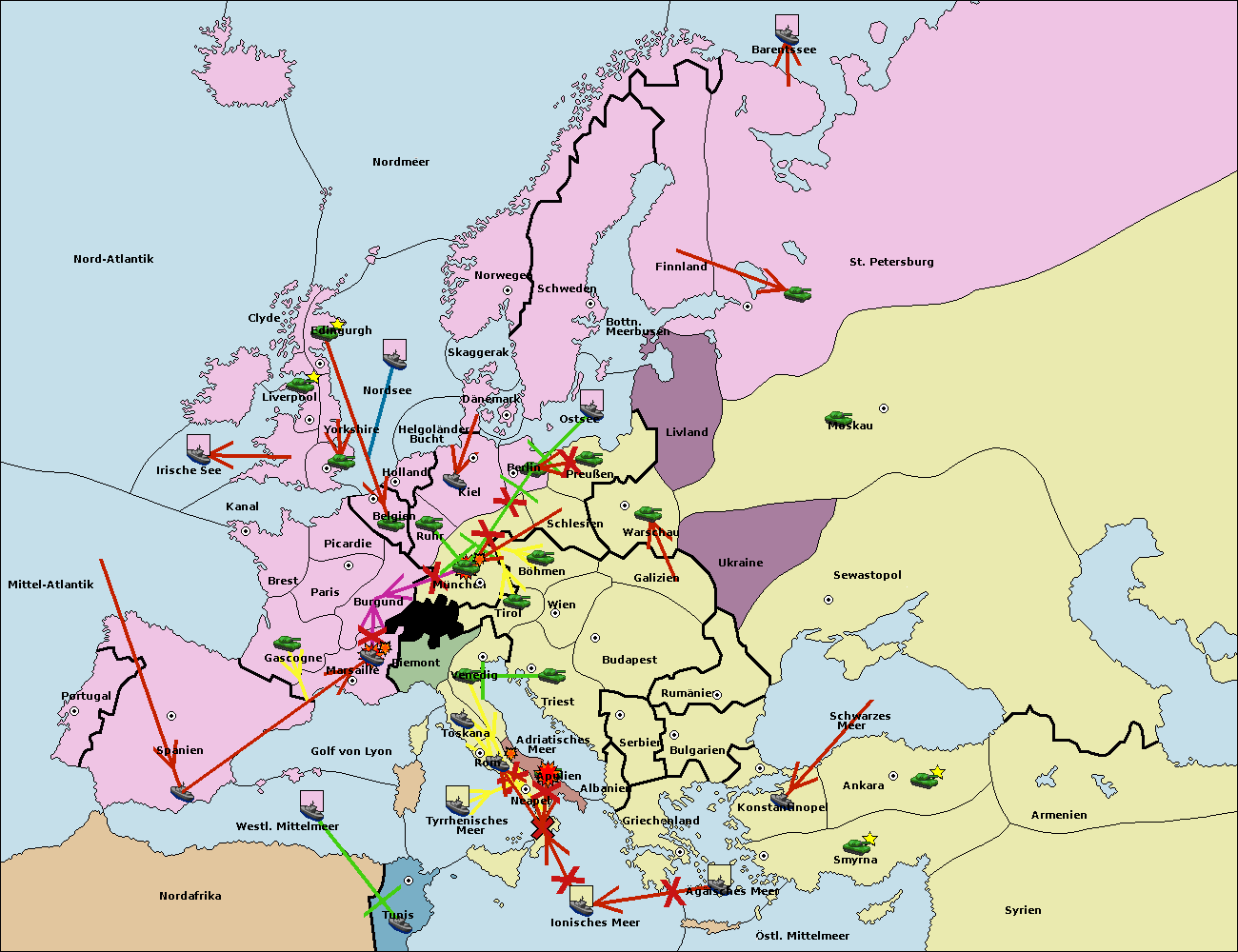 • Die Flotte in Nord Afrika support move nach Tunis von westl. Mittelmeer.