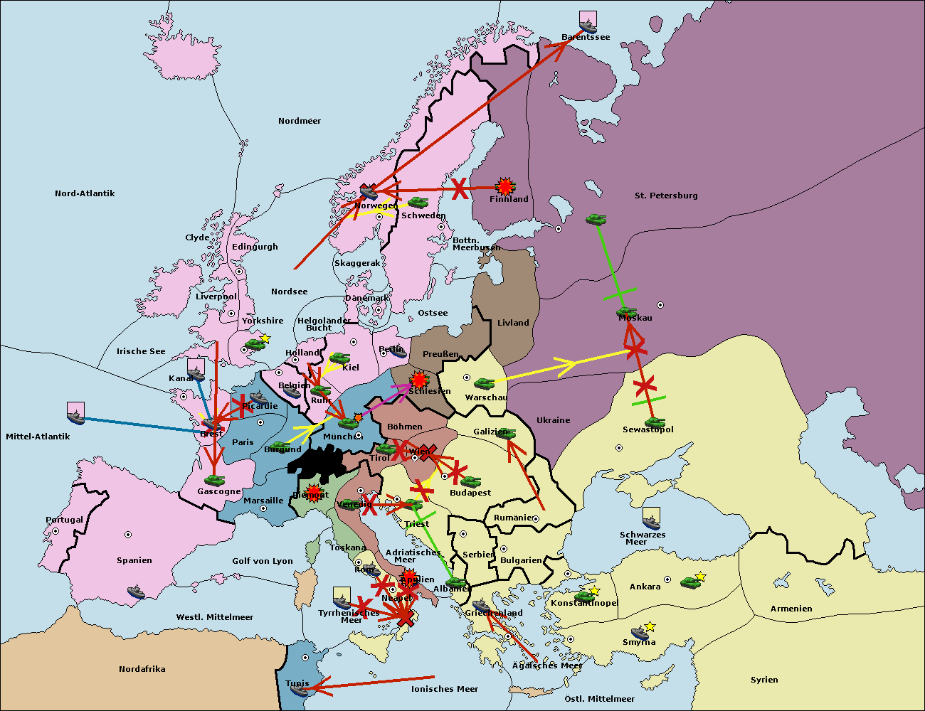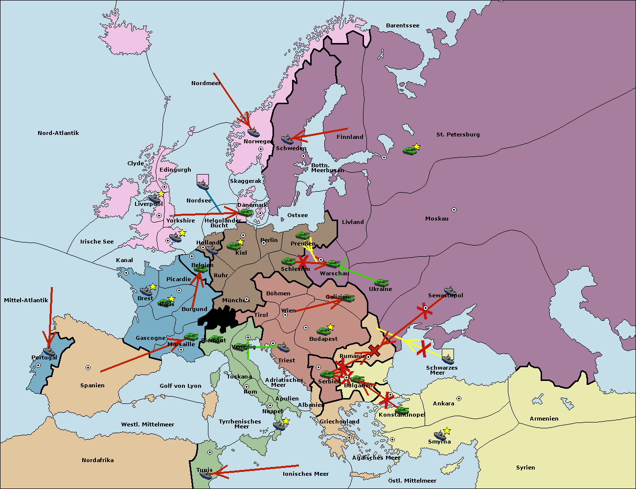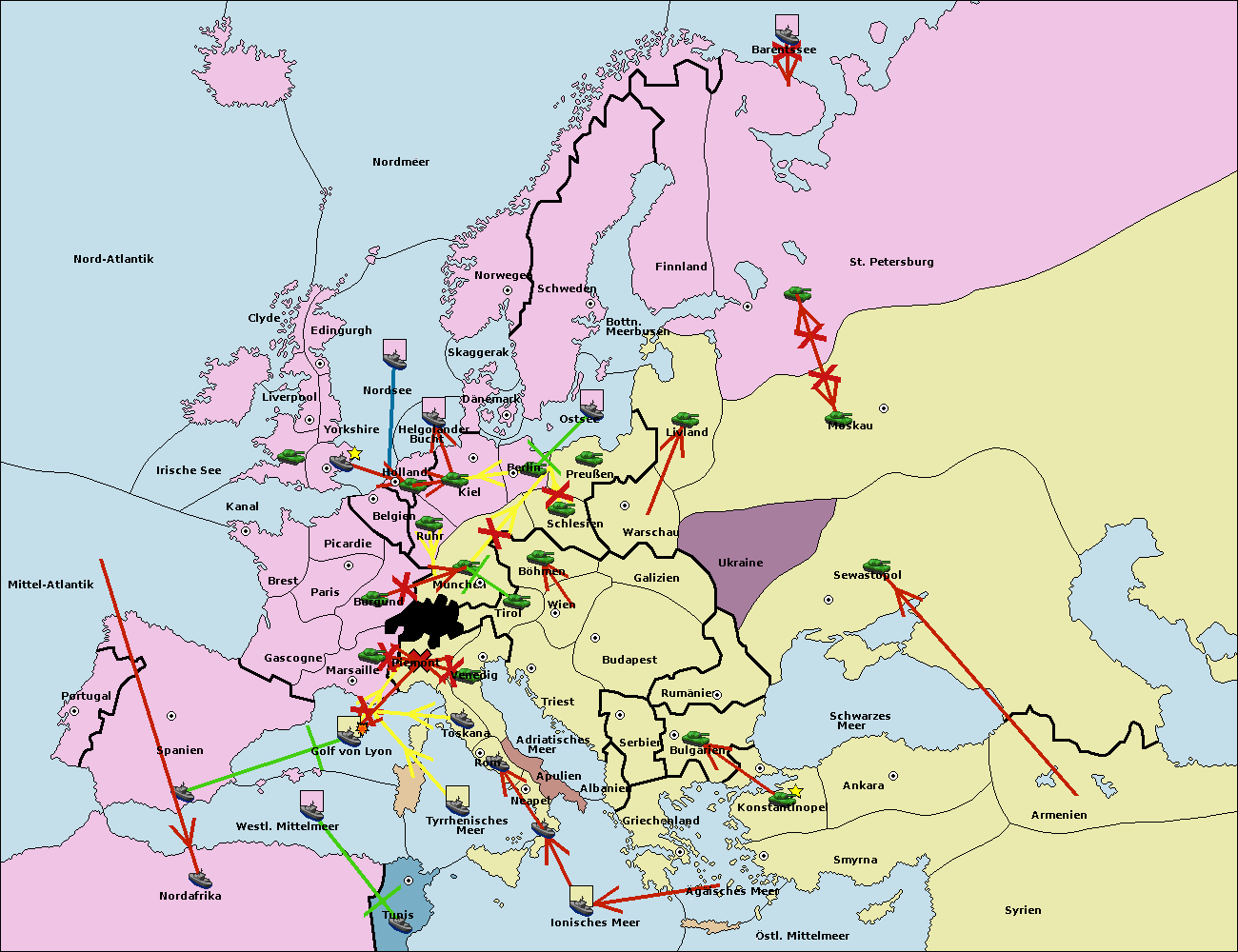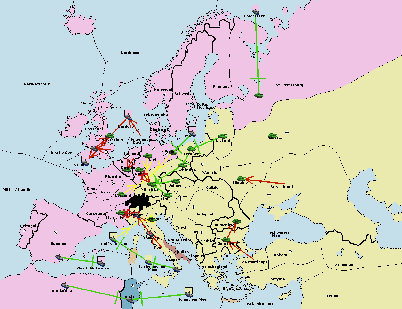 • Die Flotte in Nord Afrika support move nach Tunis von westl. Mittelmeer.