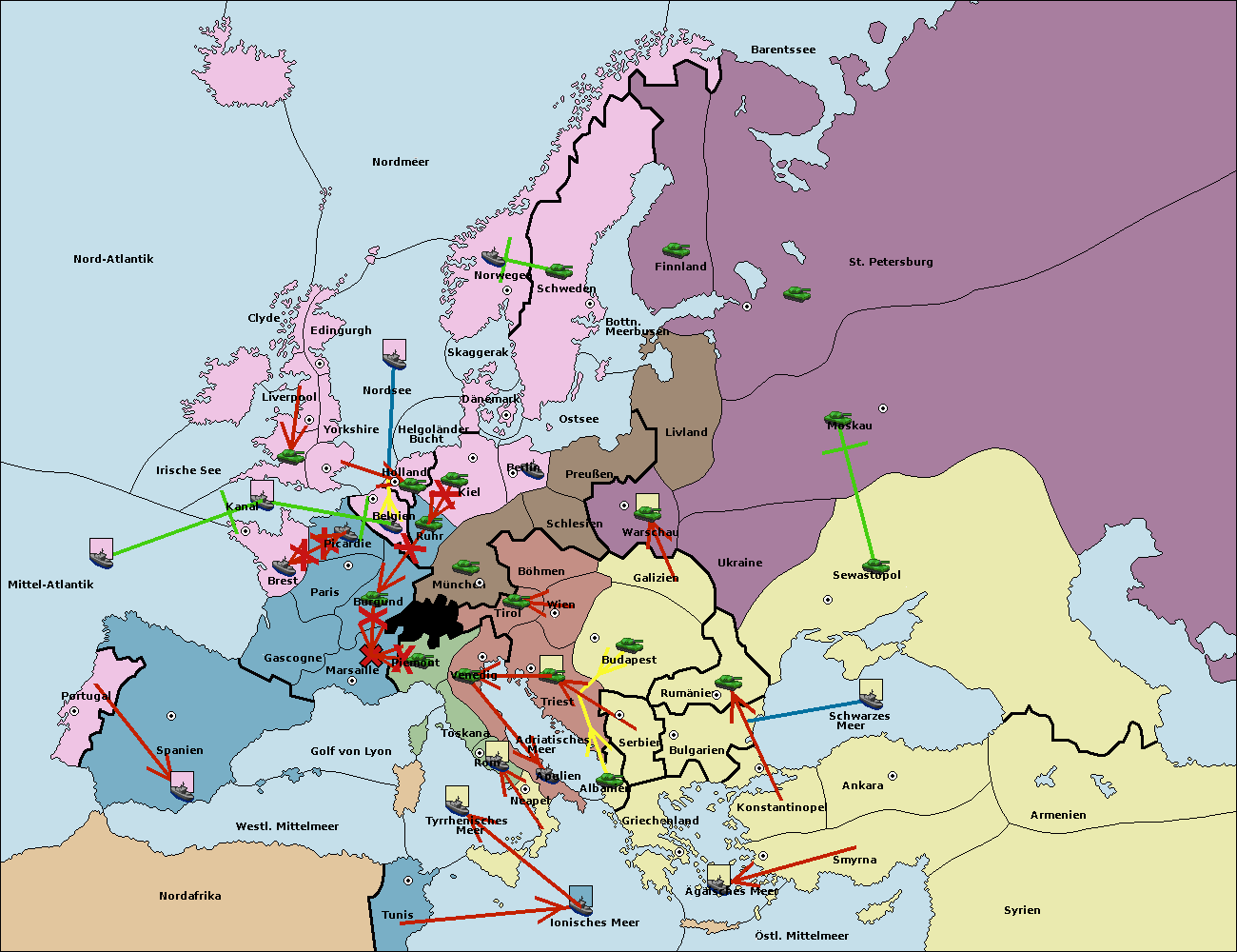• Die Flotte in Nord Afrika support hold nach westl. Mittelmeer.
