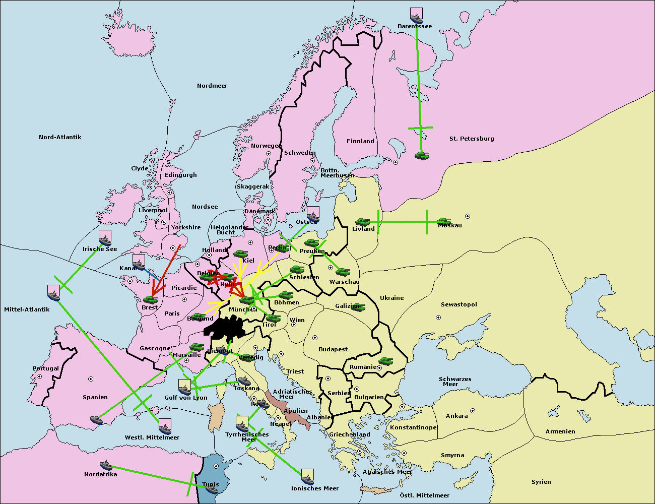 • Die Armee in Kiel support move nach München von Ruhr.