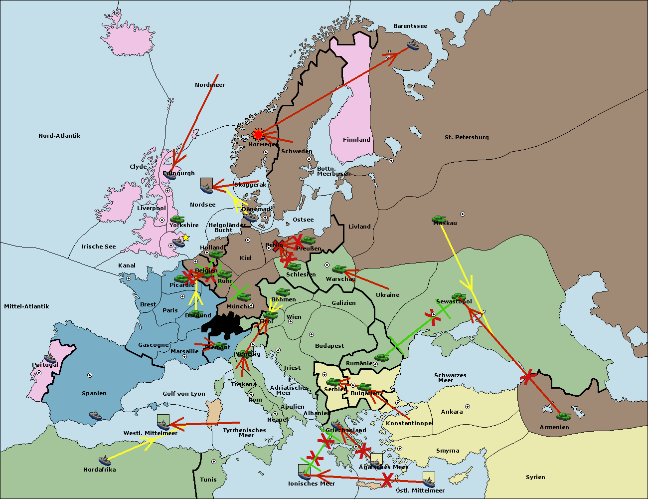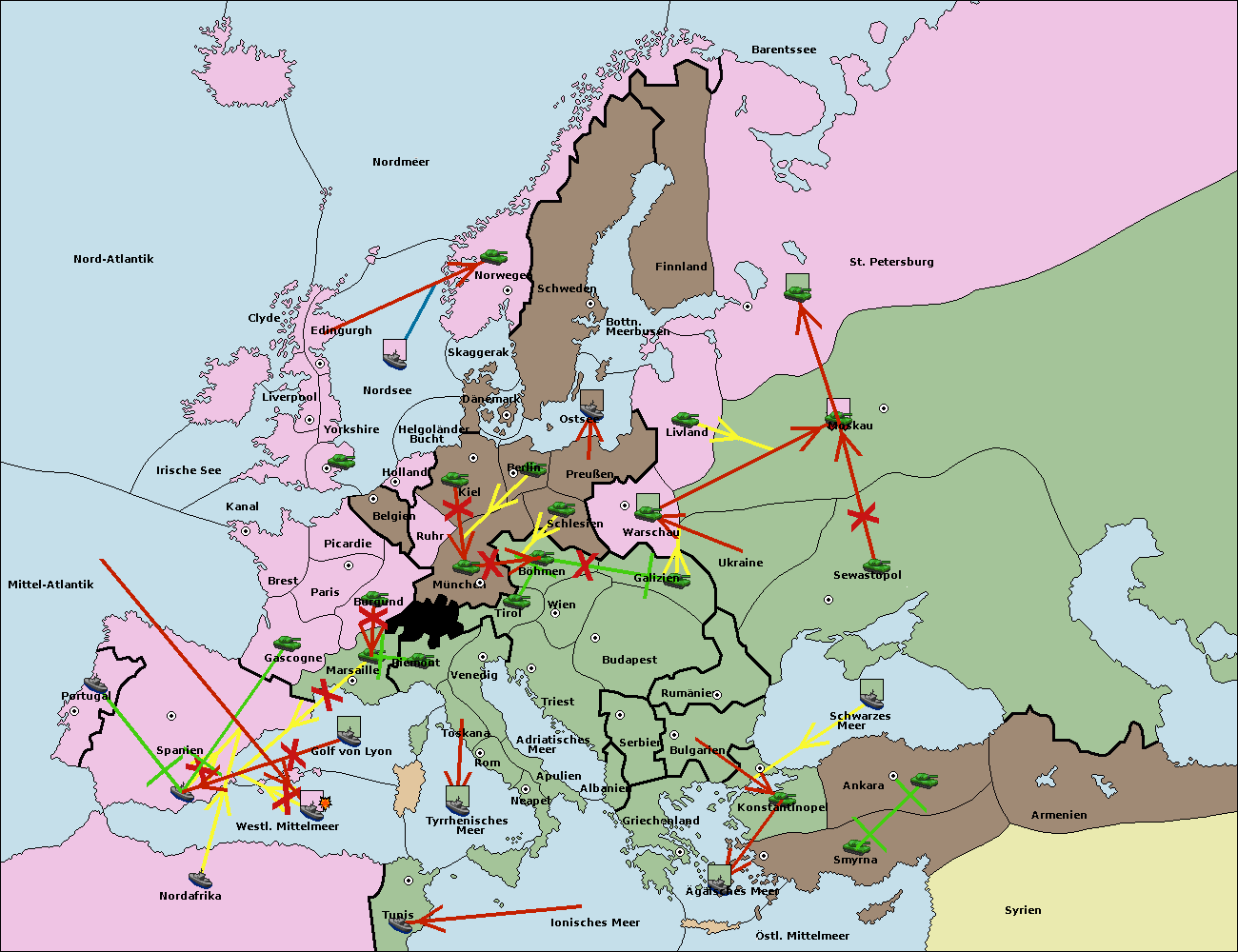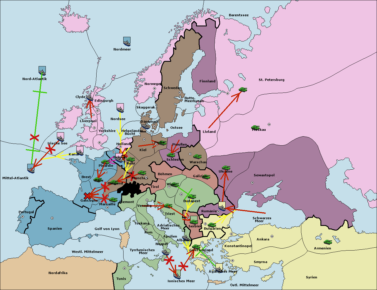 • Die Flotte in Nord Afrika support hold nach westl. Mittelmeer.