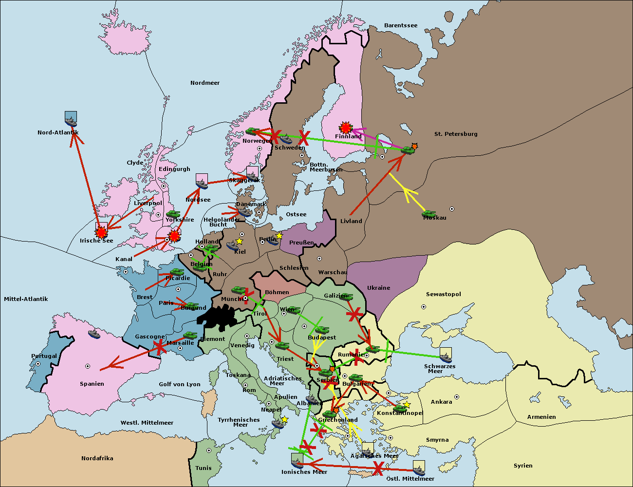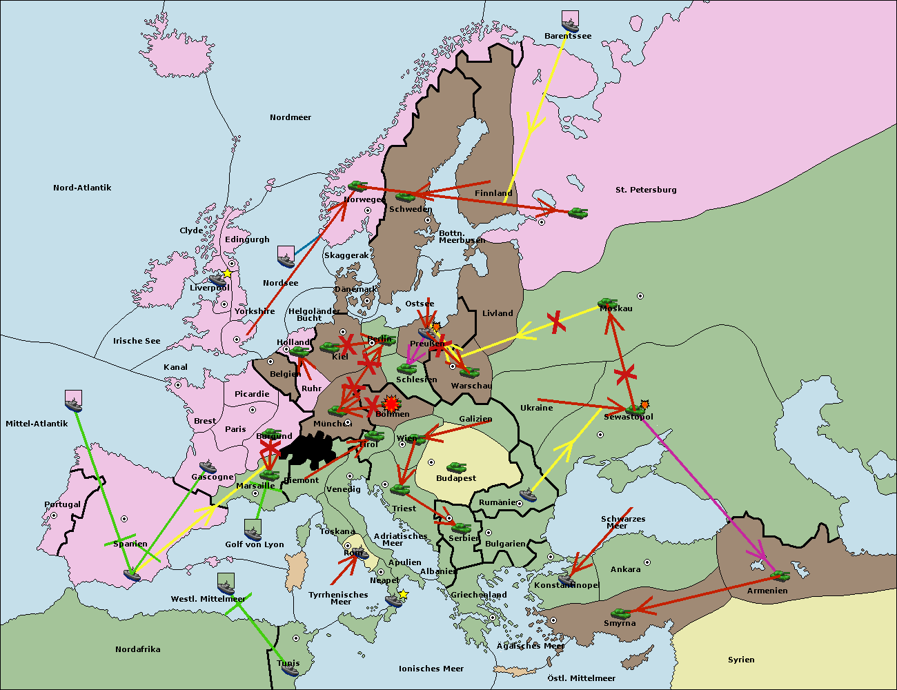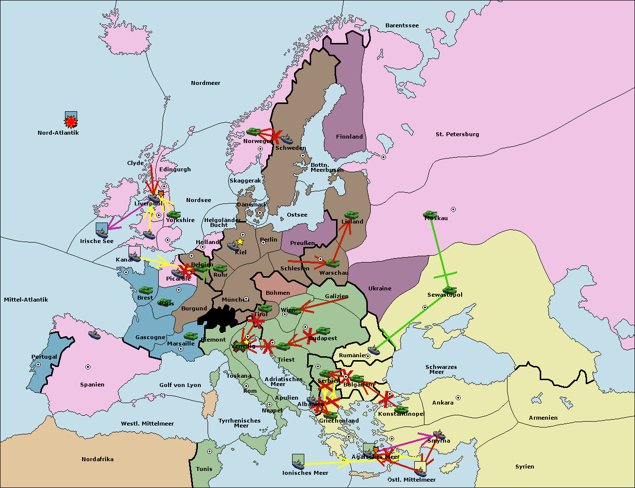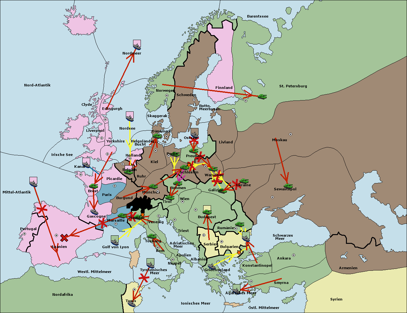 • Die Flotte in Livland support move nach Preußen von Warschau.
