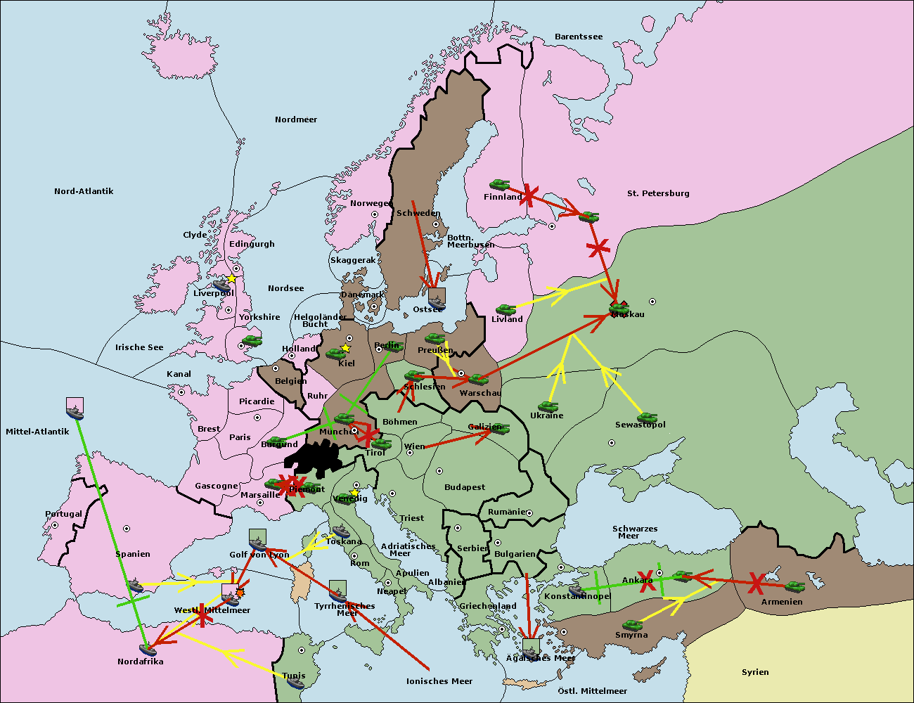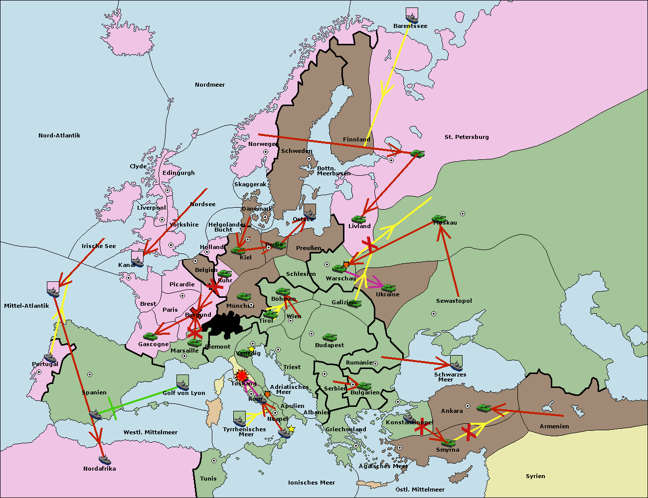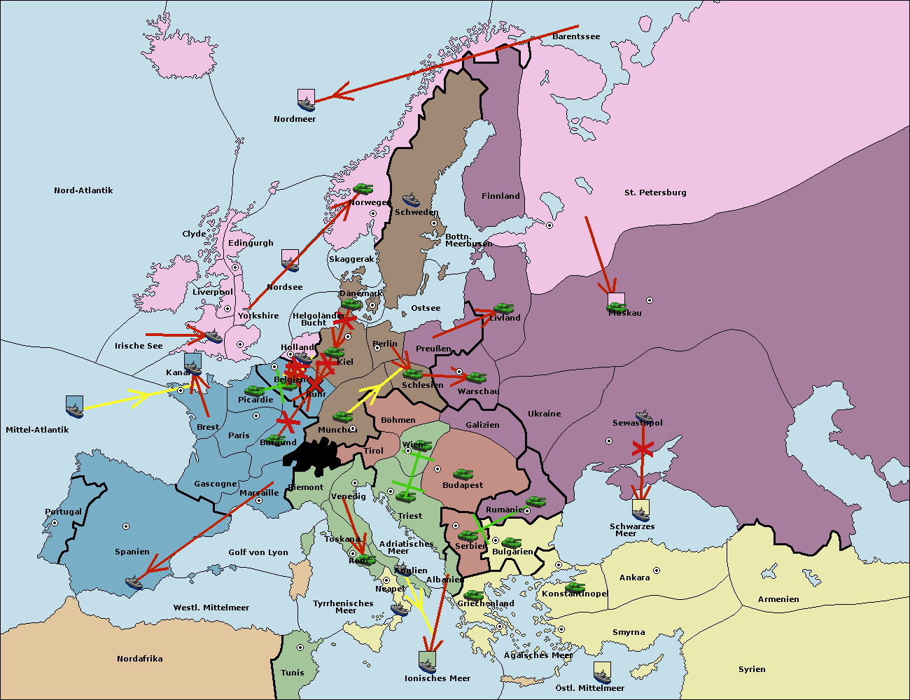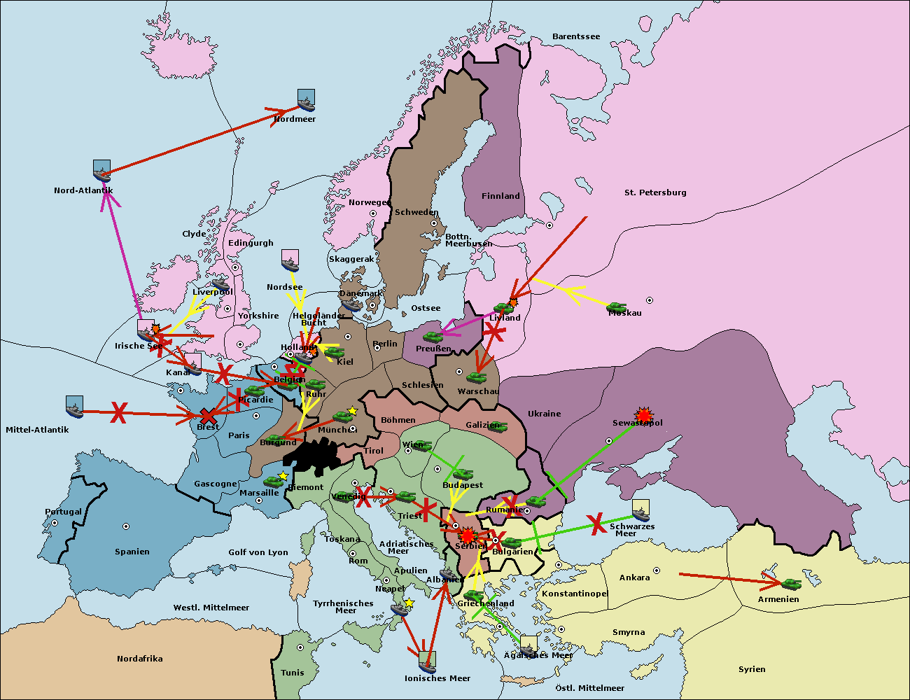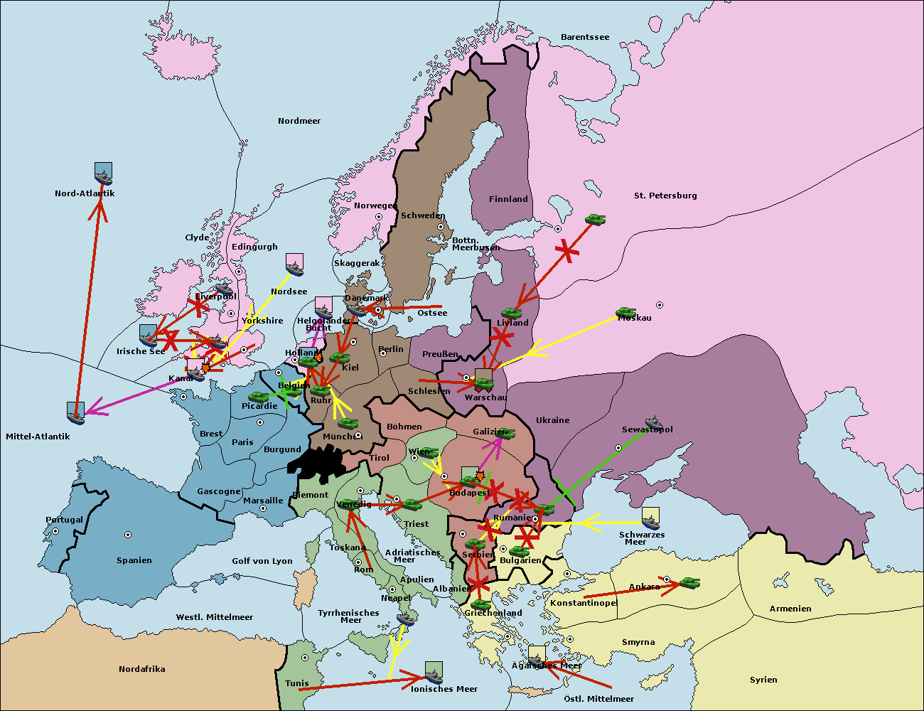 • Die Flotte in Livland support move nach Preußen von Warschau.