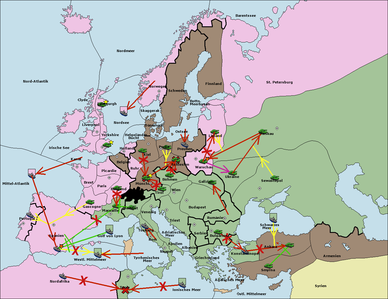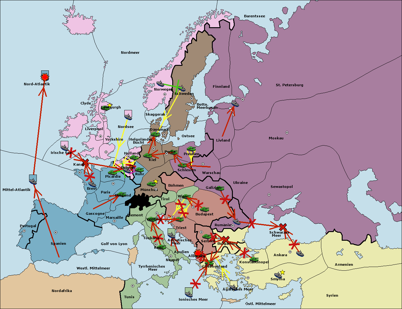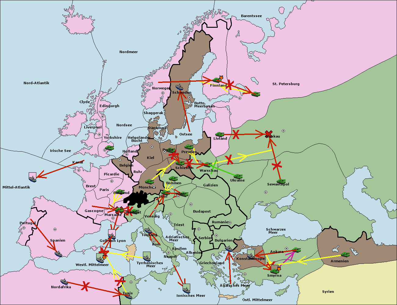 • Die Flotte in Smyrna support hold nach Konstantinopel. (gescheitert)