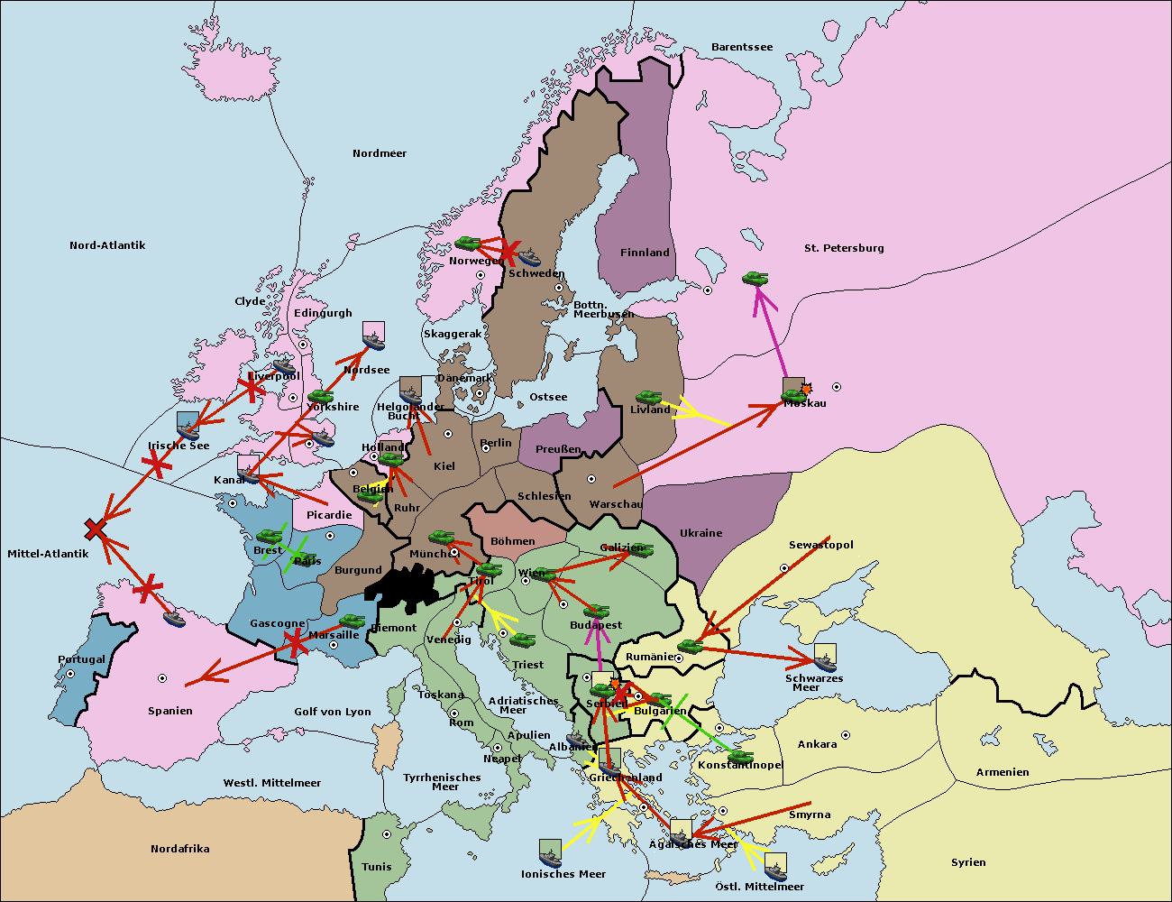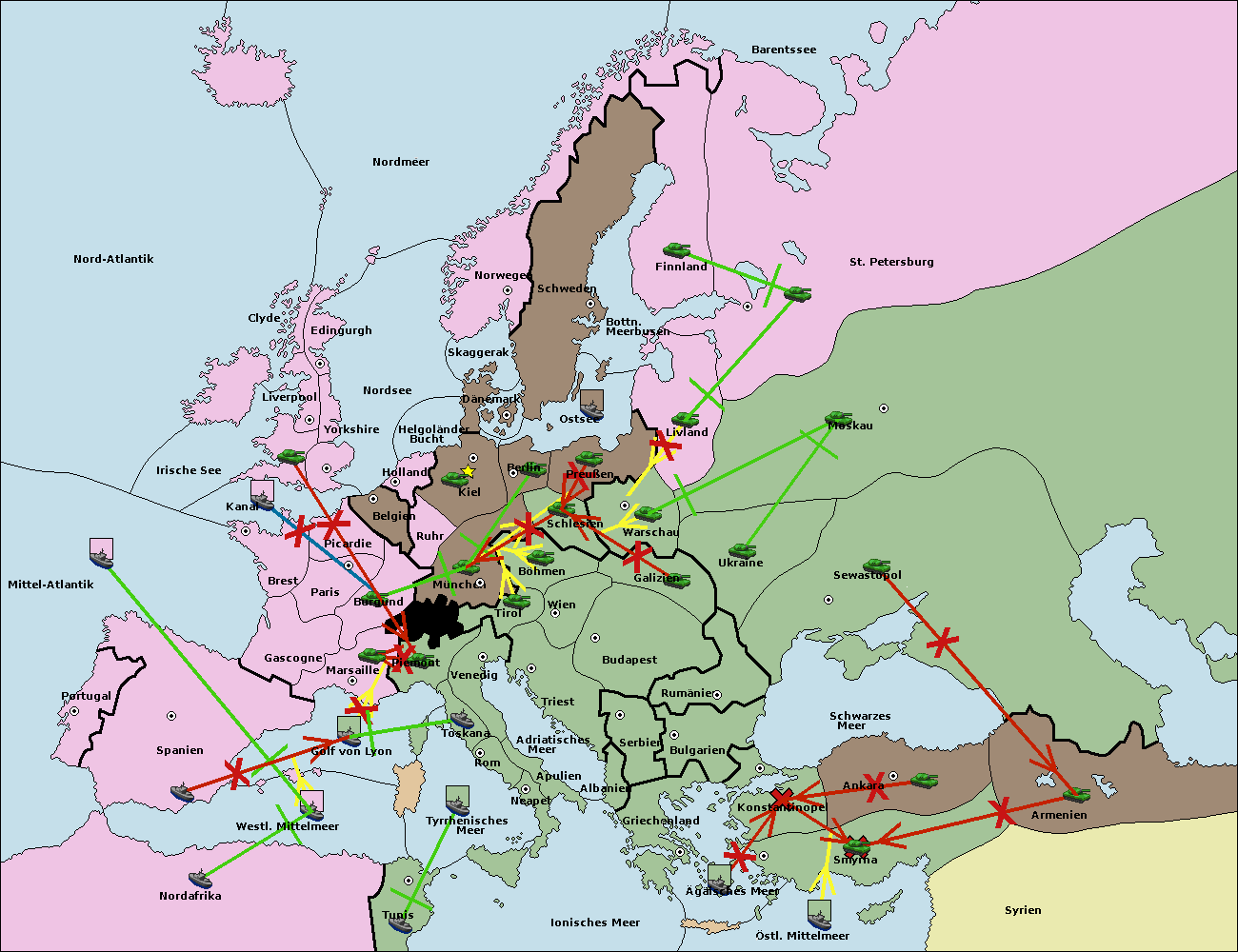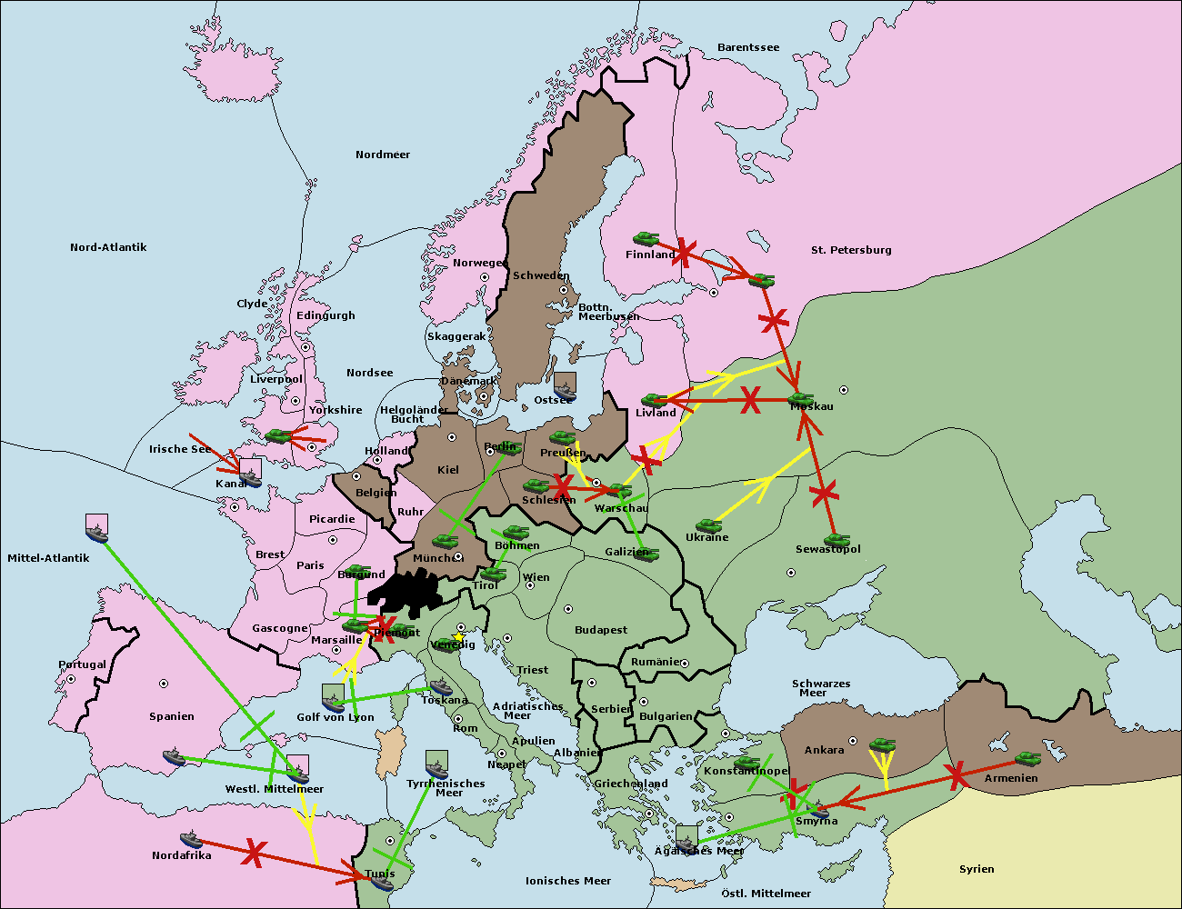 • Die Flotte in Smyrna support hold nach Konstantinopel. (gescheitert)
