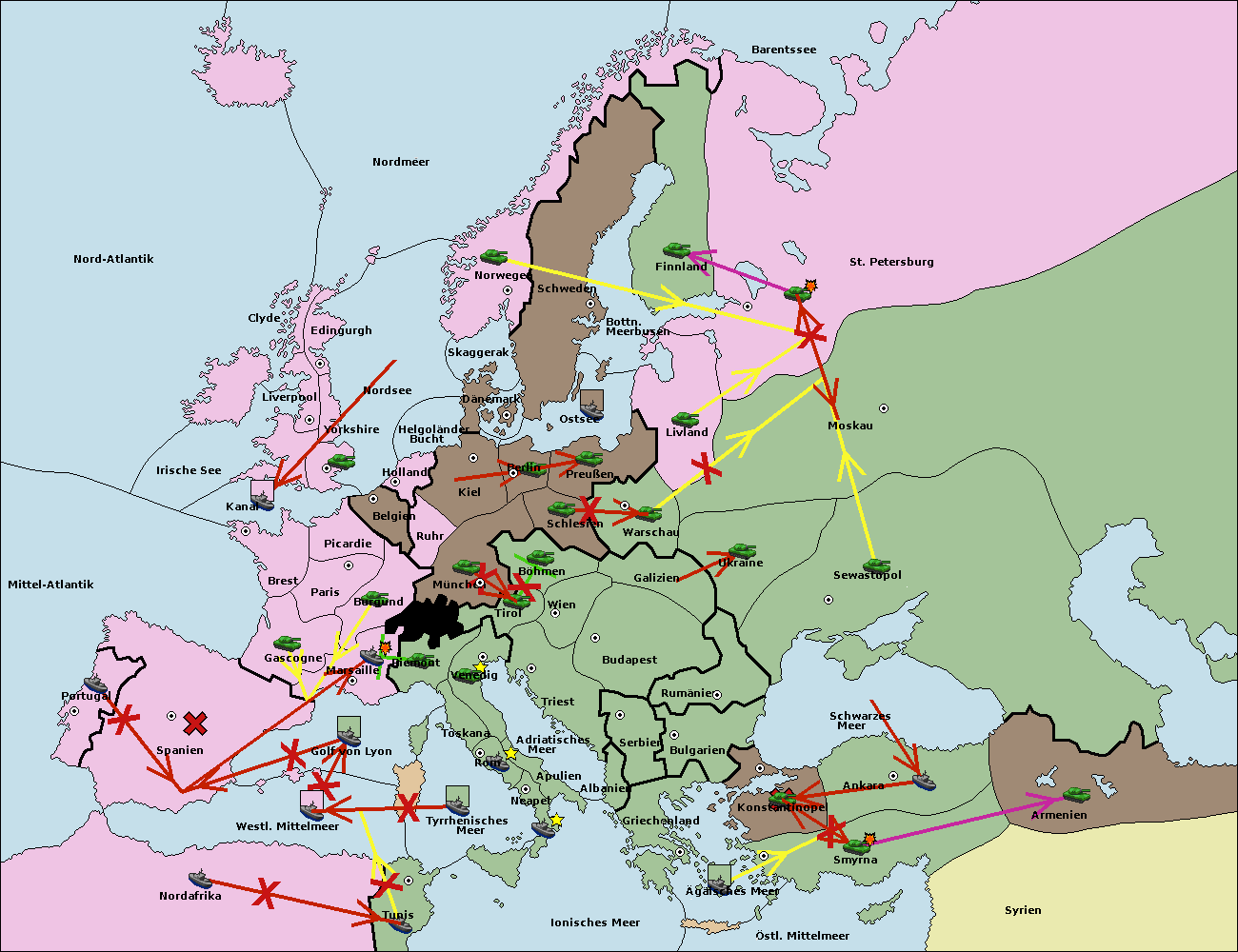 • Die Flotte in Nord Afrika move nach Tunis. (gescheitert)