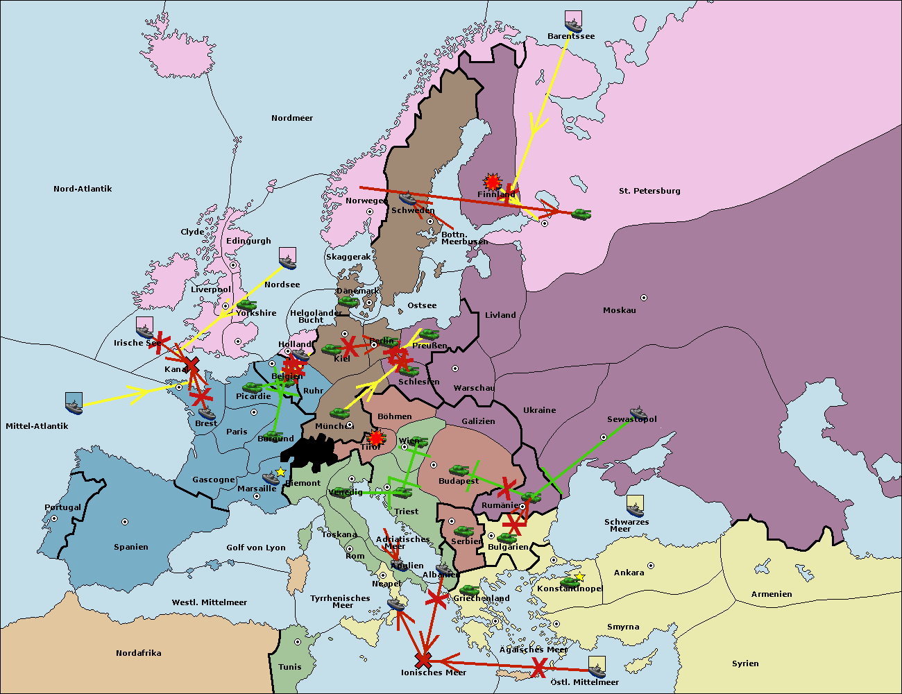 • Die Flotte in St. Petersburg (Südküste) move nach Finnland.