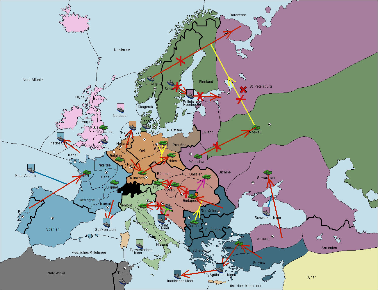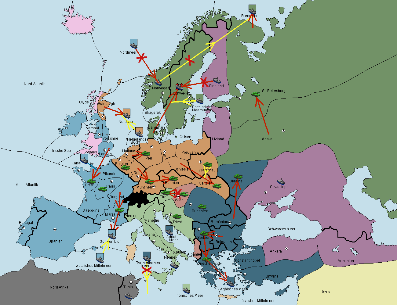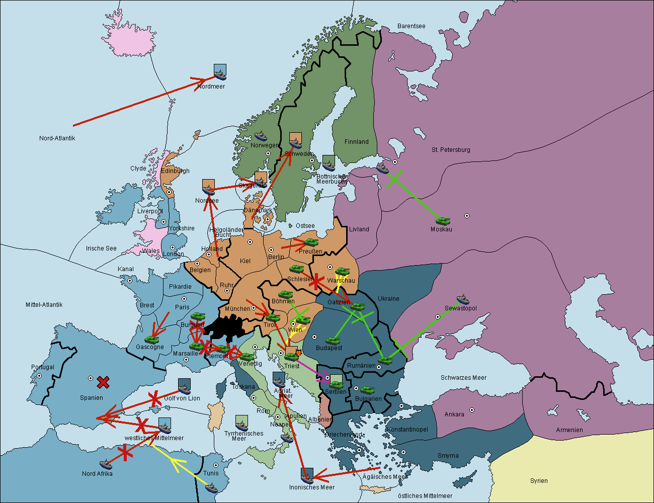 • Die Armee in Wien support move nach Triest von Tirol.