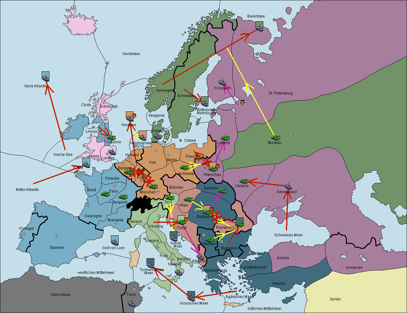 • Die Flotte in Bulgarien (Nordküste) move nach Konstantinopel.