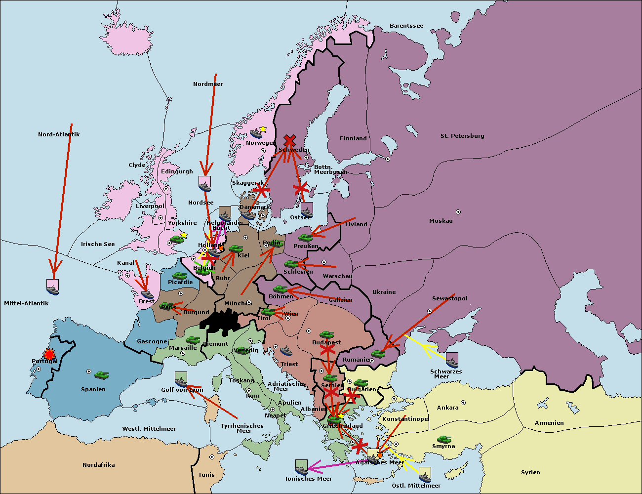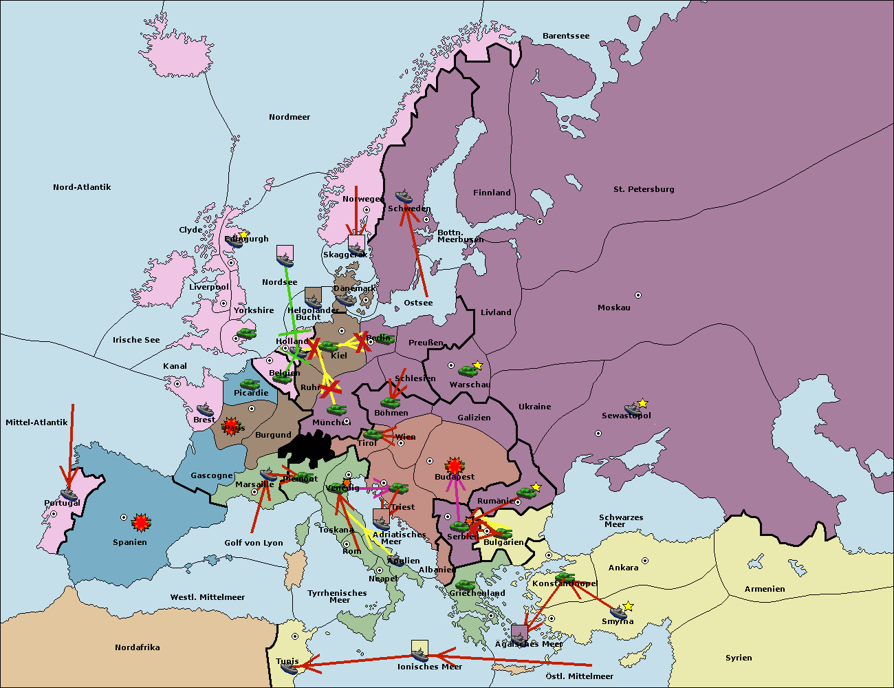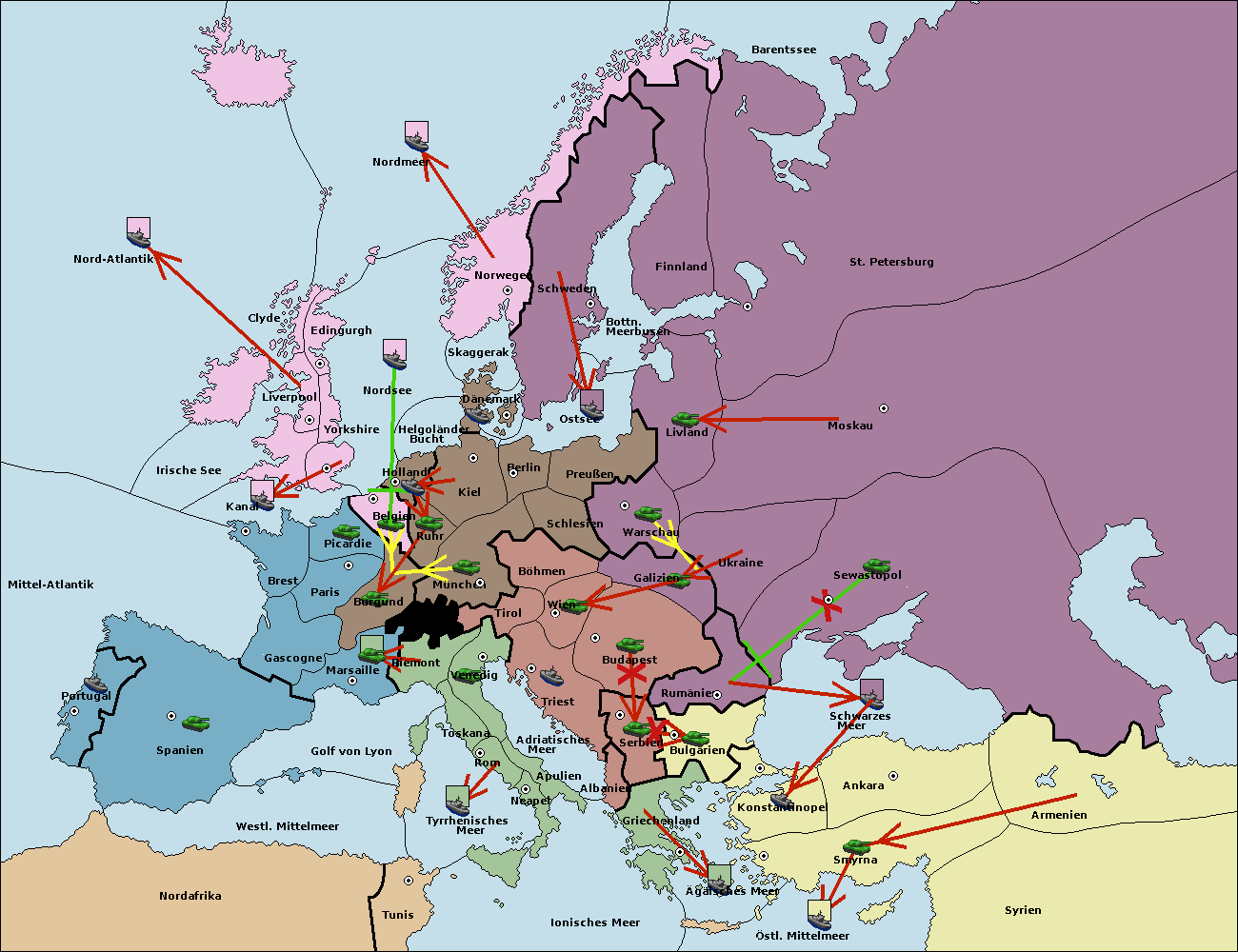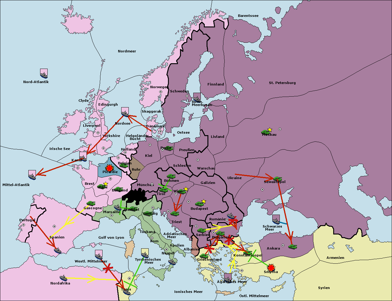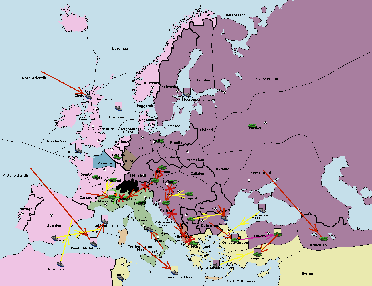 • Die Flotte in Bulgarien (Nordküste) support hold nach Konstantinopel.
