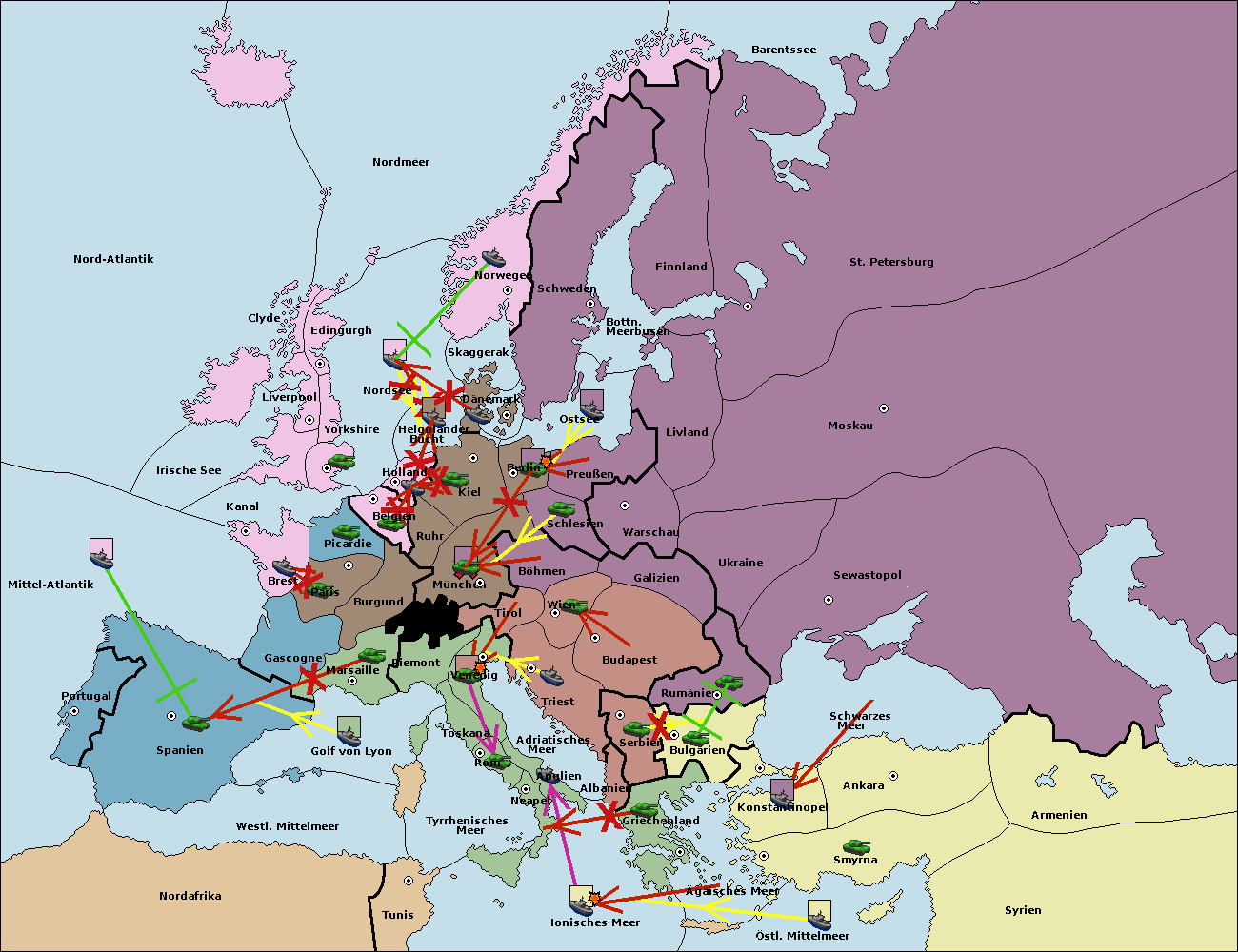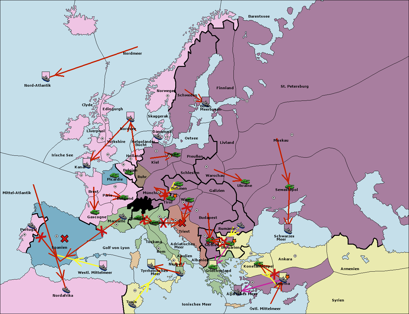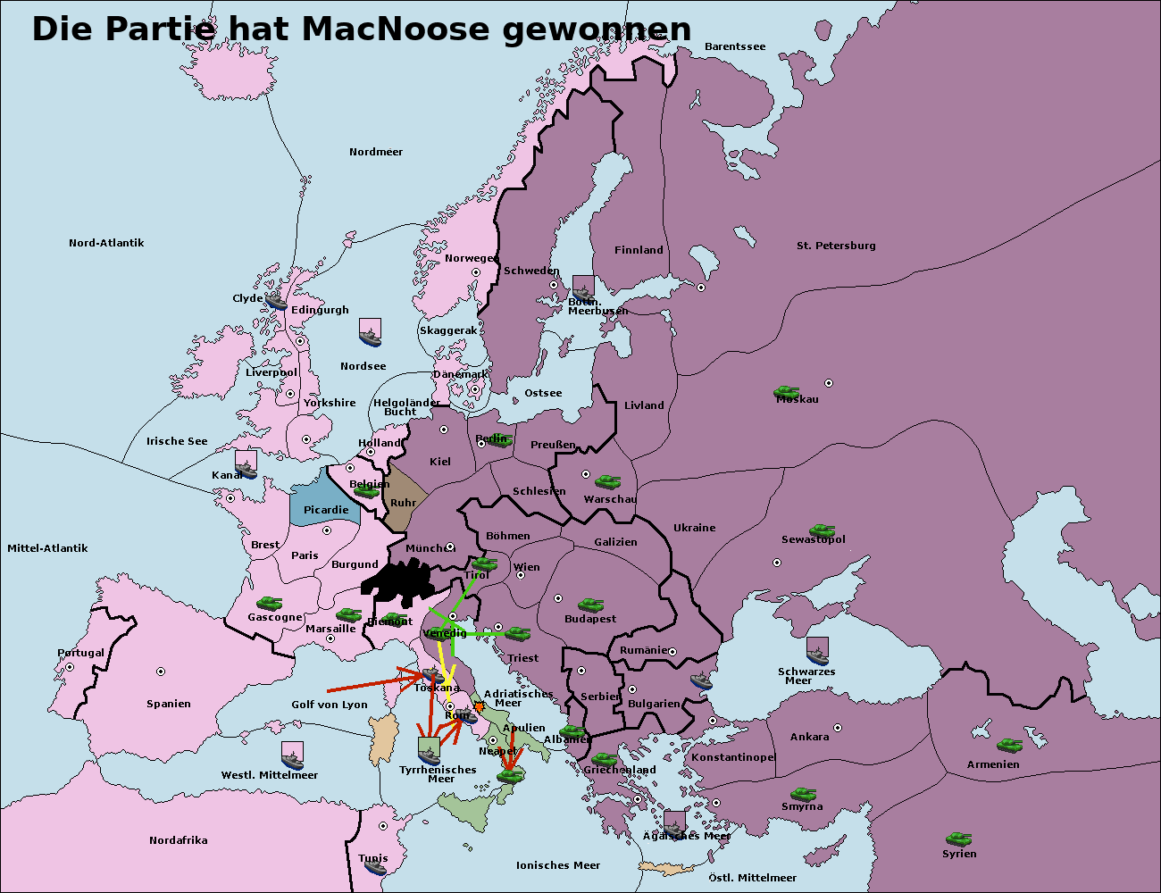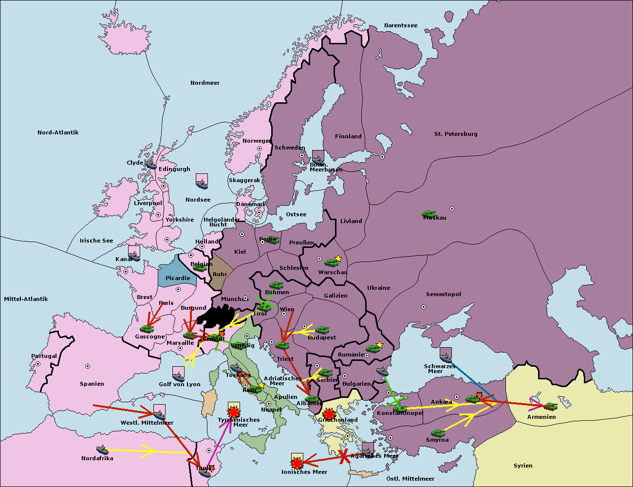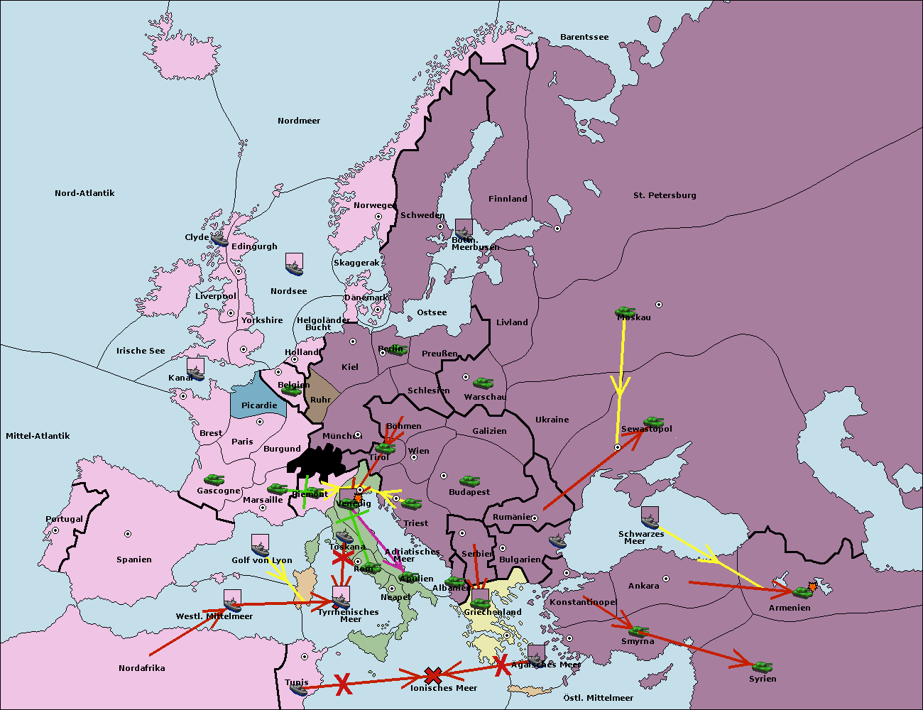 • Die Flotte in Nord Afrika support move nach Tunis von westl. Mittelmeer.
