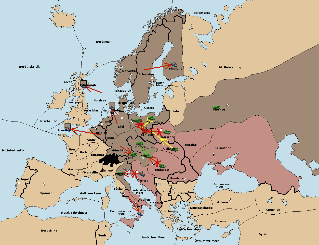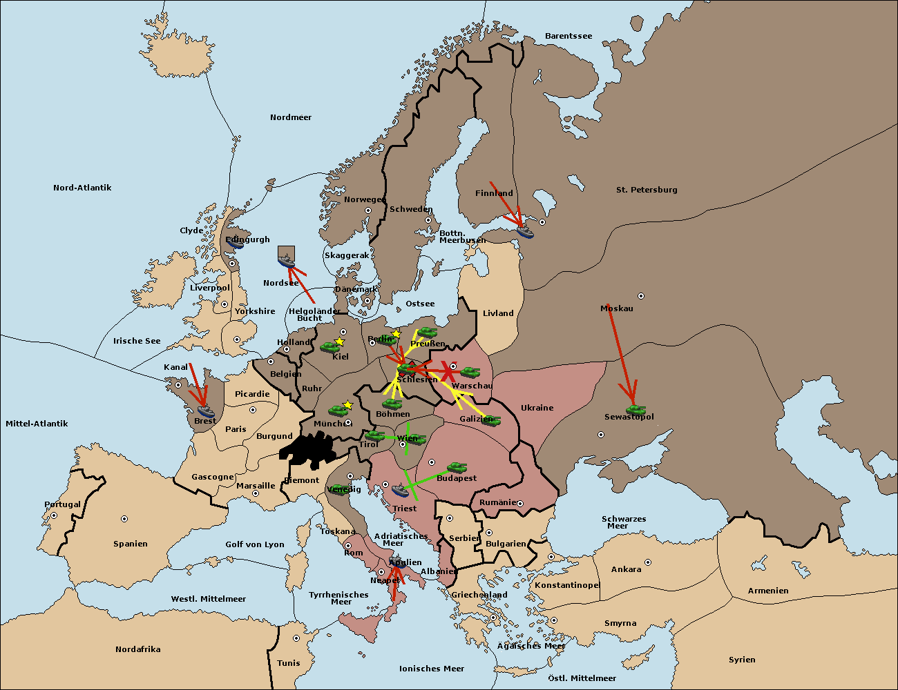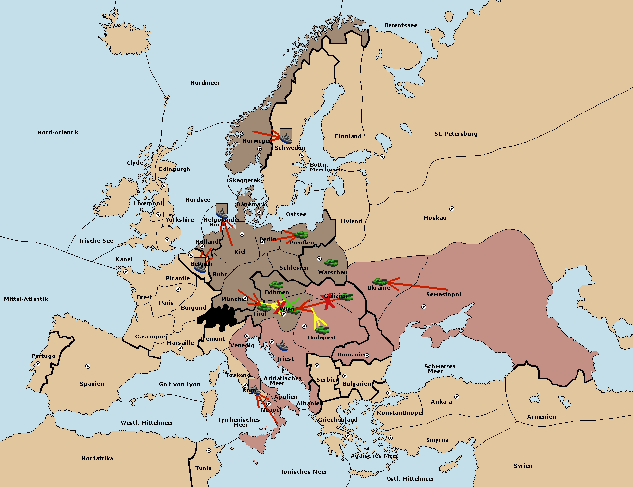 • Die Armee in Wien support move nach Budapest von Galizien.
