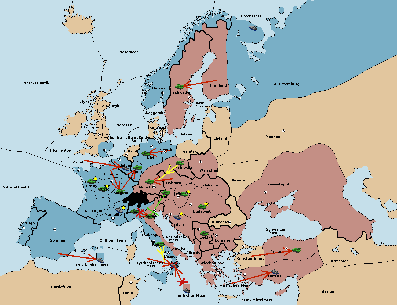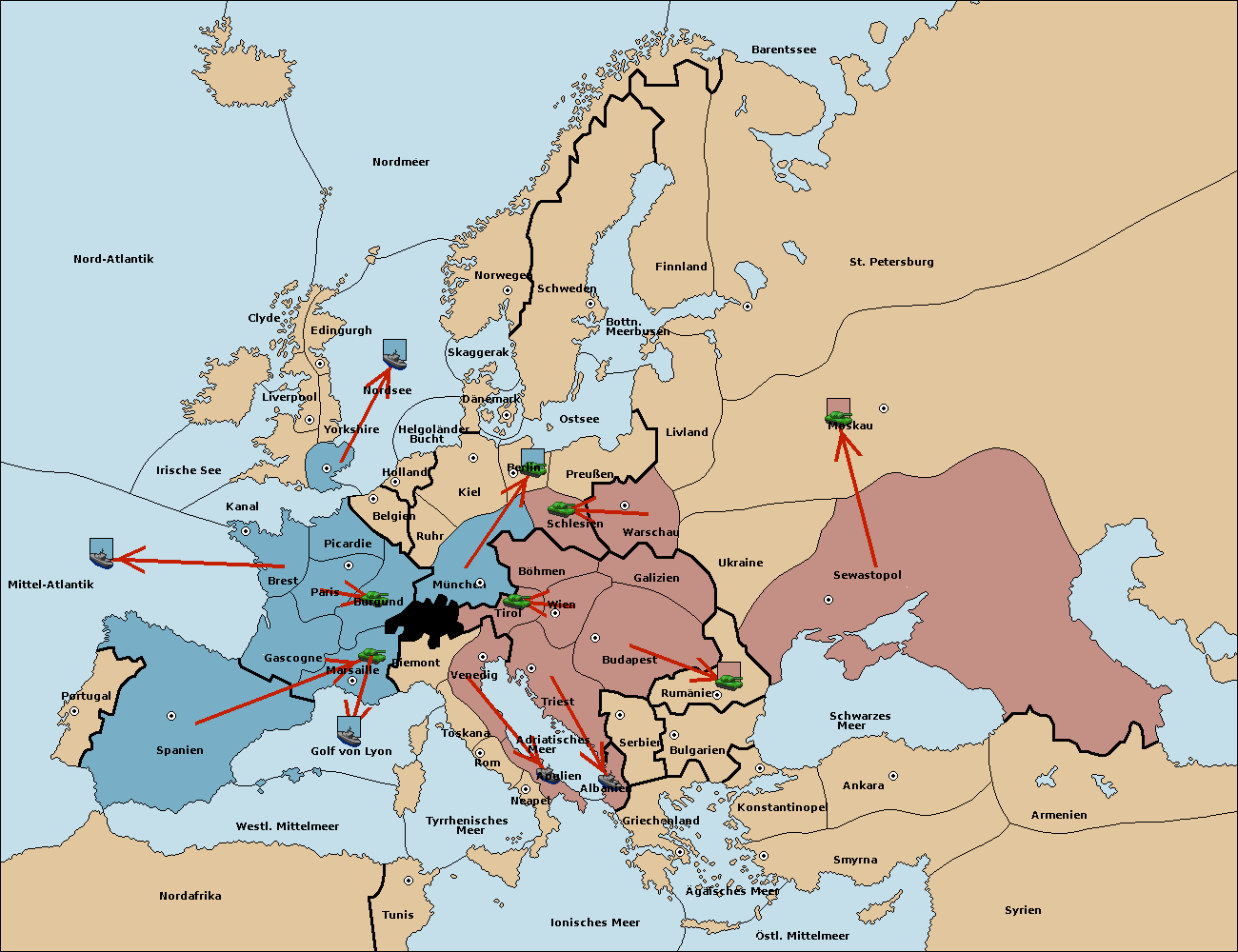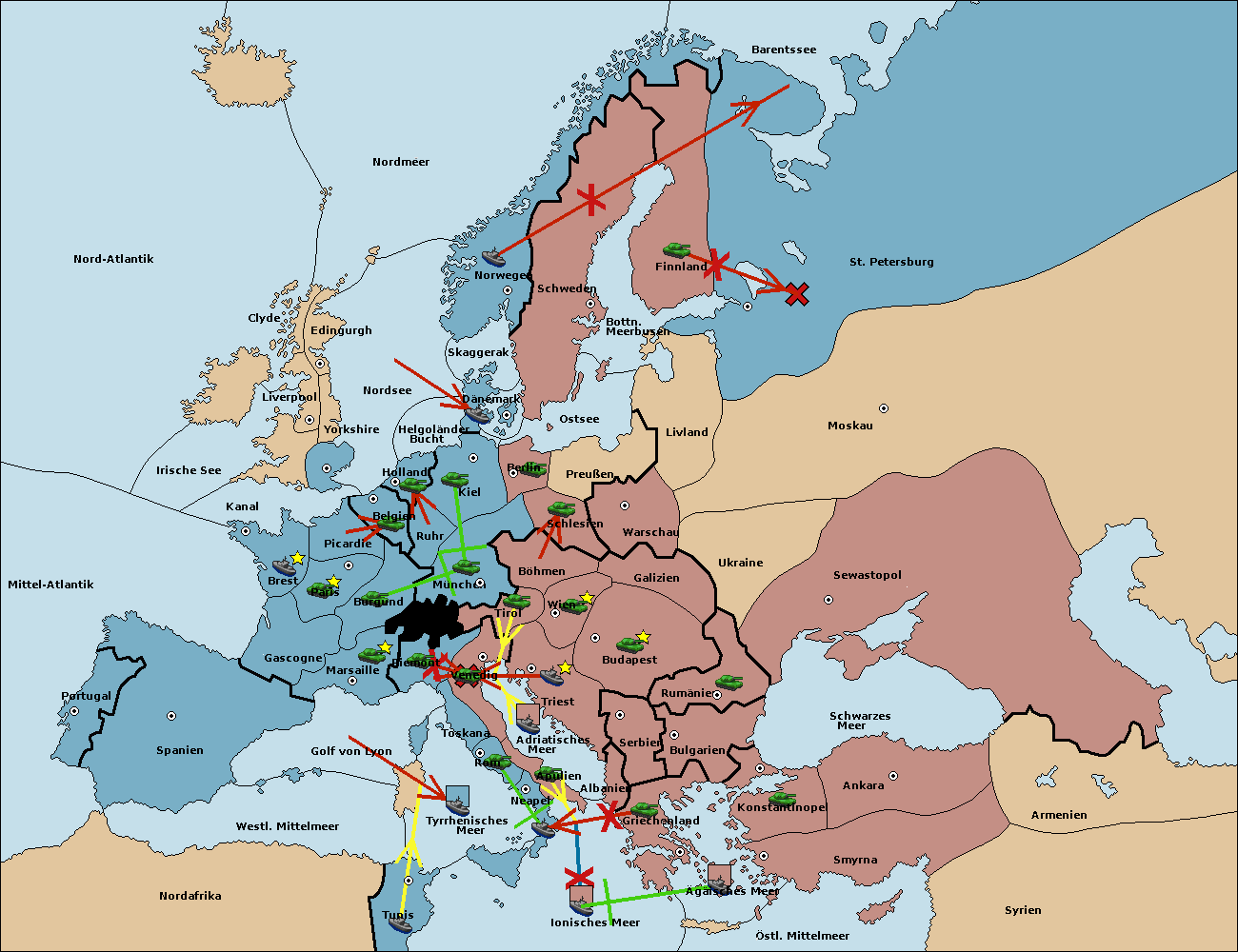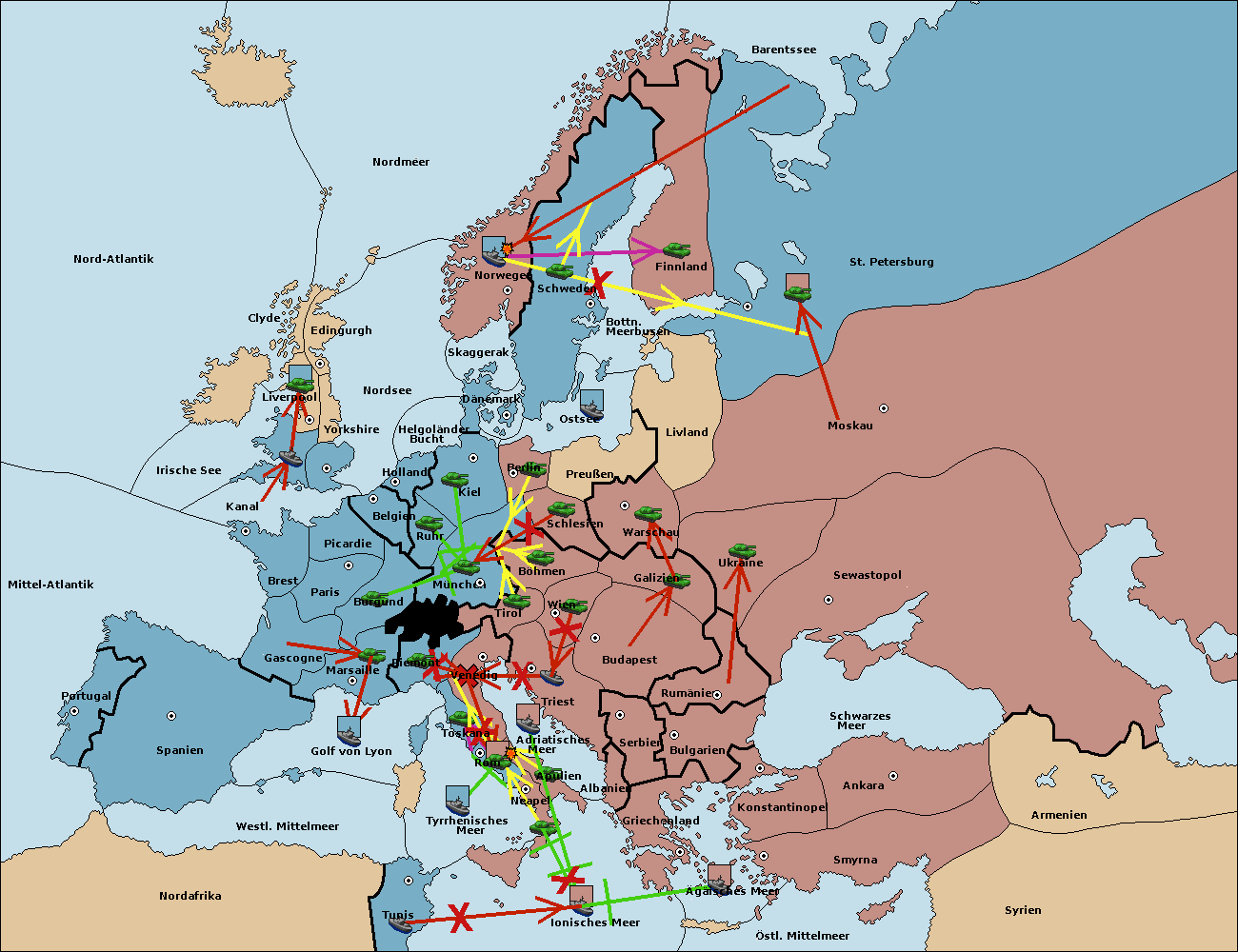 • Die Flotte in St. Petersburg (Nordküste) move nach Norwegen.