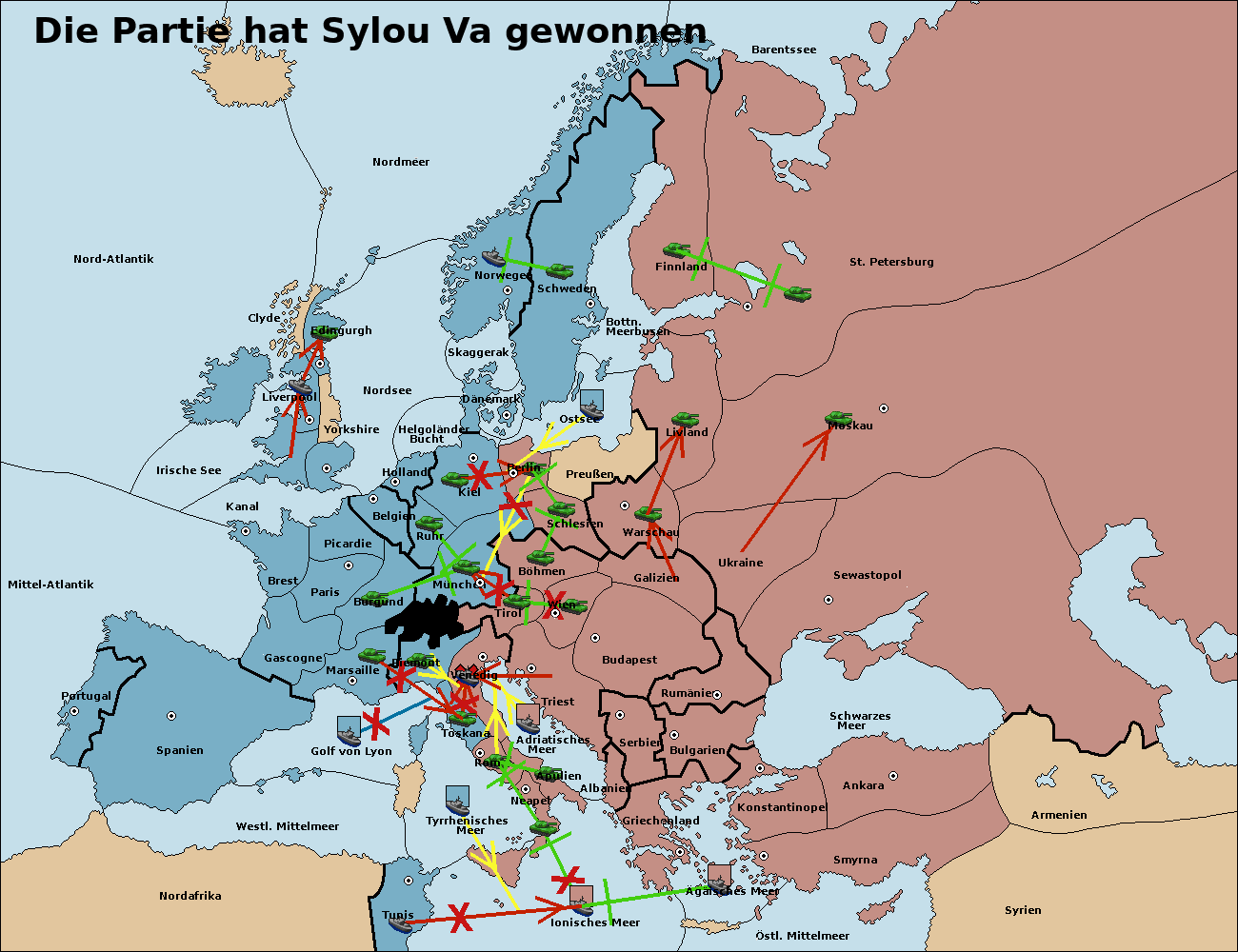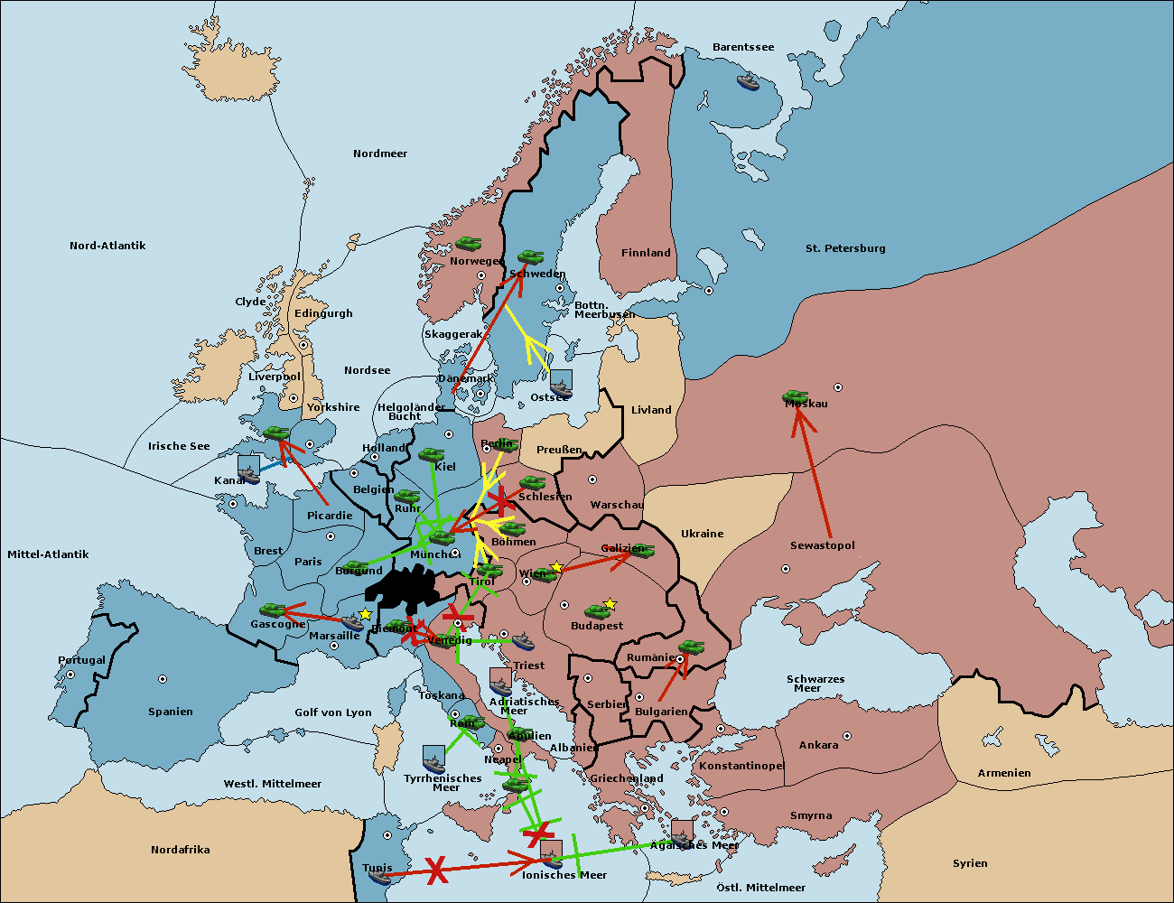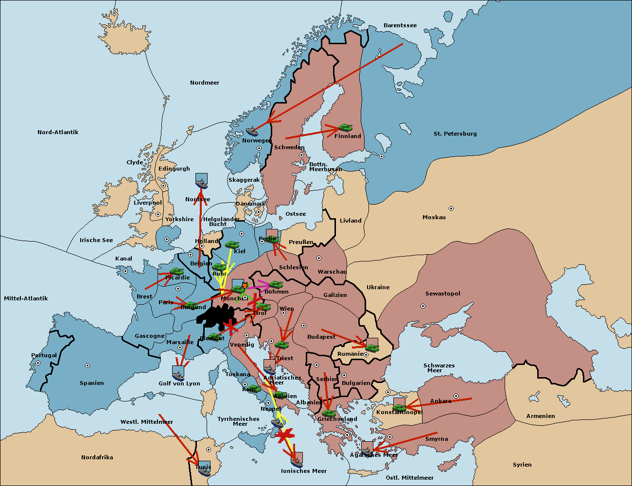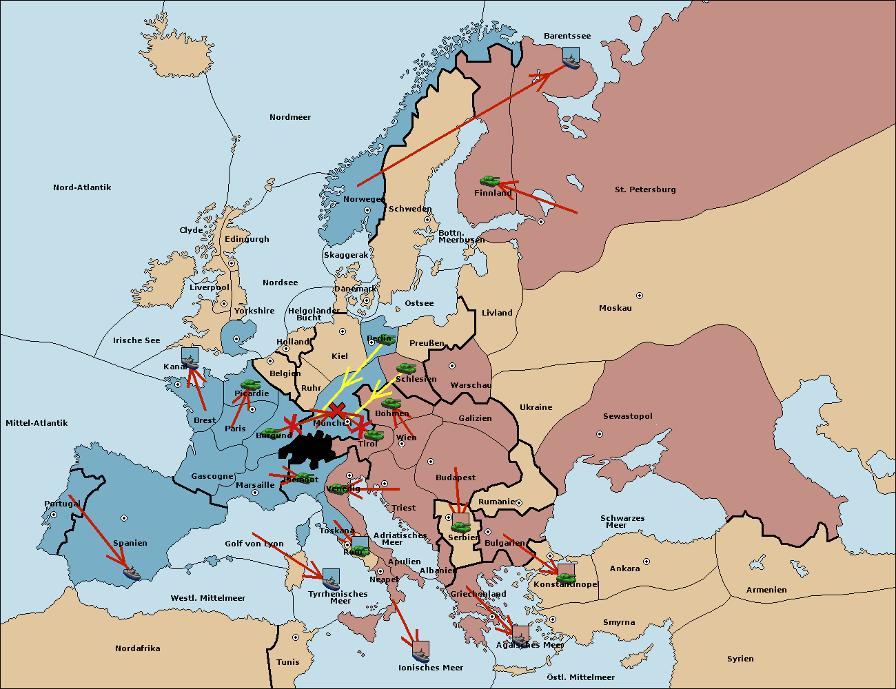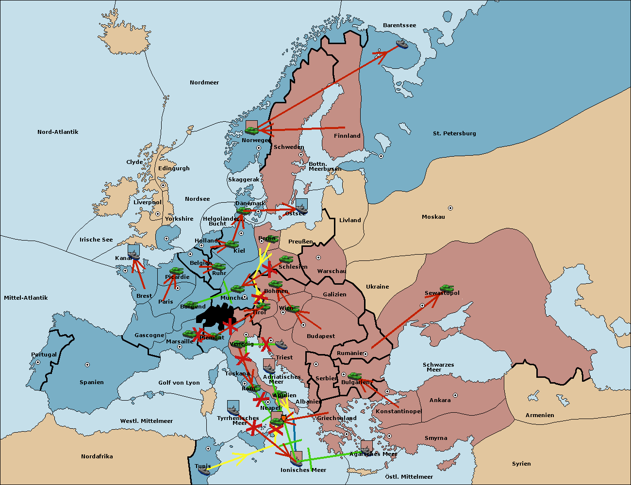 • Die Armee in Kiel support move nach München von Burgund.