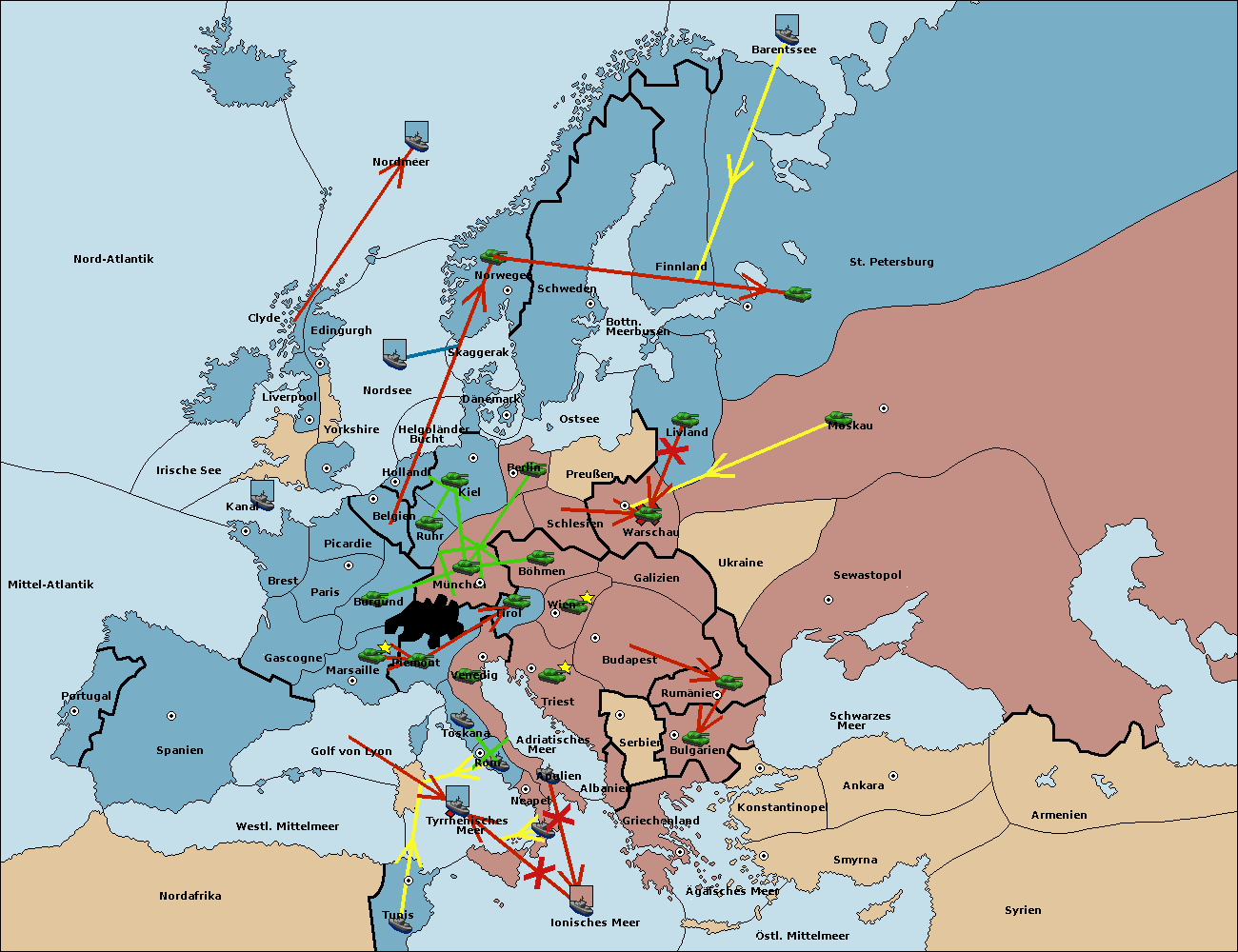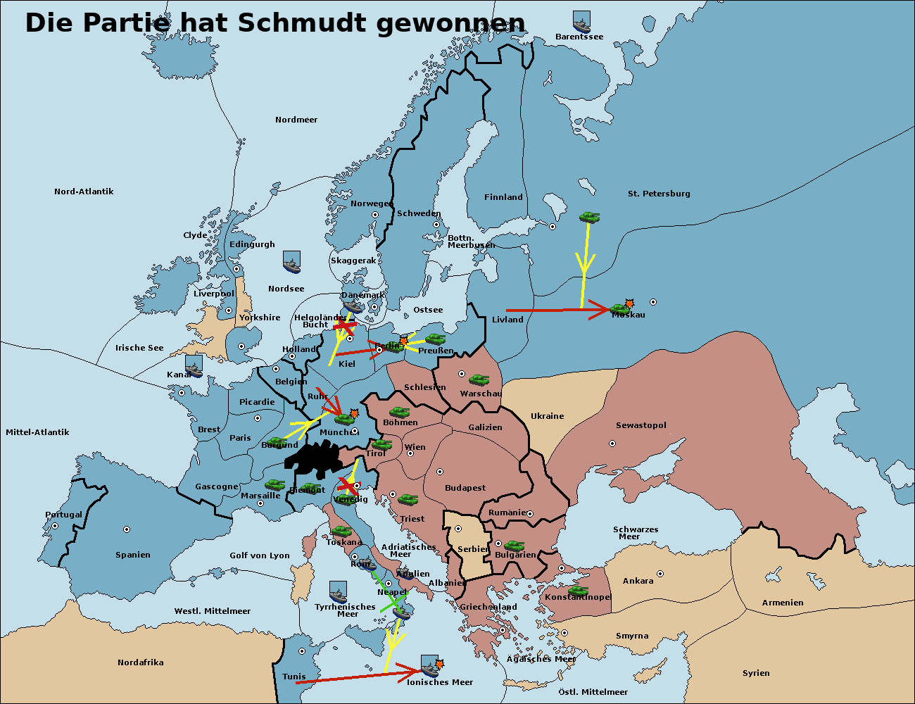 • Die Flotte in Dänemark support move nach Kiel von Ruhr. (gescheitert)