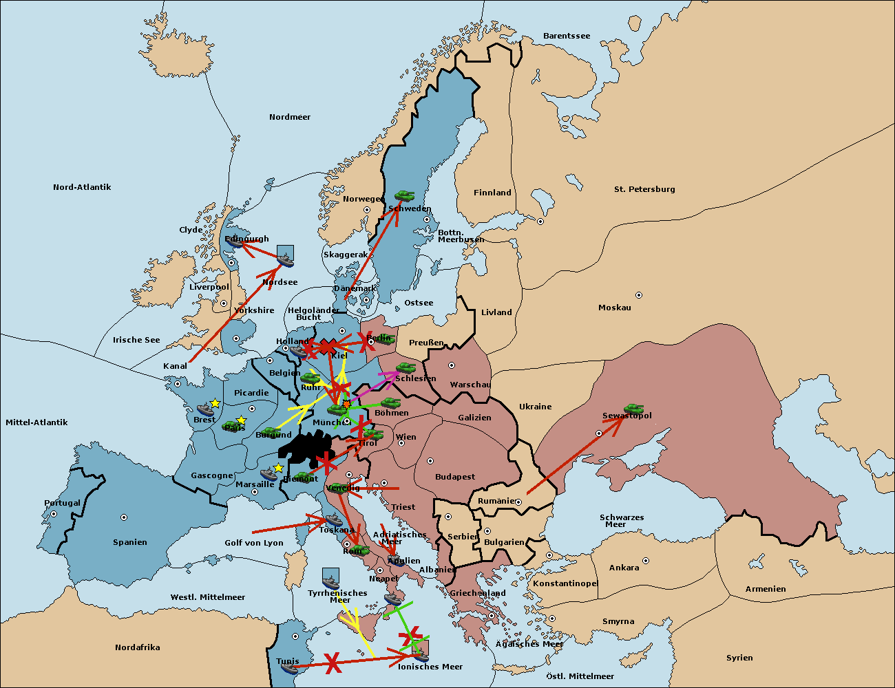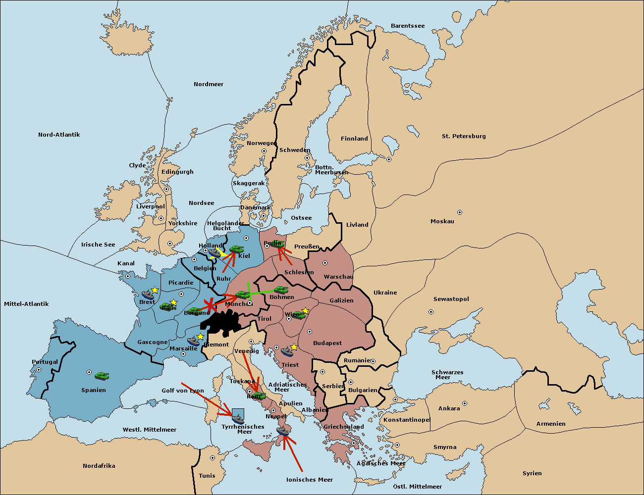 • Die Armee in Ruhr support move nach München von Burgund. (gescheitert)