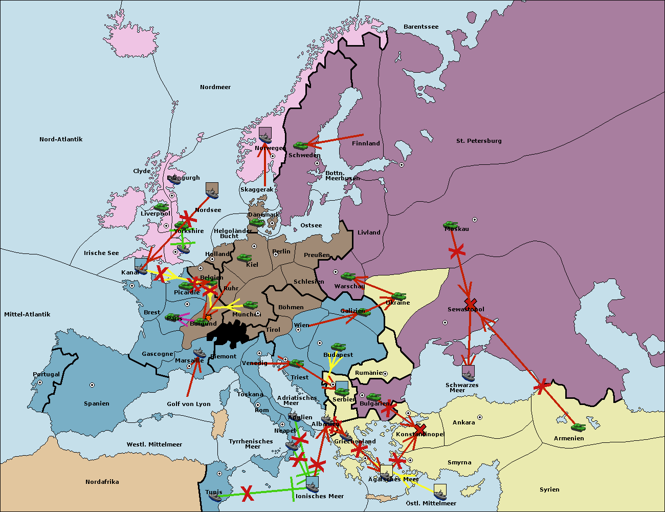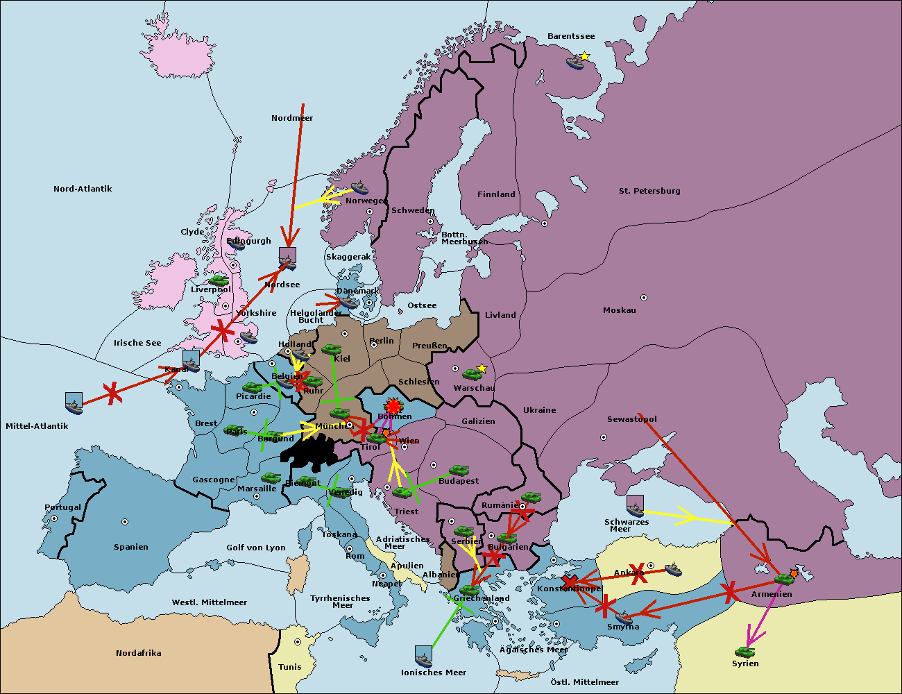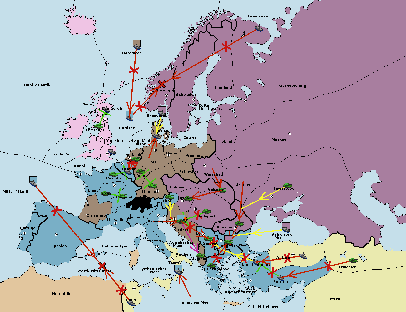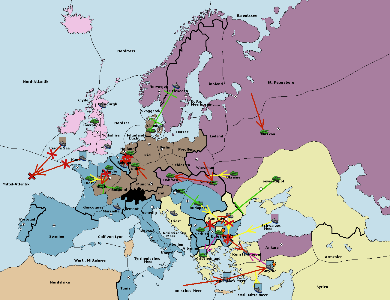 • Die Armee in Konstantinopel support hold nach Bulgarien.