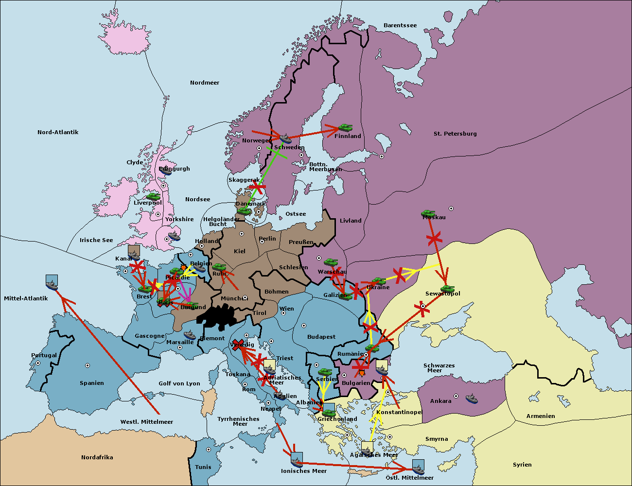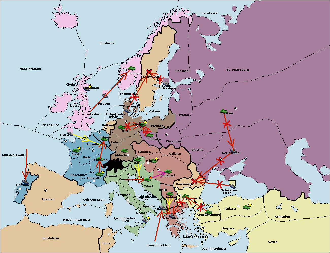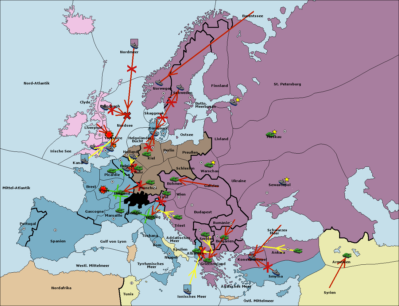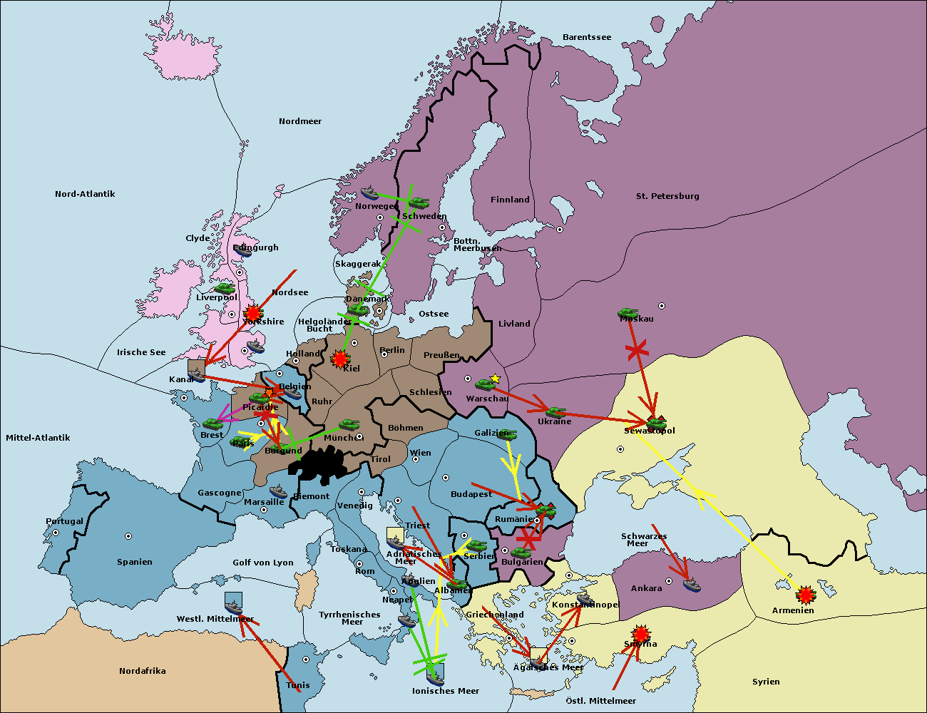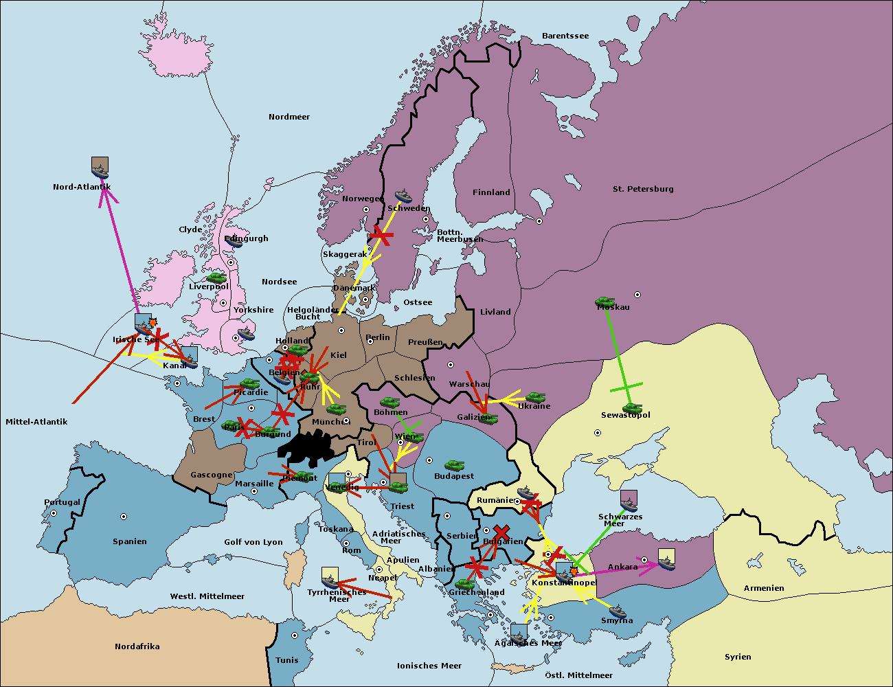 • Die Armee in Konstantinopel support hold nach Bulgarien.