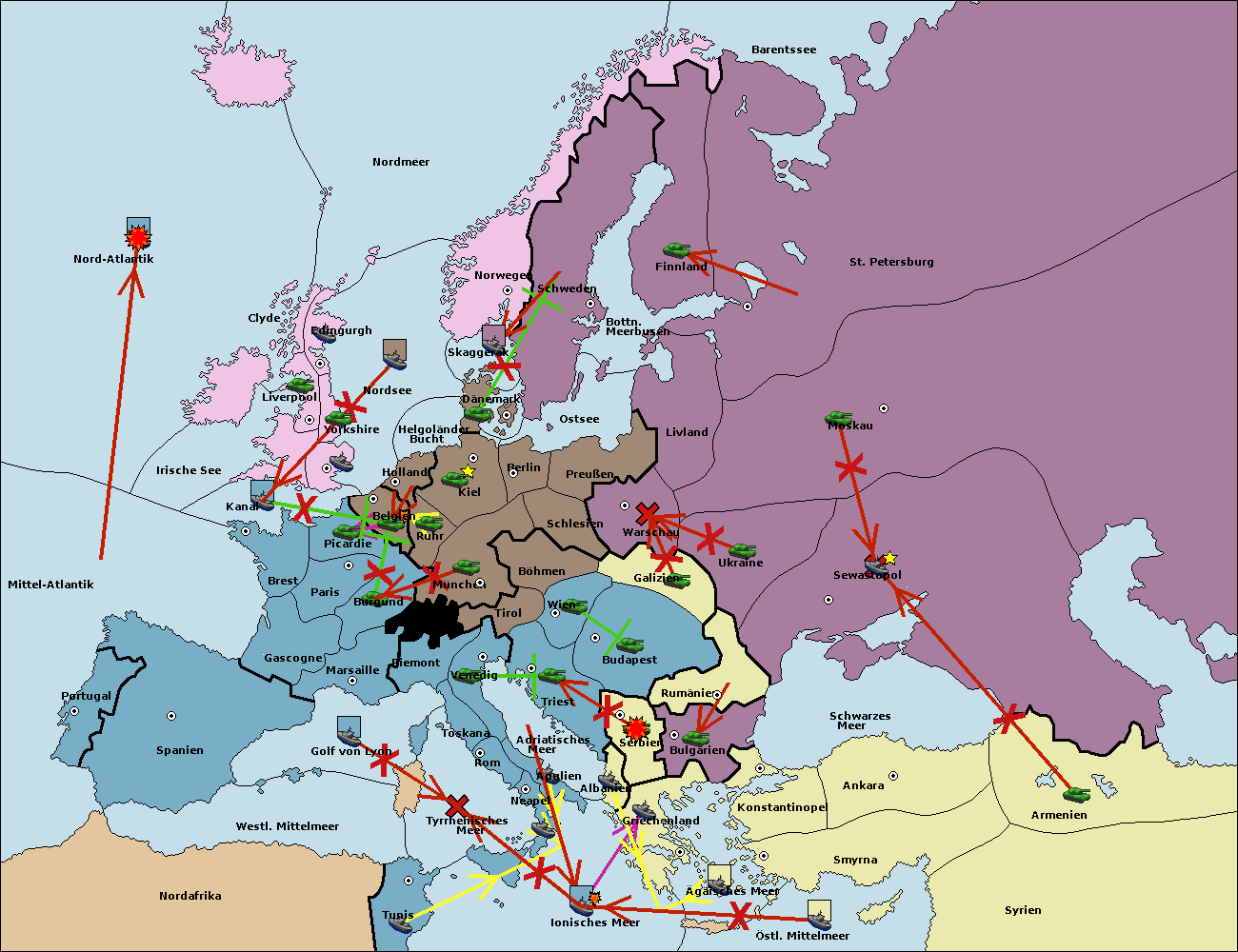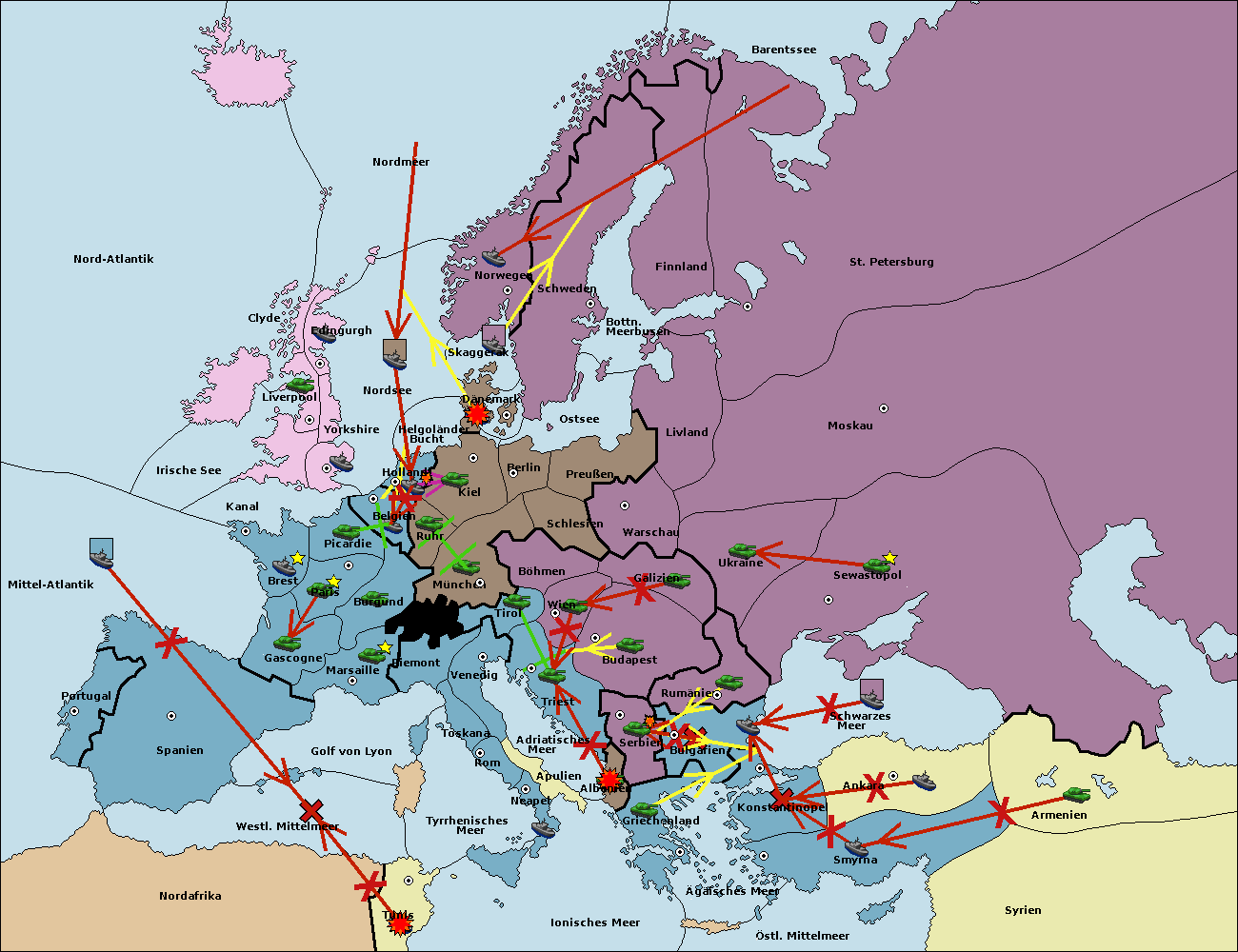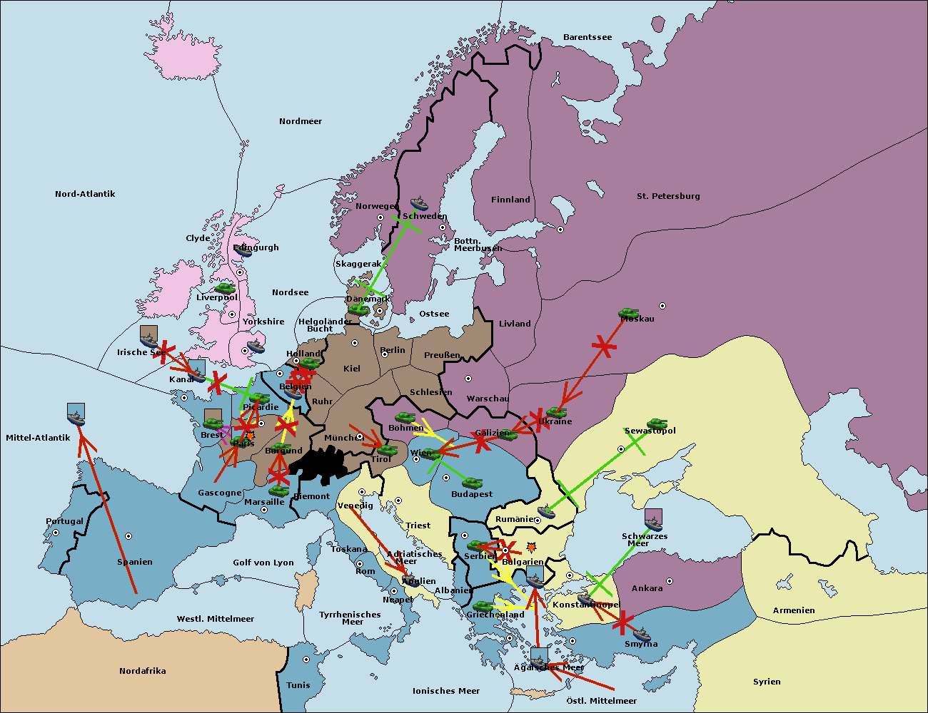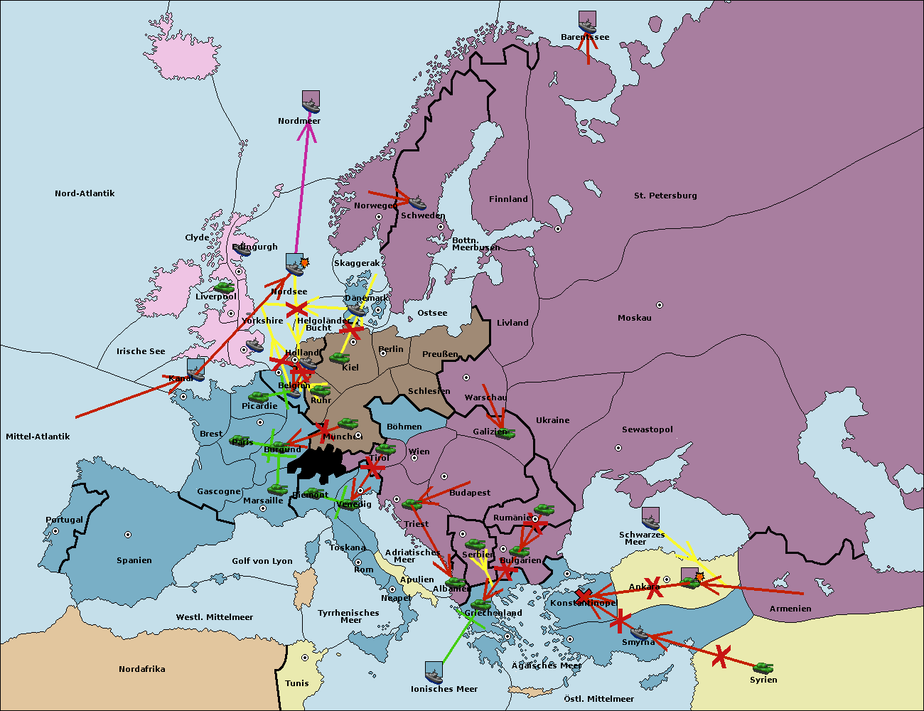 • Die Armee in Konstantinopel support hold nach Bulgarien.