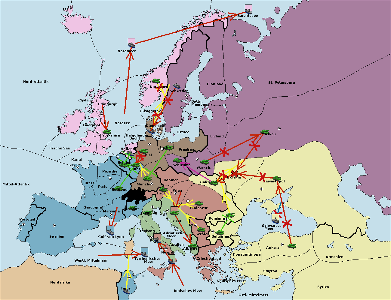 • Die Flotte in Spanien (Südküste) move nach westl. Mittelmeer. (gescheitert)