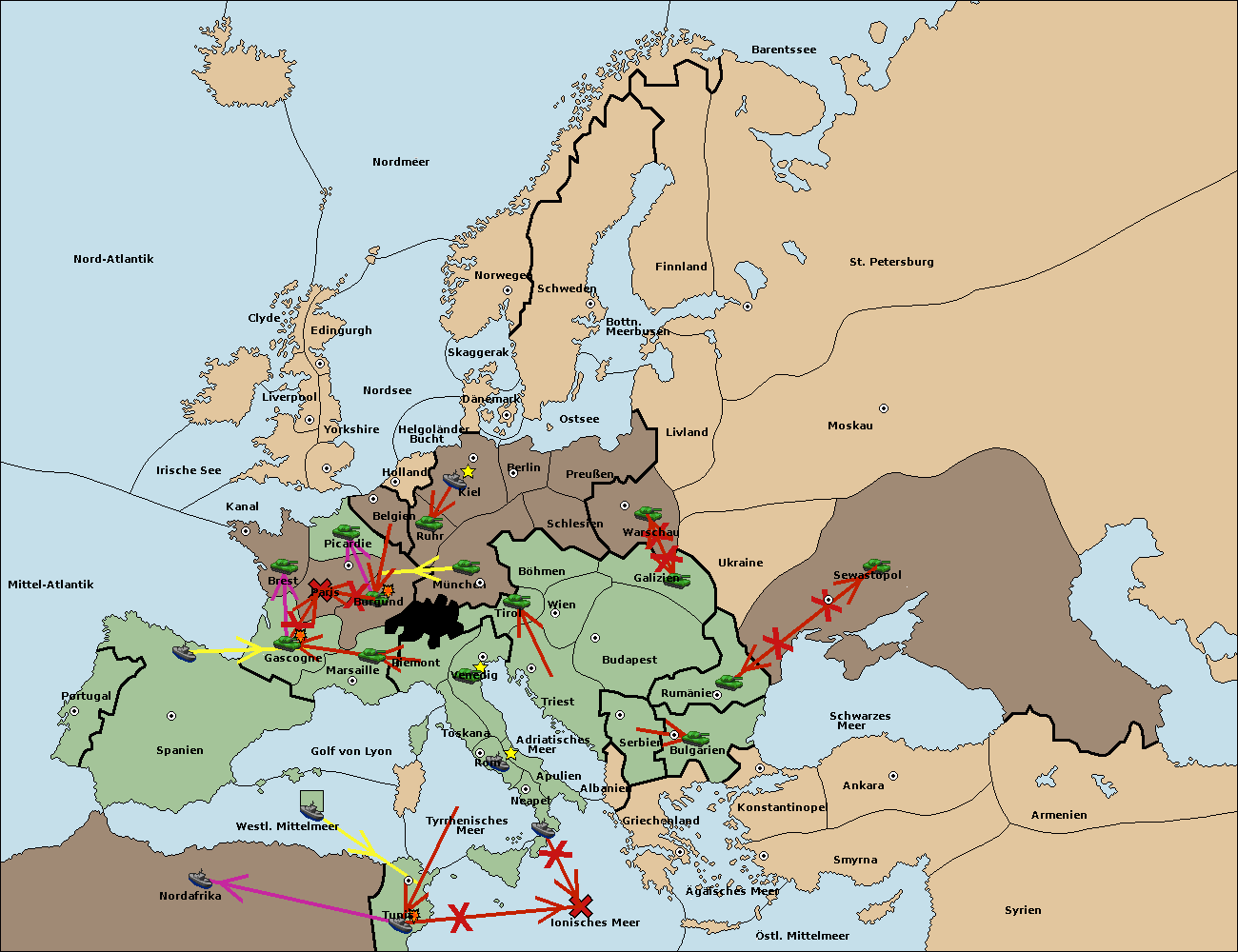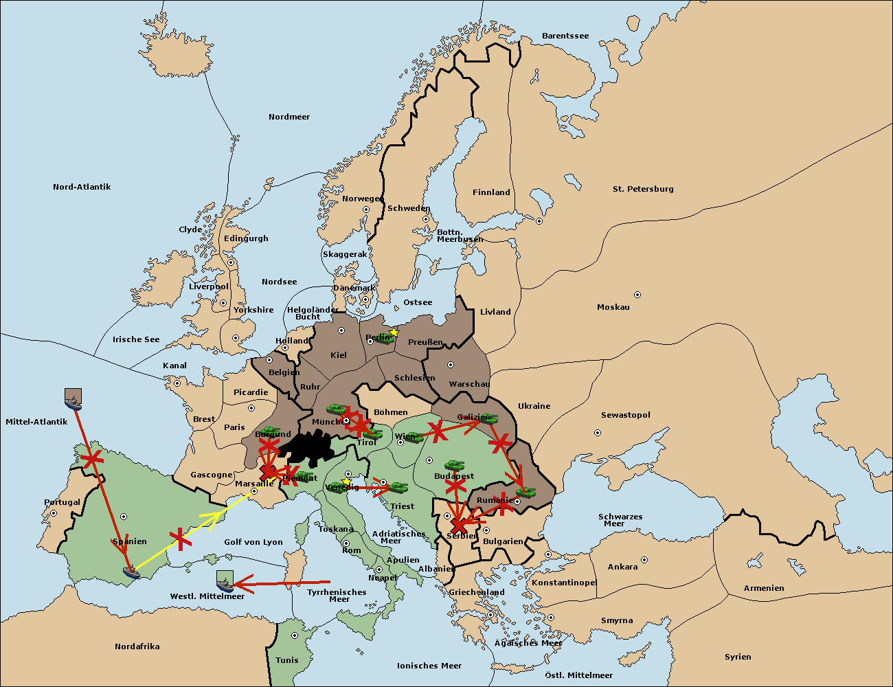 • Die Flotte in Spanien (Südküste) support move nach Marseille von Piemont. (gescheitert)