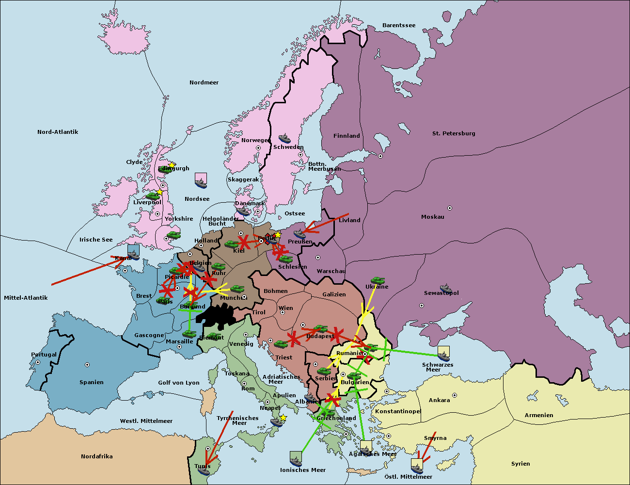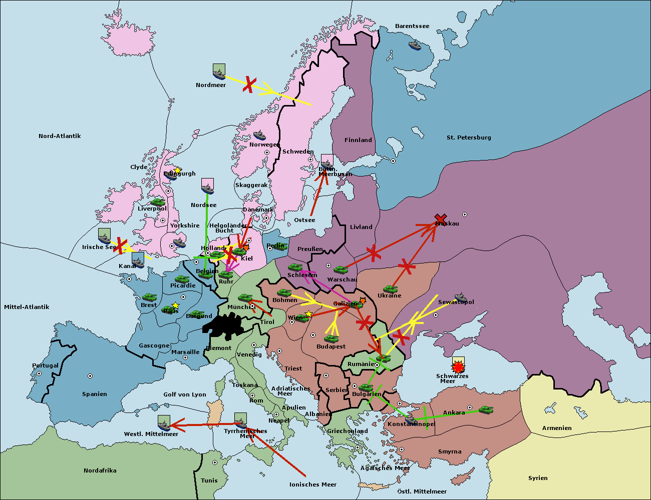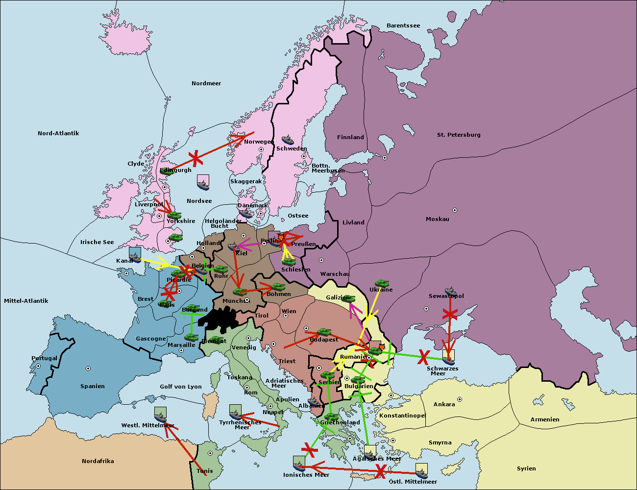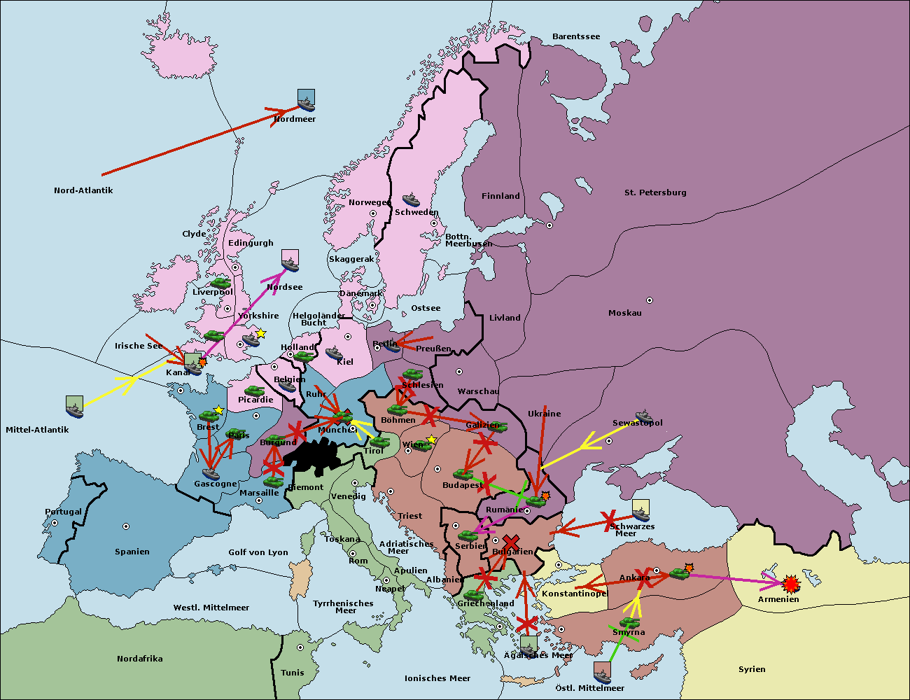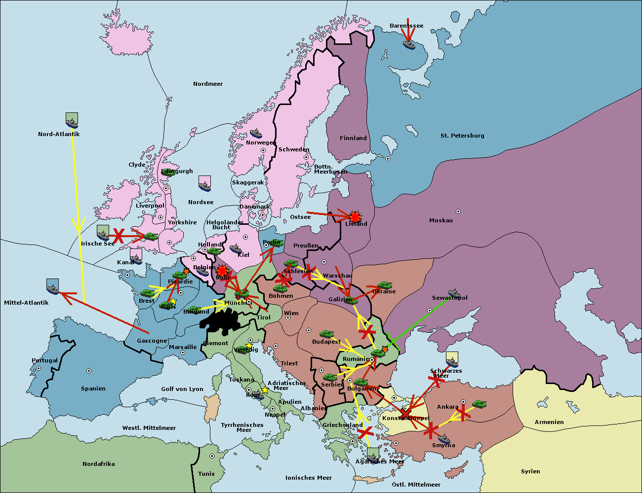 • Die Armee in Bulgarien wird zerstörtFlotte in Bulgarien gebaut.