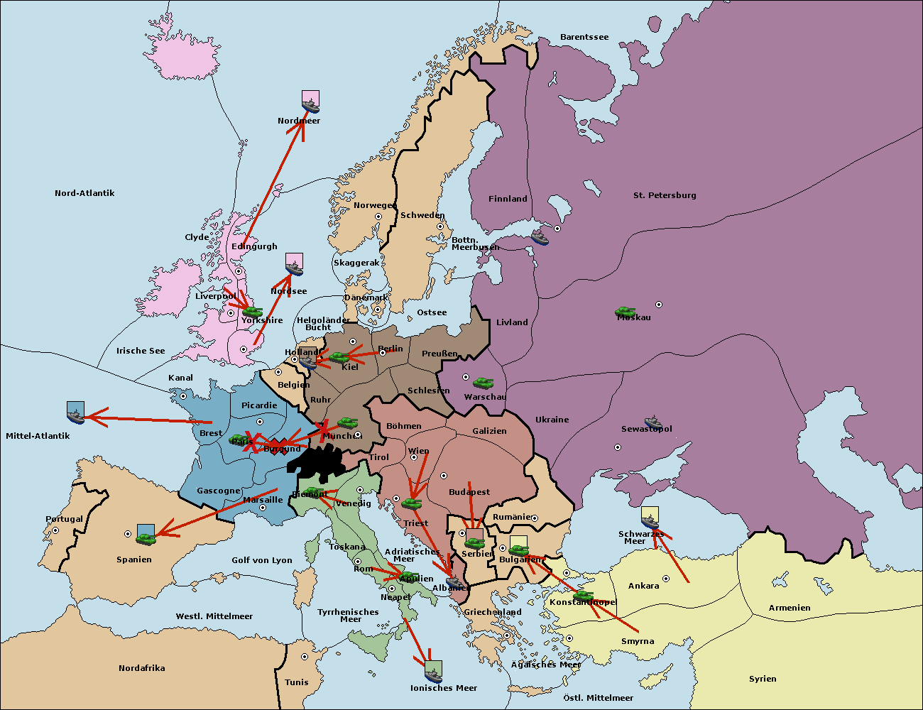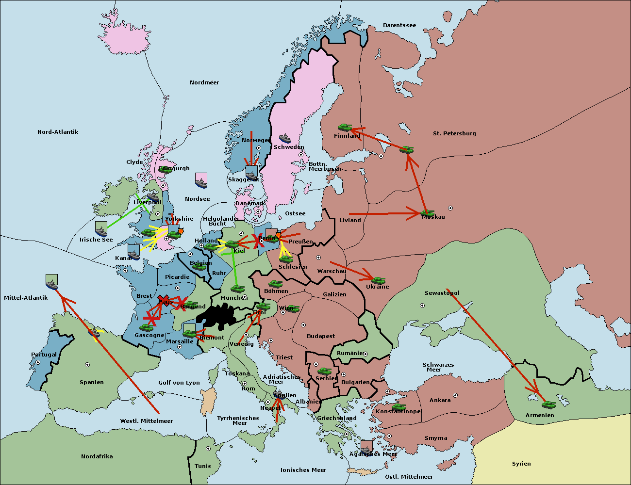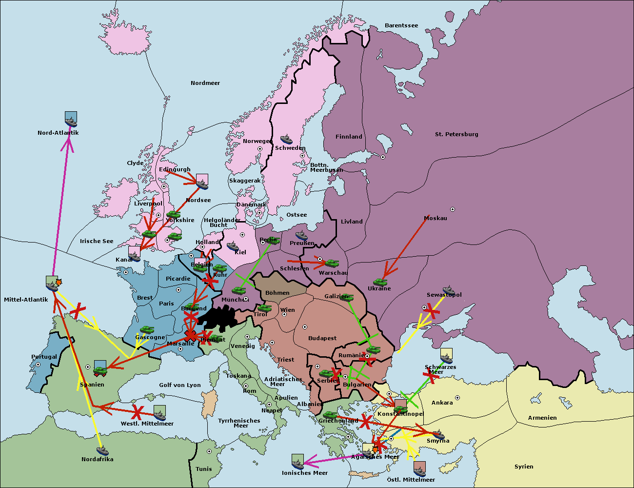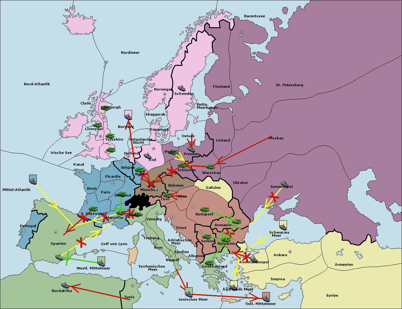 • Die Armee in Bulgarien wird zerstörtFlotte in Bulgarien gebaut.