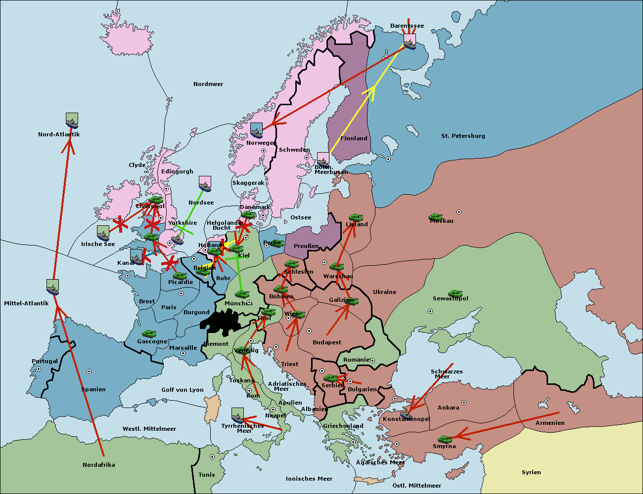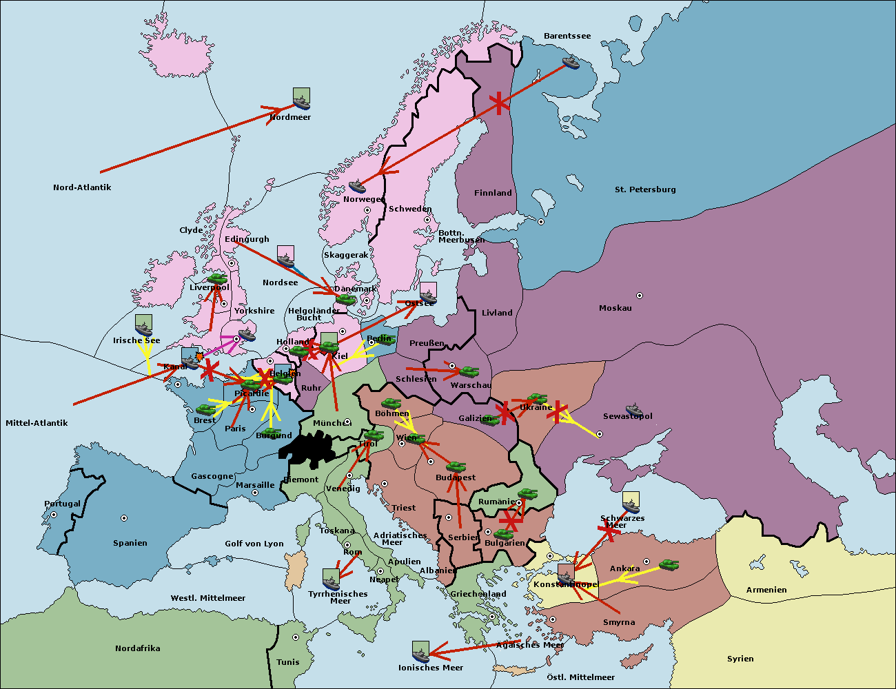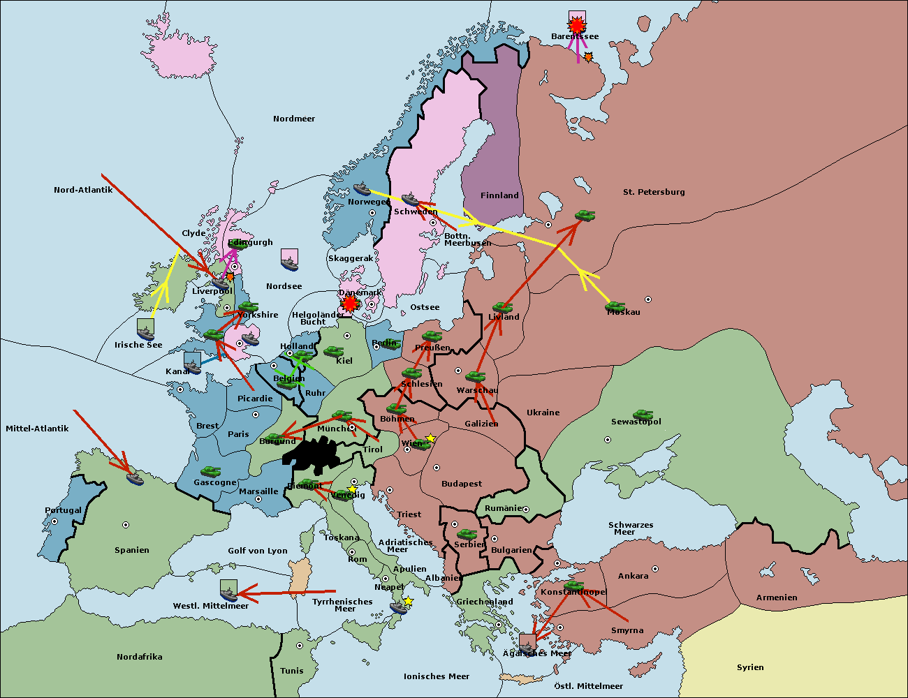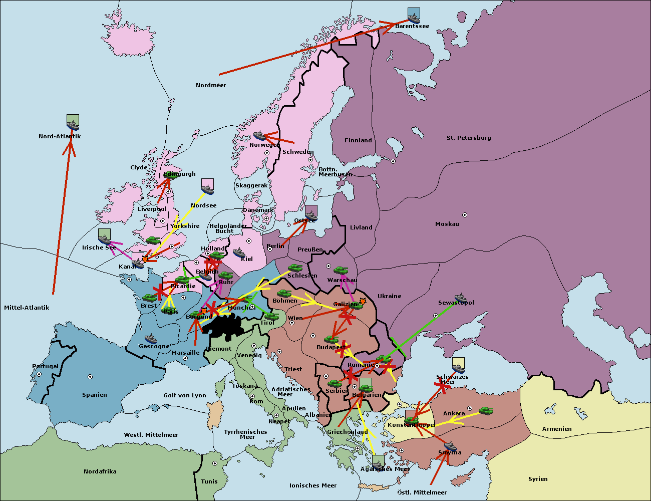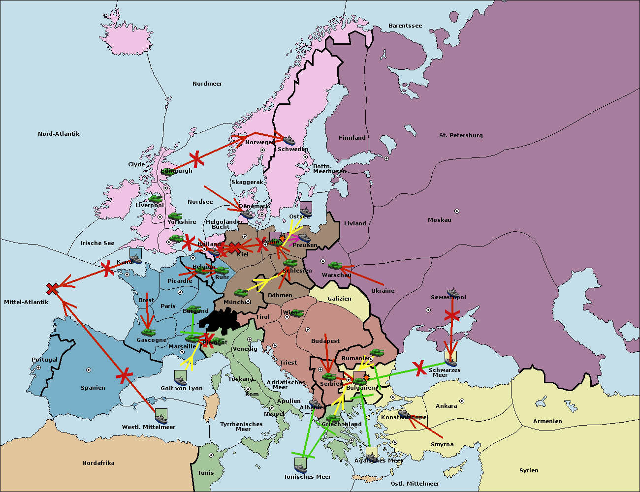 • Die Armee in Bulgarien wird zerstörtFlotte in Bulgarien gebaut.