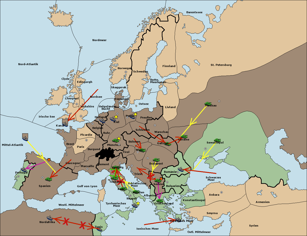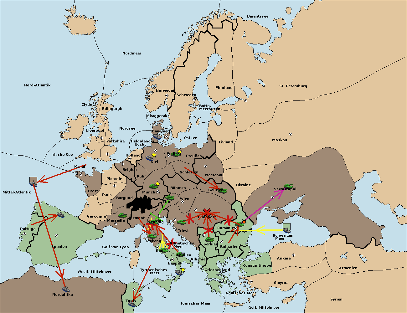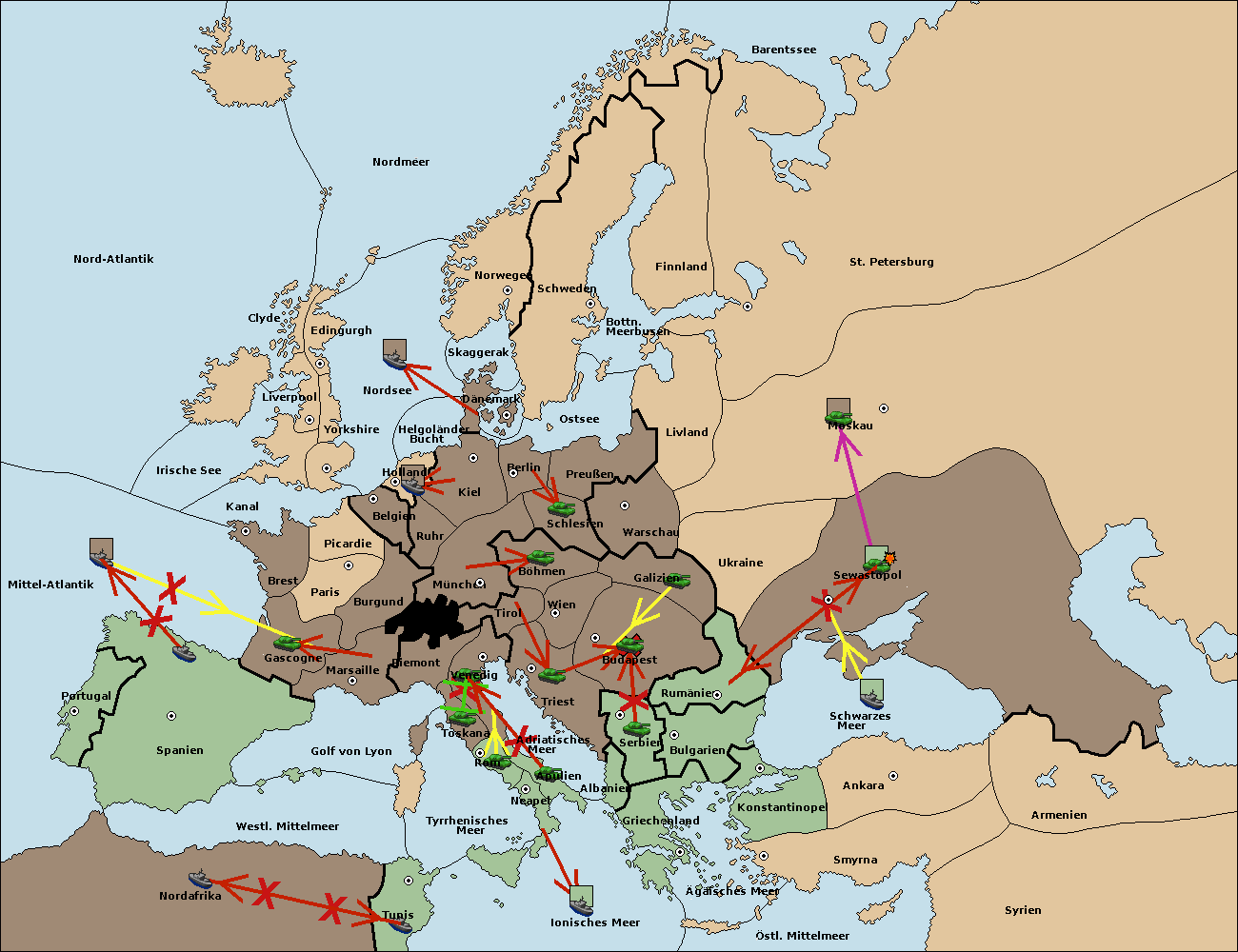 • Die Flotte in Nord Afrika move nach Tunis. (gescheitert)