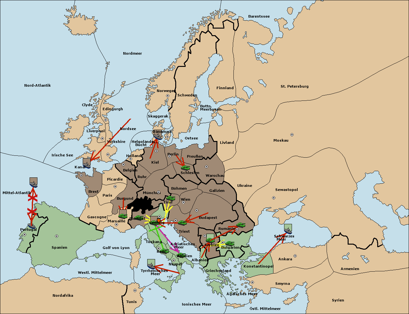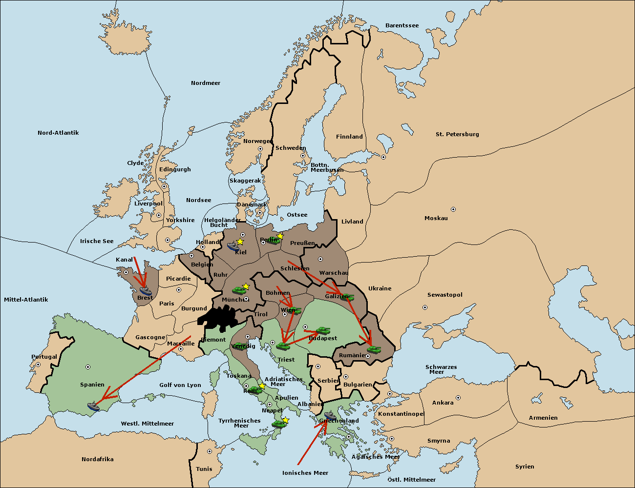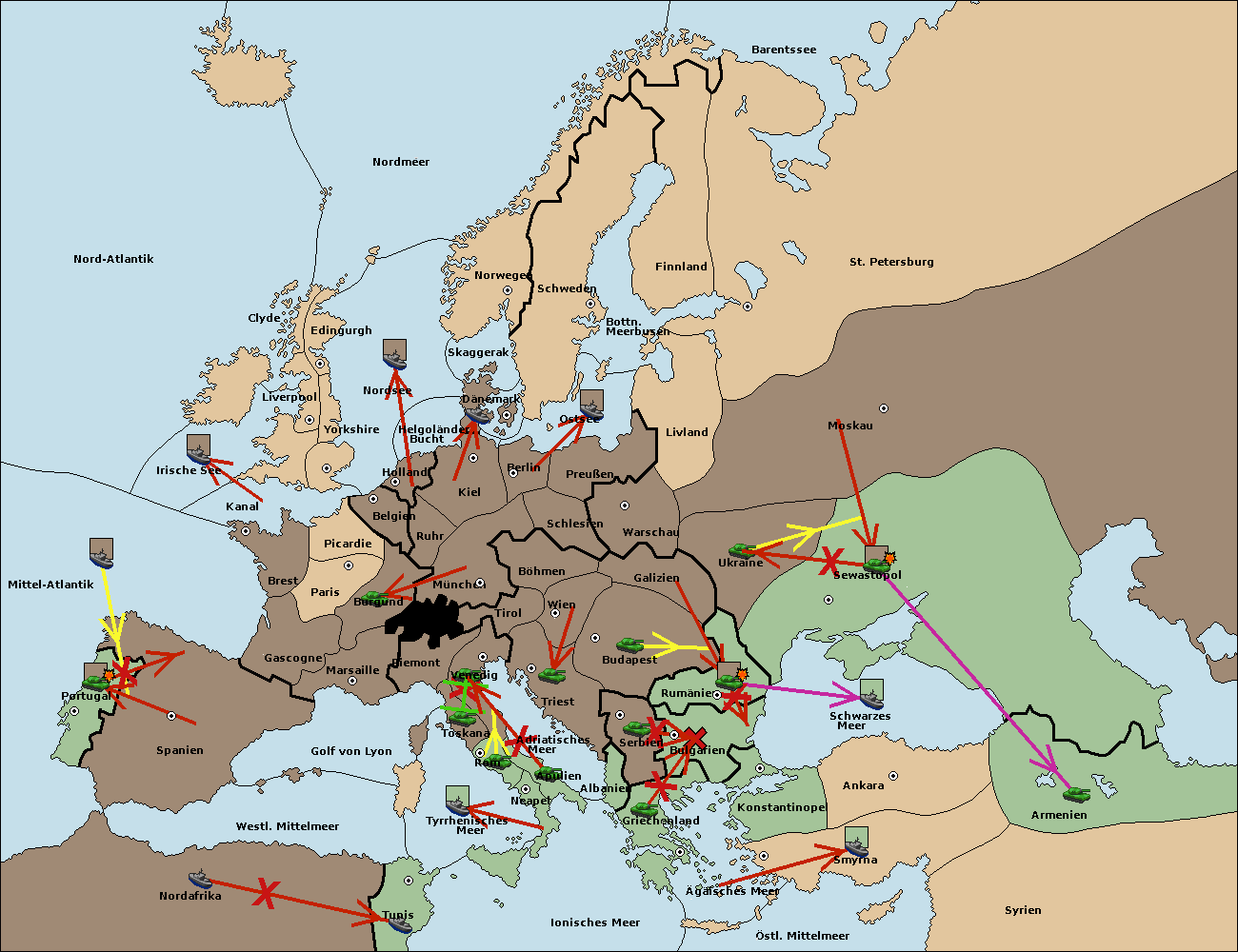 • Die Flotte in Nord Afrika move nach Tunis. (gescheitert)