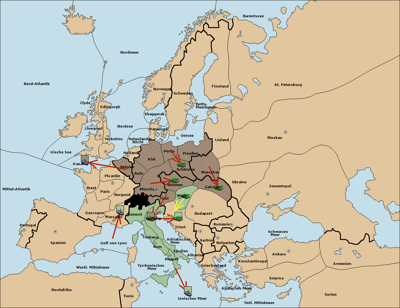 • Die Armee in Wien support move nach Triest von Venedig.