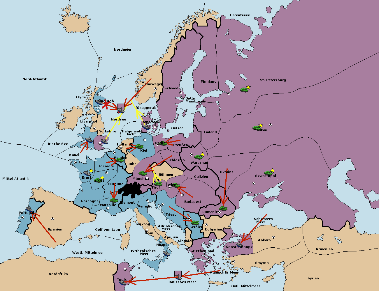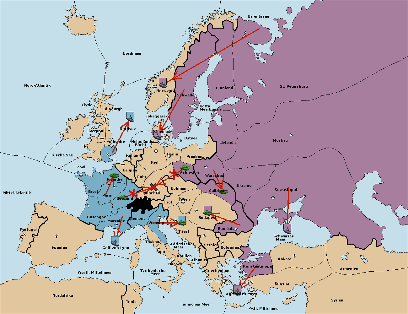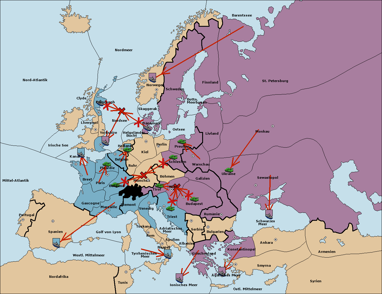 • Die Flotte in St. Petersburg (Nordküste) move nach Norwegen.