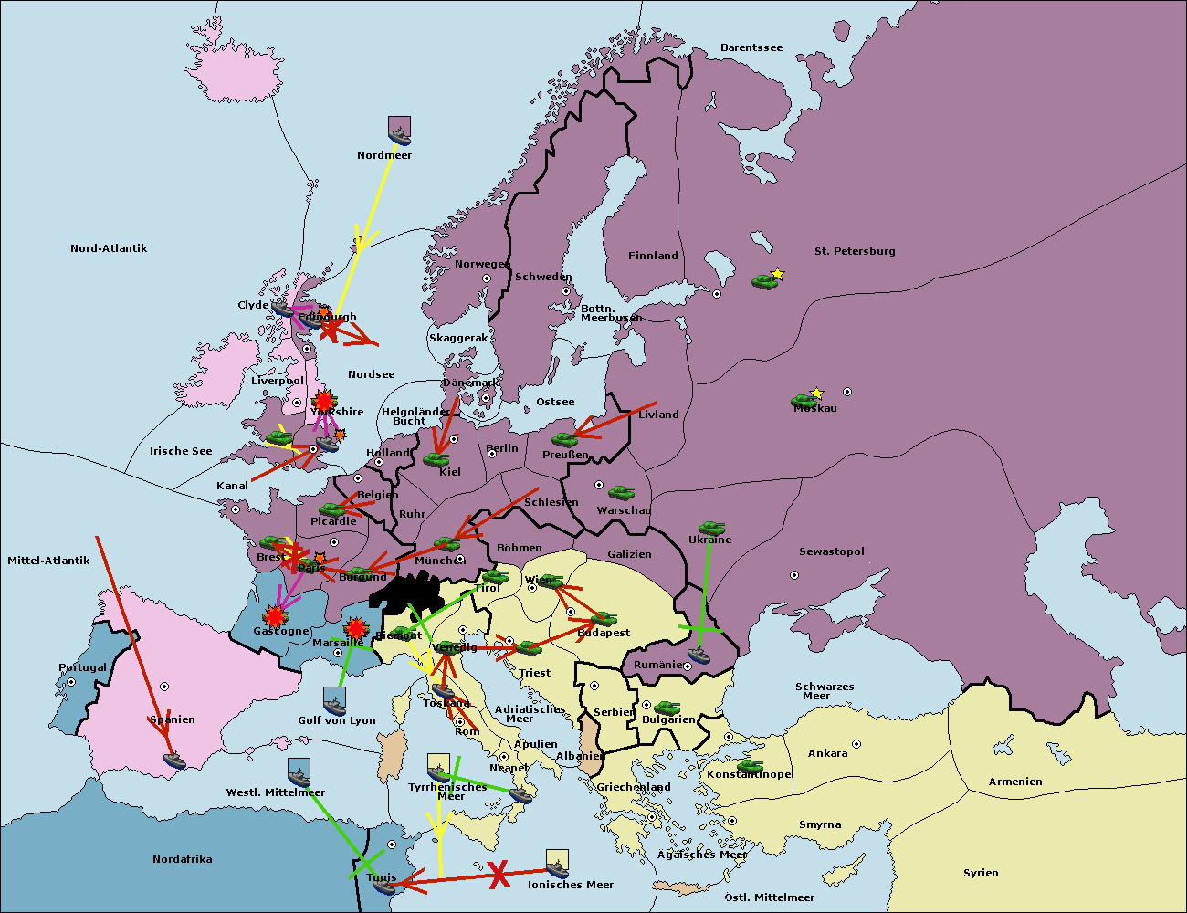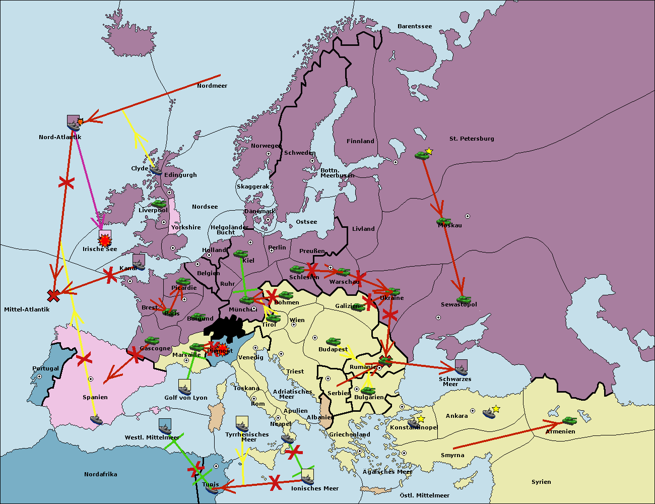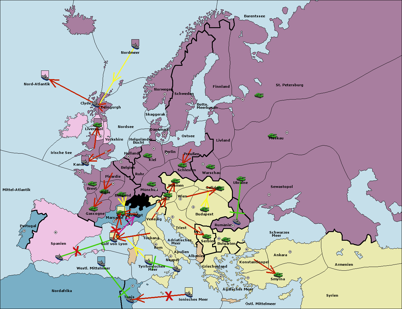 • Die Flotte in Spanien (Südküste) support move nach Marseille von Burgund. (gescheitert) (verdrängt)