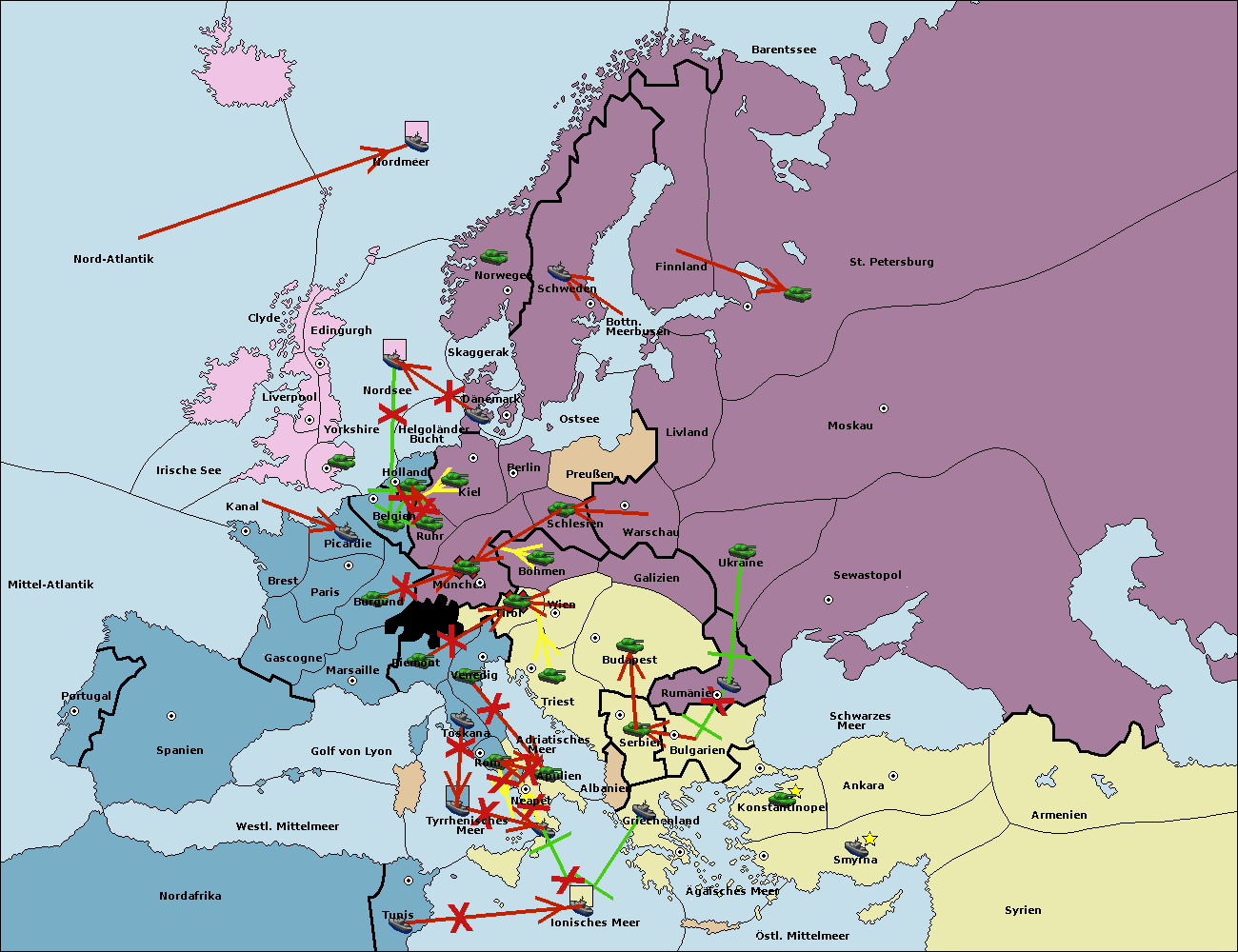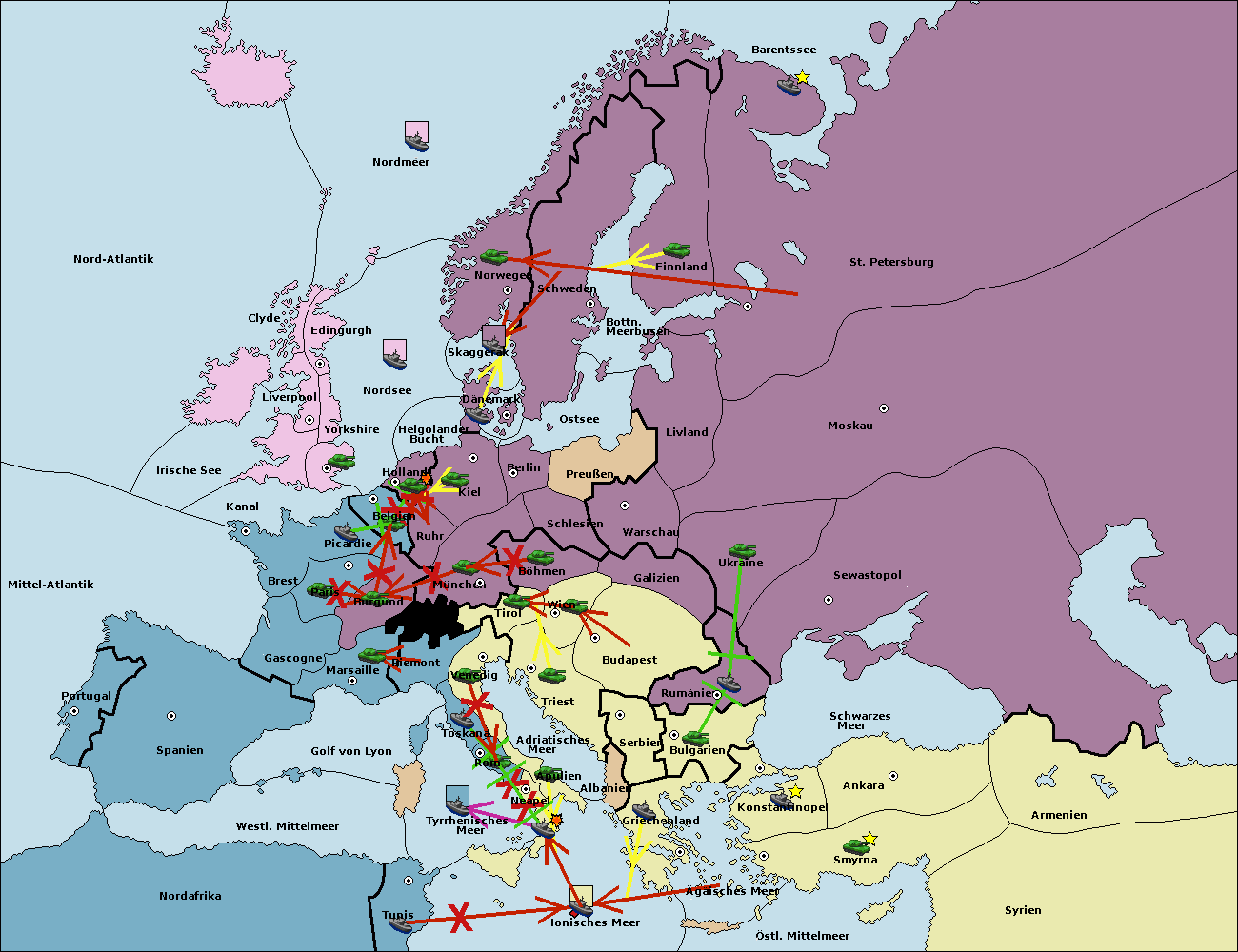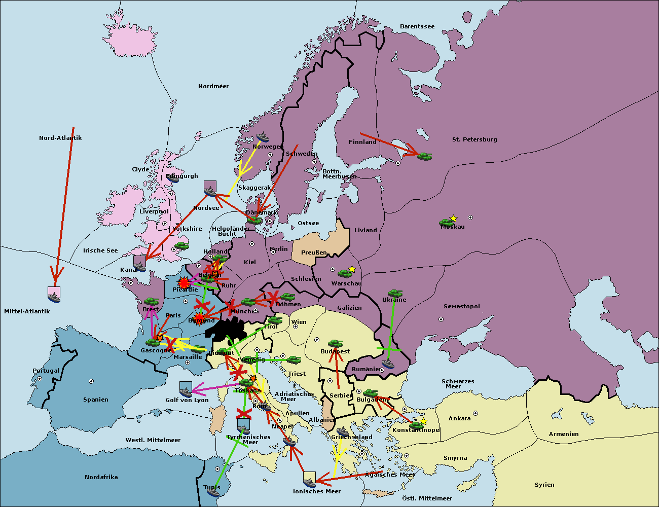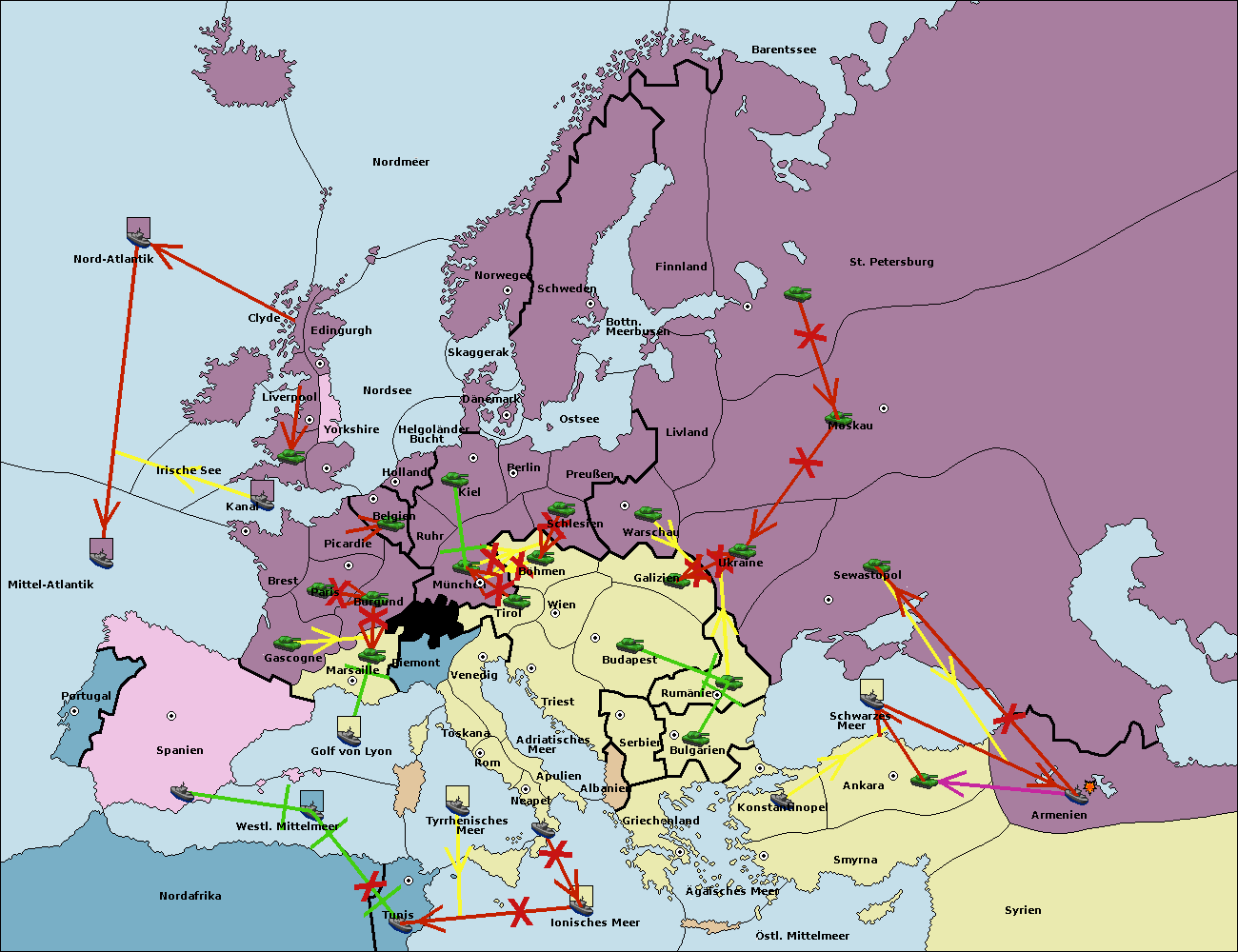 • Die Flotte in Spanien (Südküste) support move nach Marseille von Burgund. (gescheitert) (verdrängt)