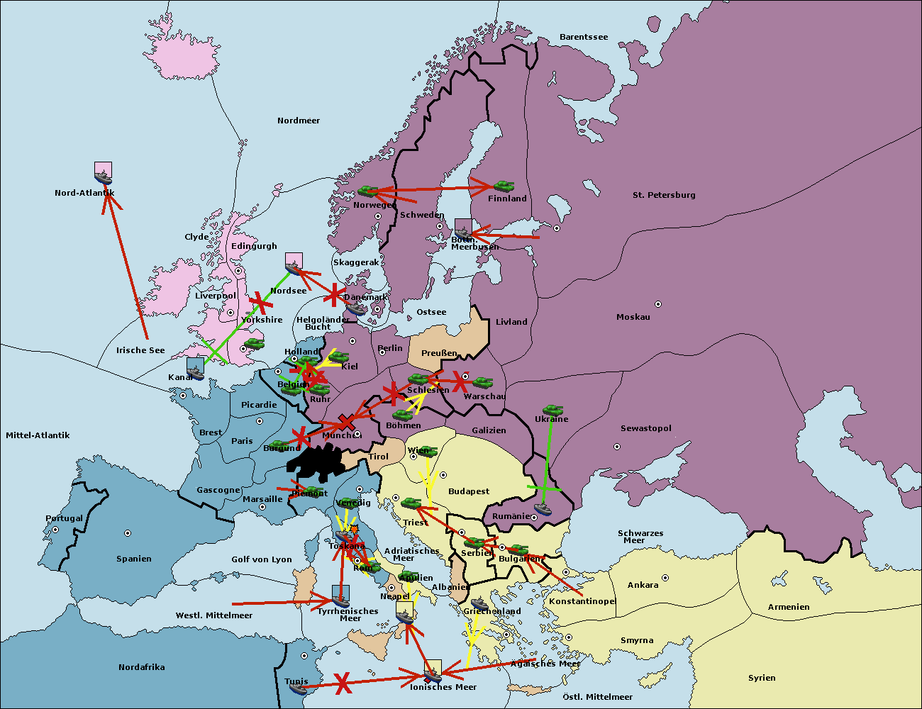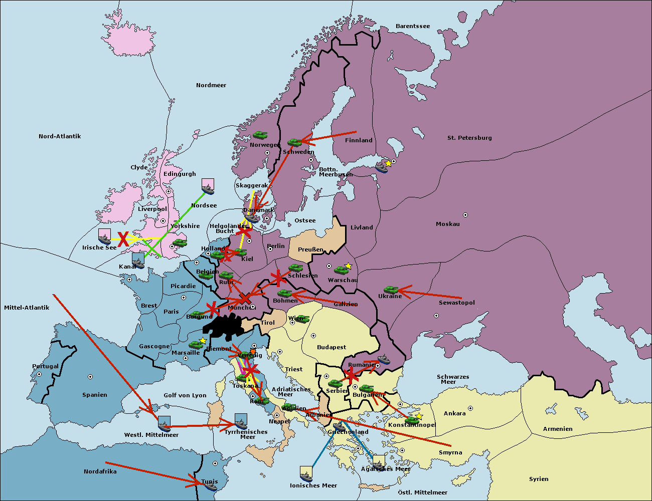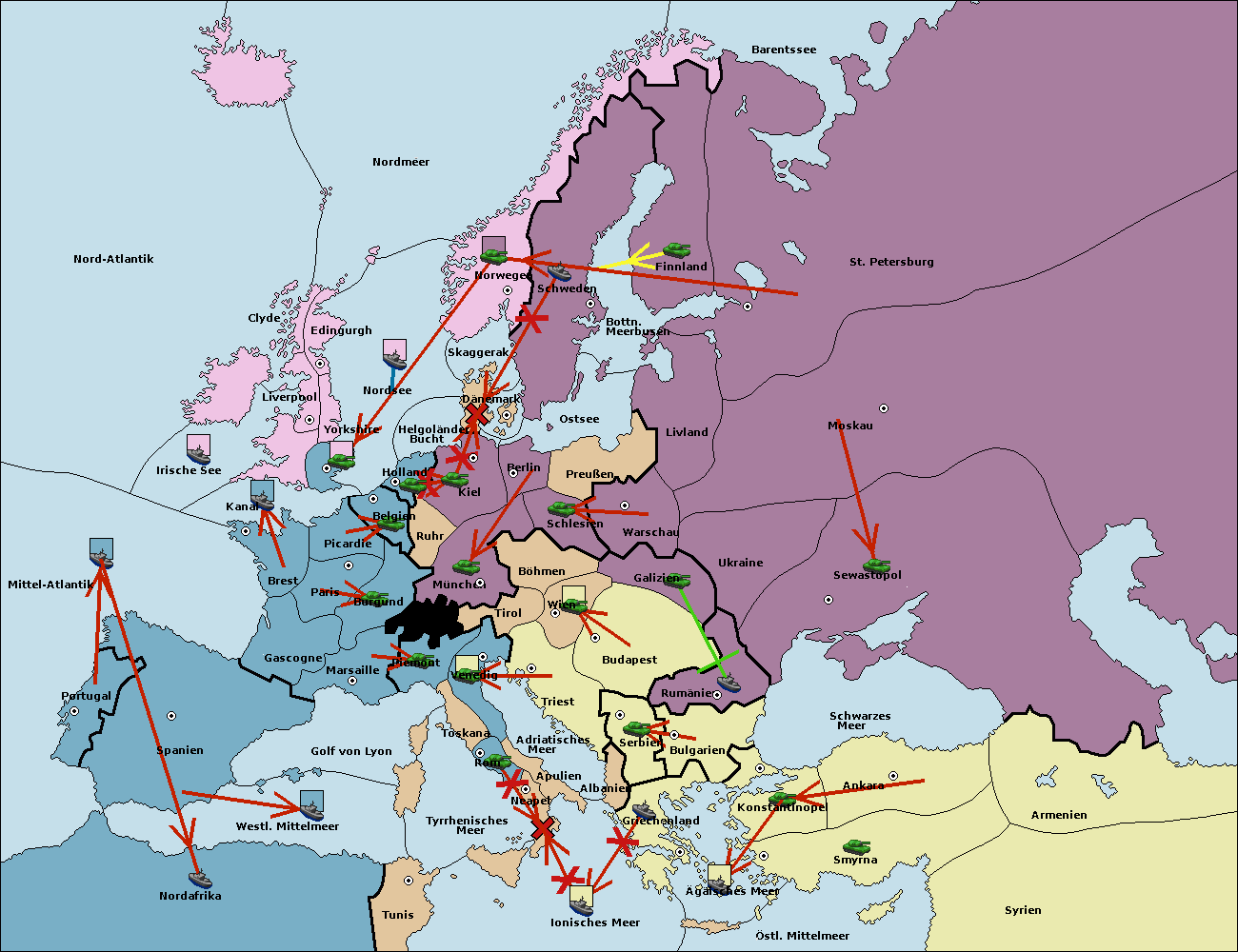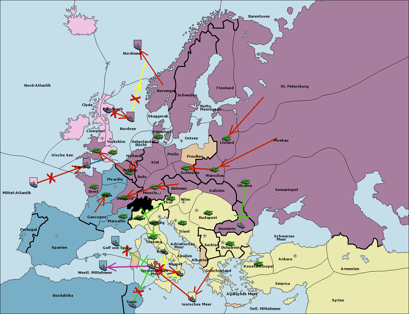 • Die Flotte in Spanien (Südküste) support hold nach westl. Mittelmeer.