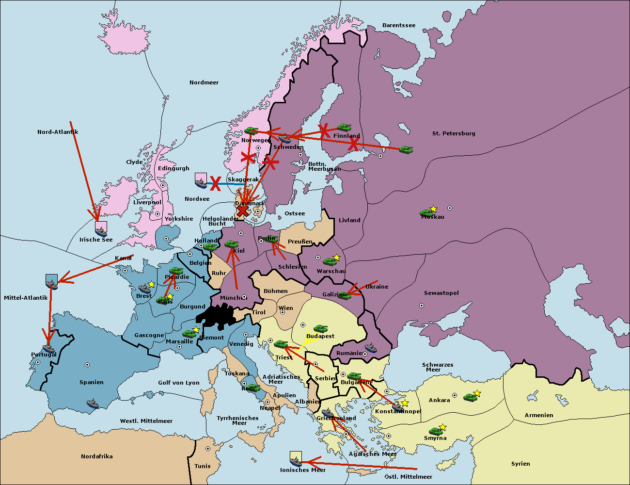 • Die Armee in St. Petersburg move nach Norwegen. (gescheitert)