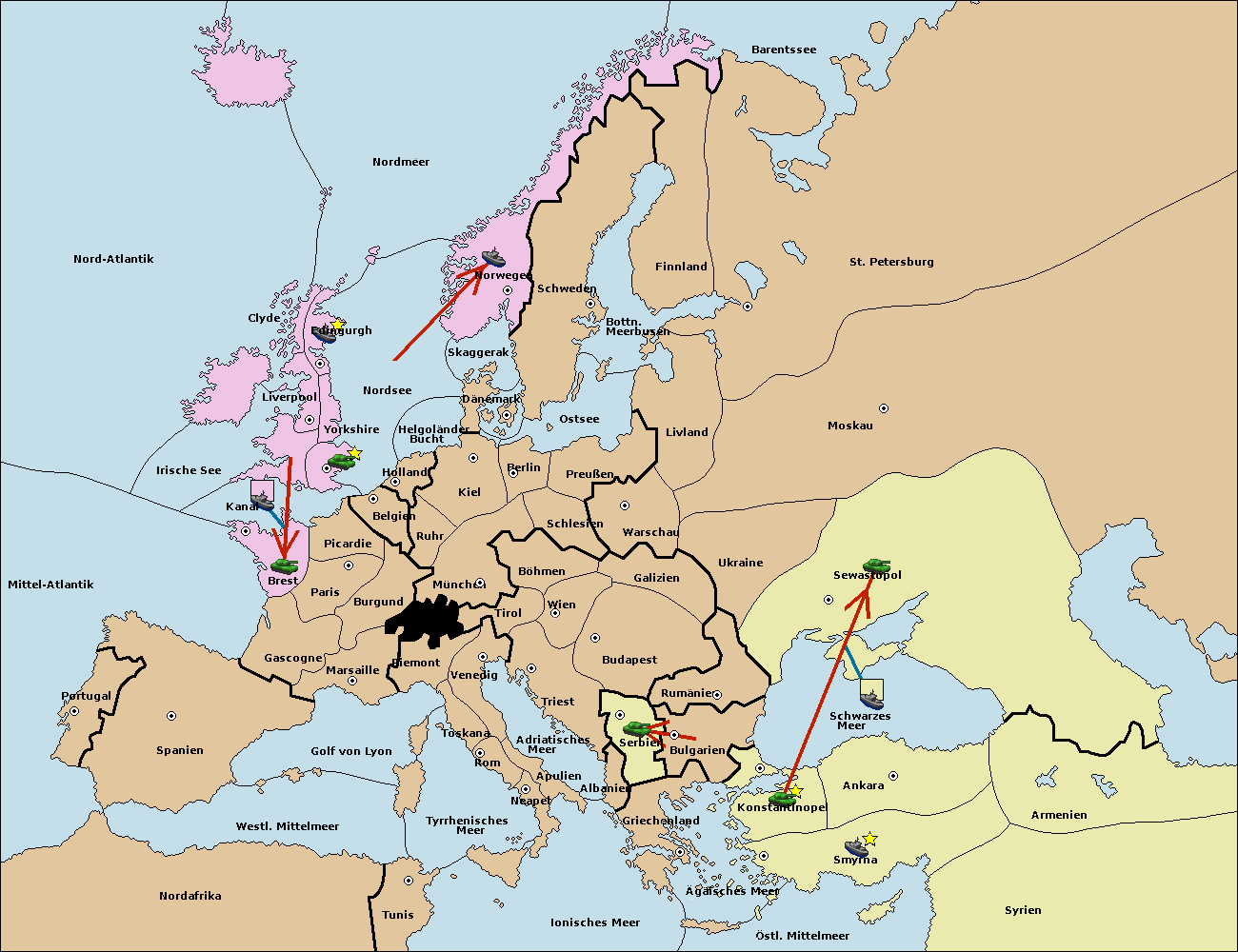 • Die Armee in Konstantinopel move nach Sewastopol via Concoy.