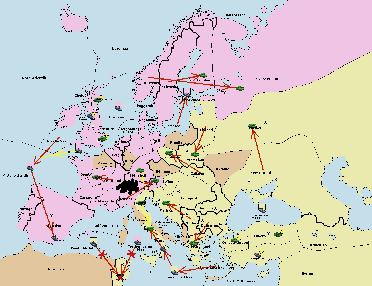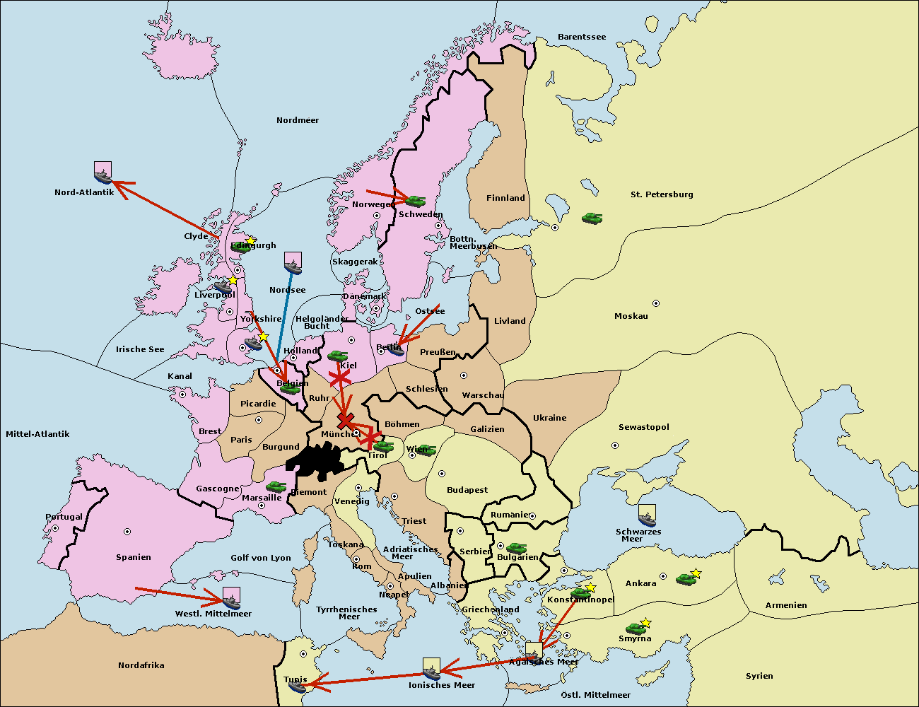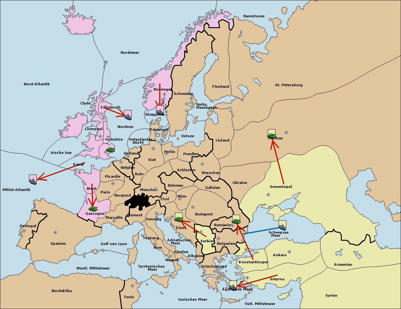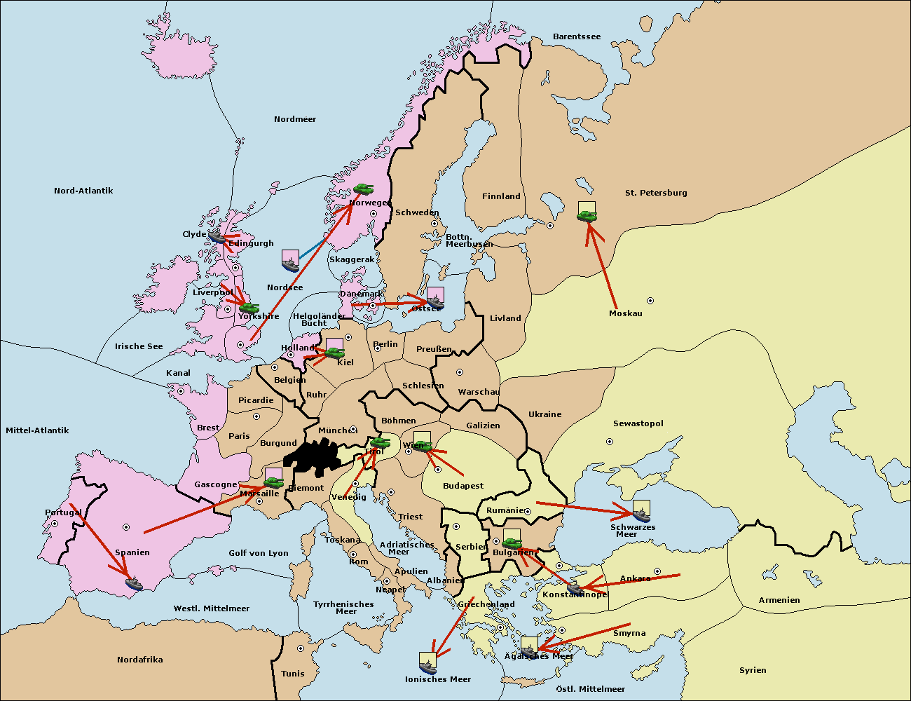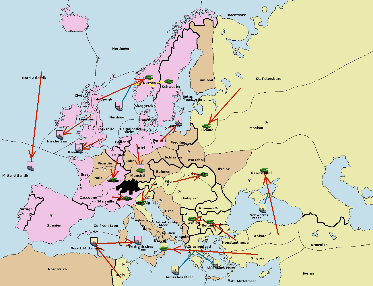 • Die Flotte in Mittel-Atlantik support hold nach westl. Mittelmeer.