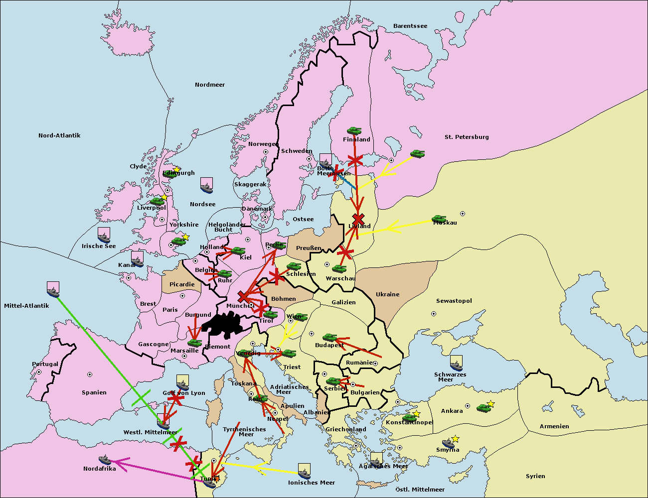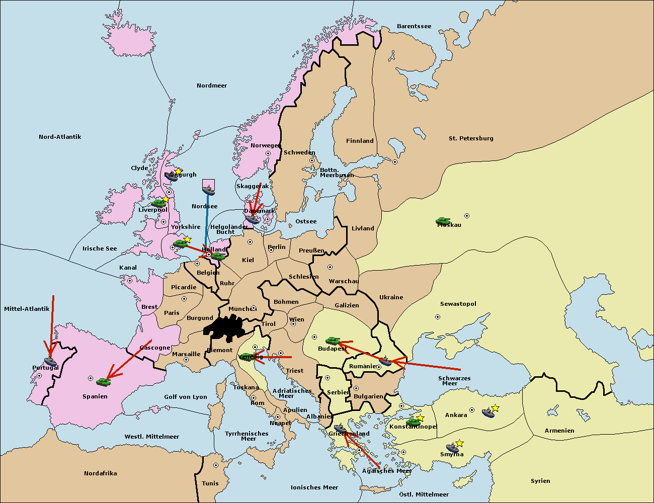 • Die Flotte in Mittel-Atlantik support move nach westl. Mittelmeer von Spanien.