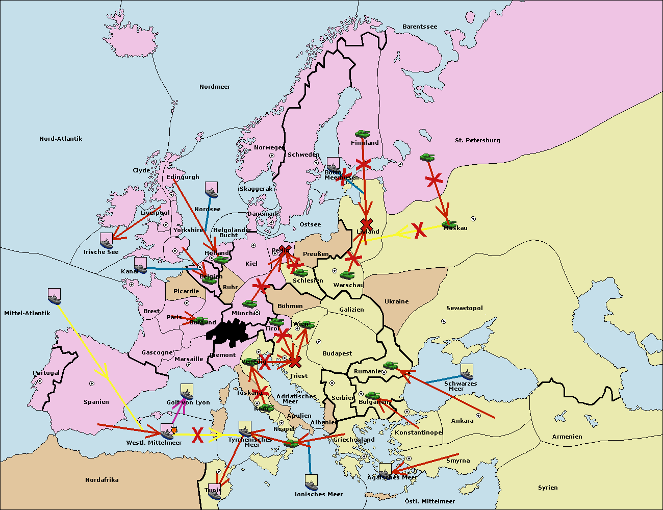 • Die Flotte in Spanien (Südküste) move nach westl. Mittelmeer.
