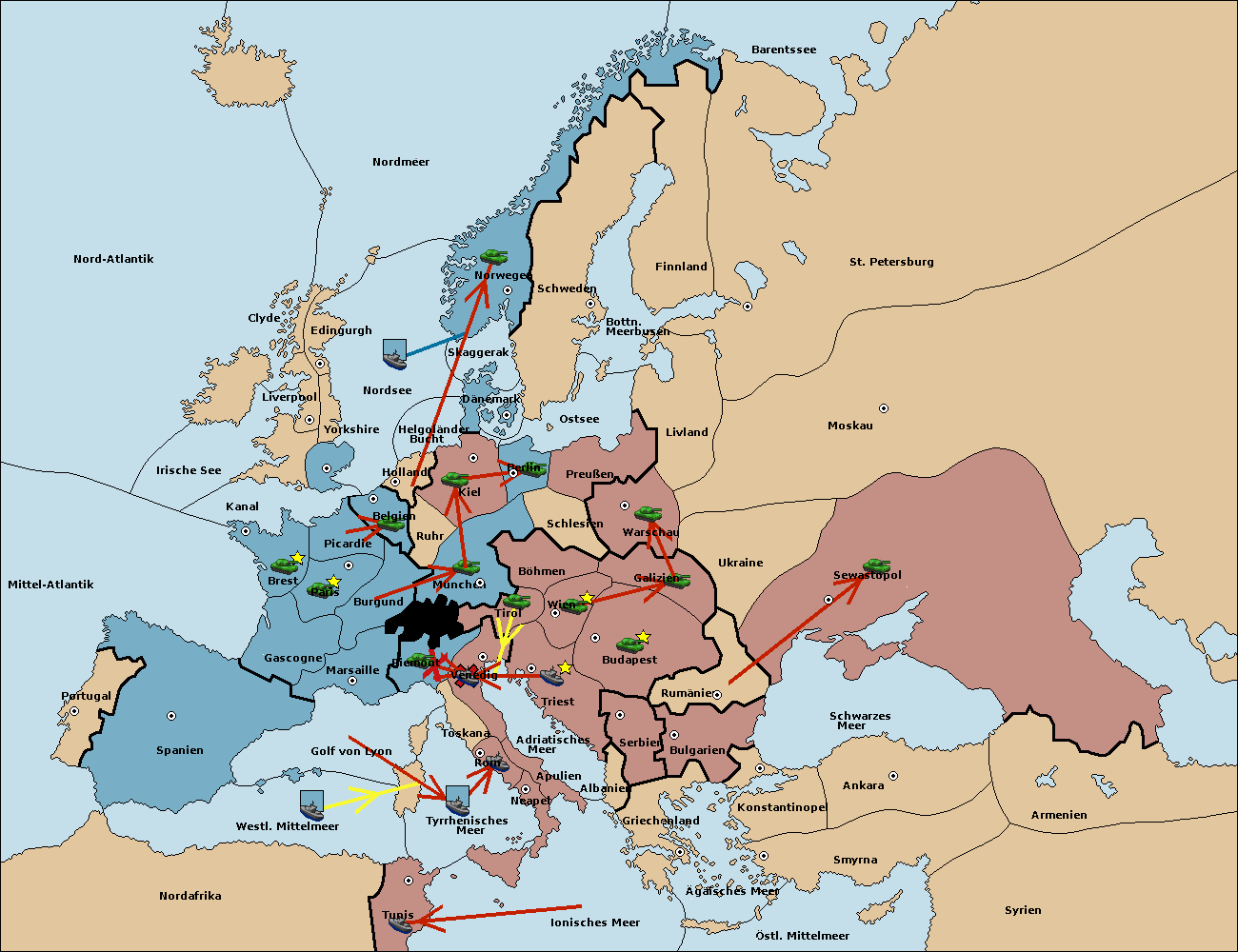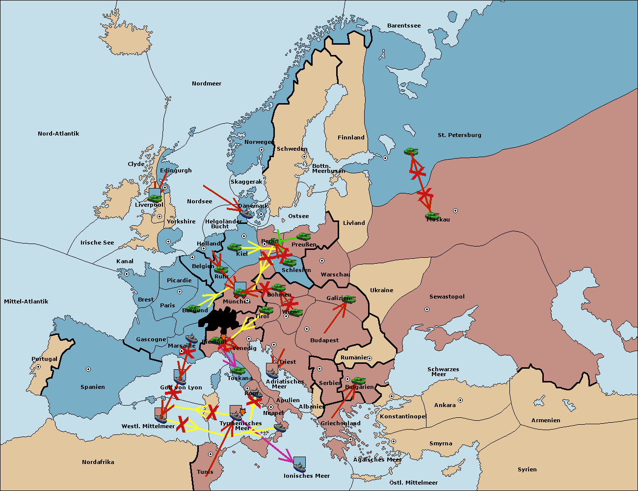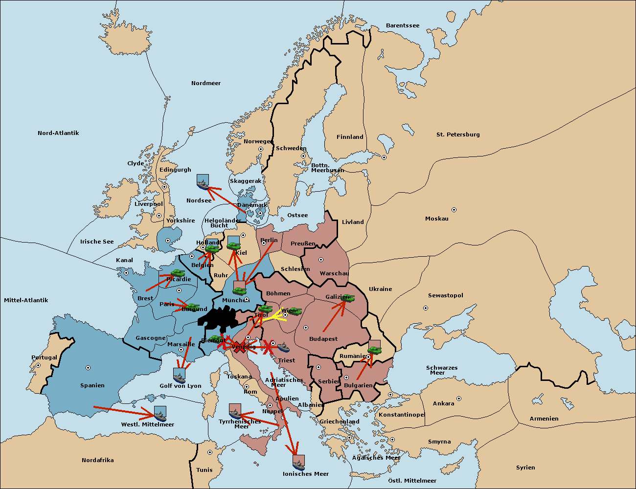 • Die Flotte in Spanien (Südküste) support move nach Marseille von Burgund. (gescheitert)