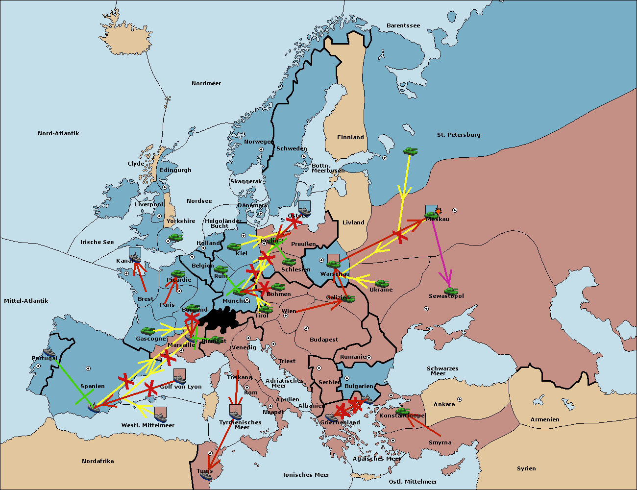 • Die Armee in Warschau support move nach Moskau von Sewastopol.