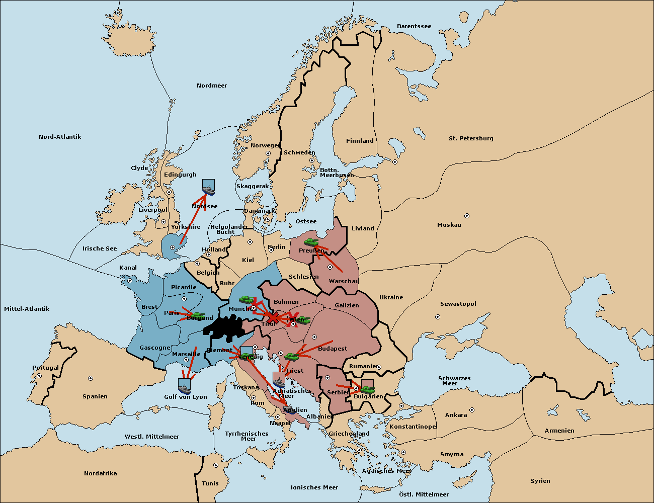 • Die Flotte in Bulgarien (Südküste) move nach Griechenland. (gescheitert)