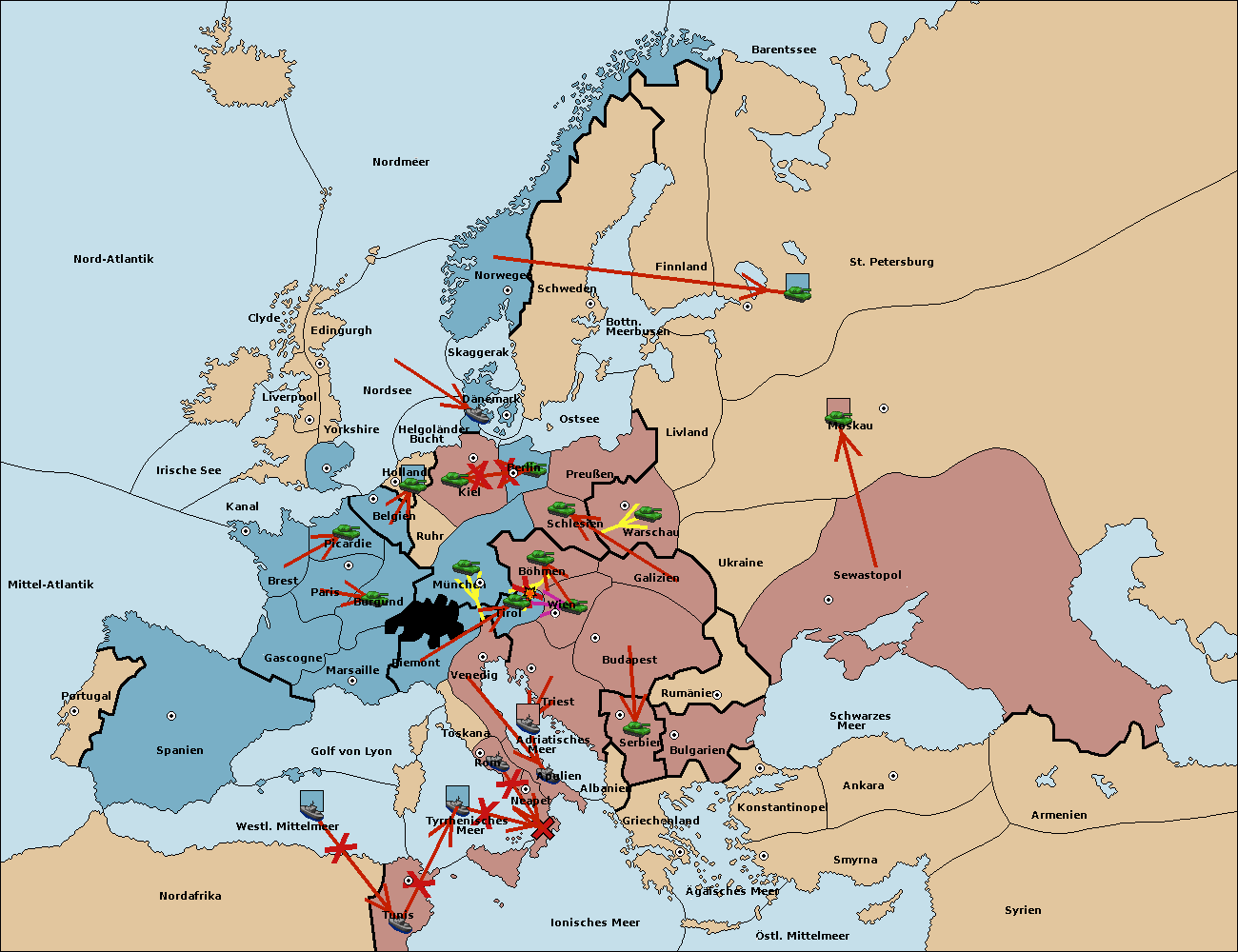• Die Armee in Berlin support move nach München von Böhmen. (gescheitert)