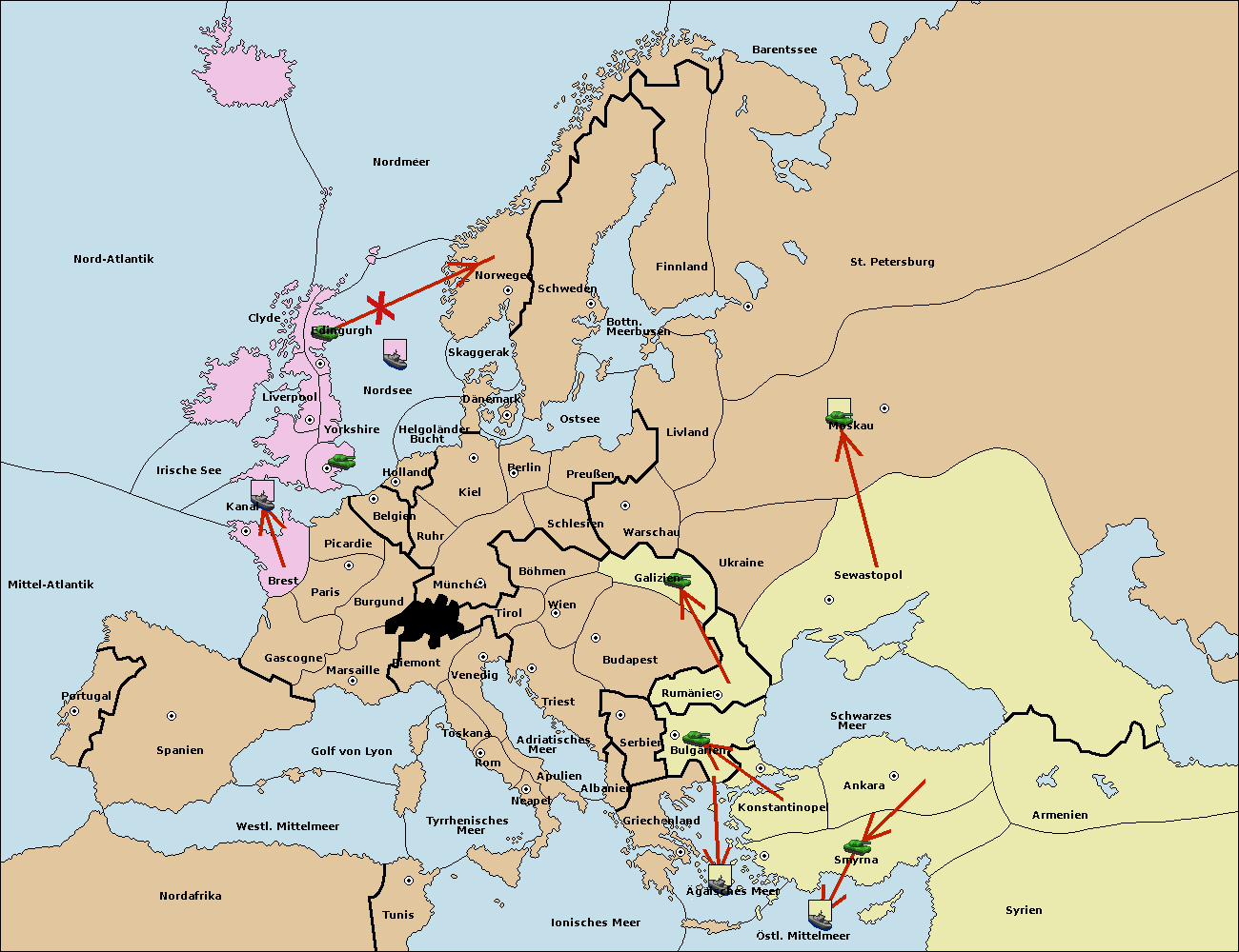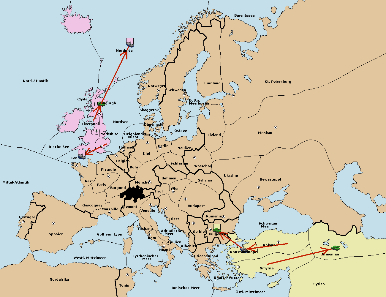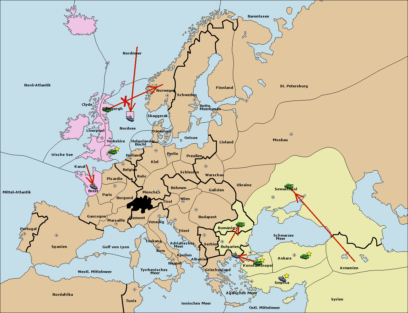 • Die Flotte in Bulgarien (Südküste) move nach Ägäisches Meer.