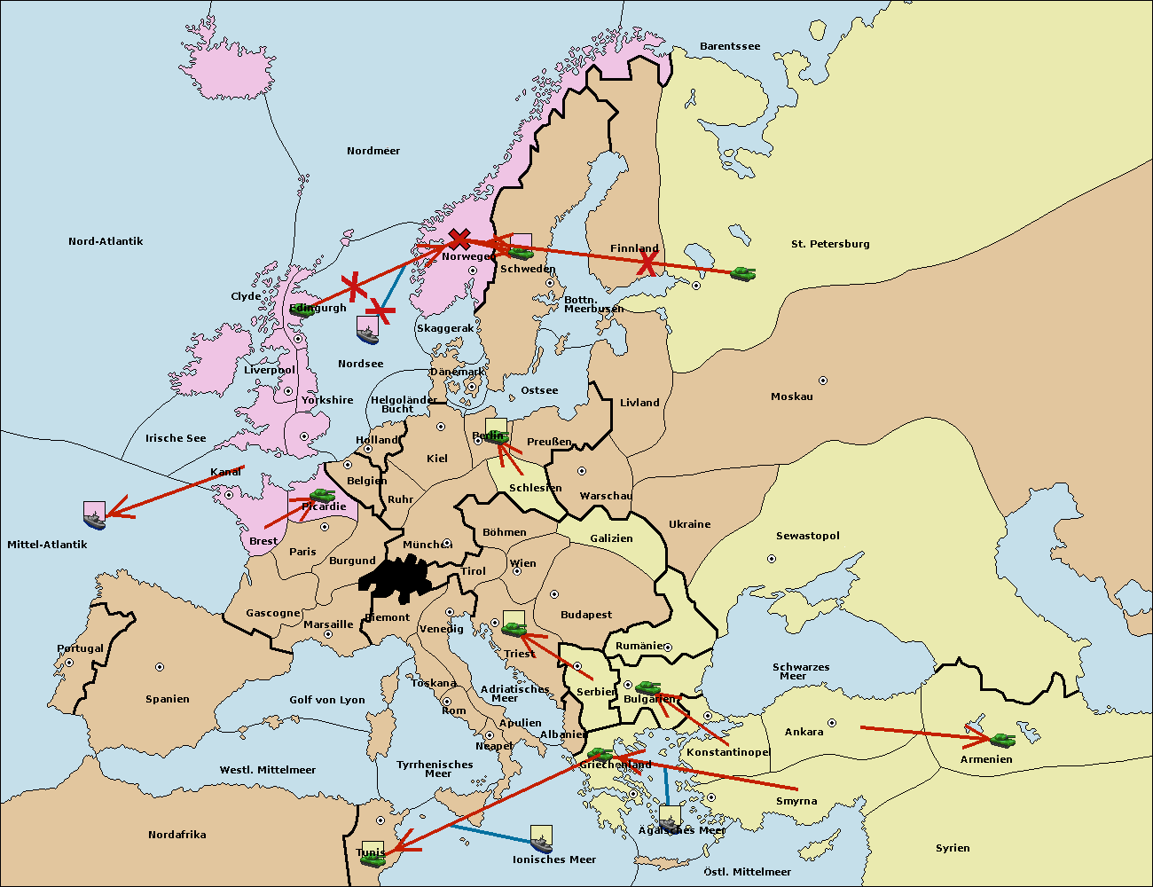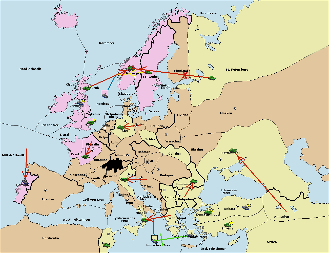 • Die Armee in St. Petersburg move nach Norwegen. (gescheitert)